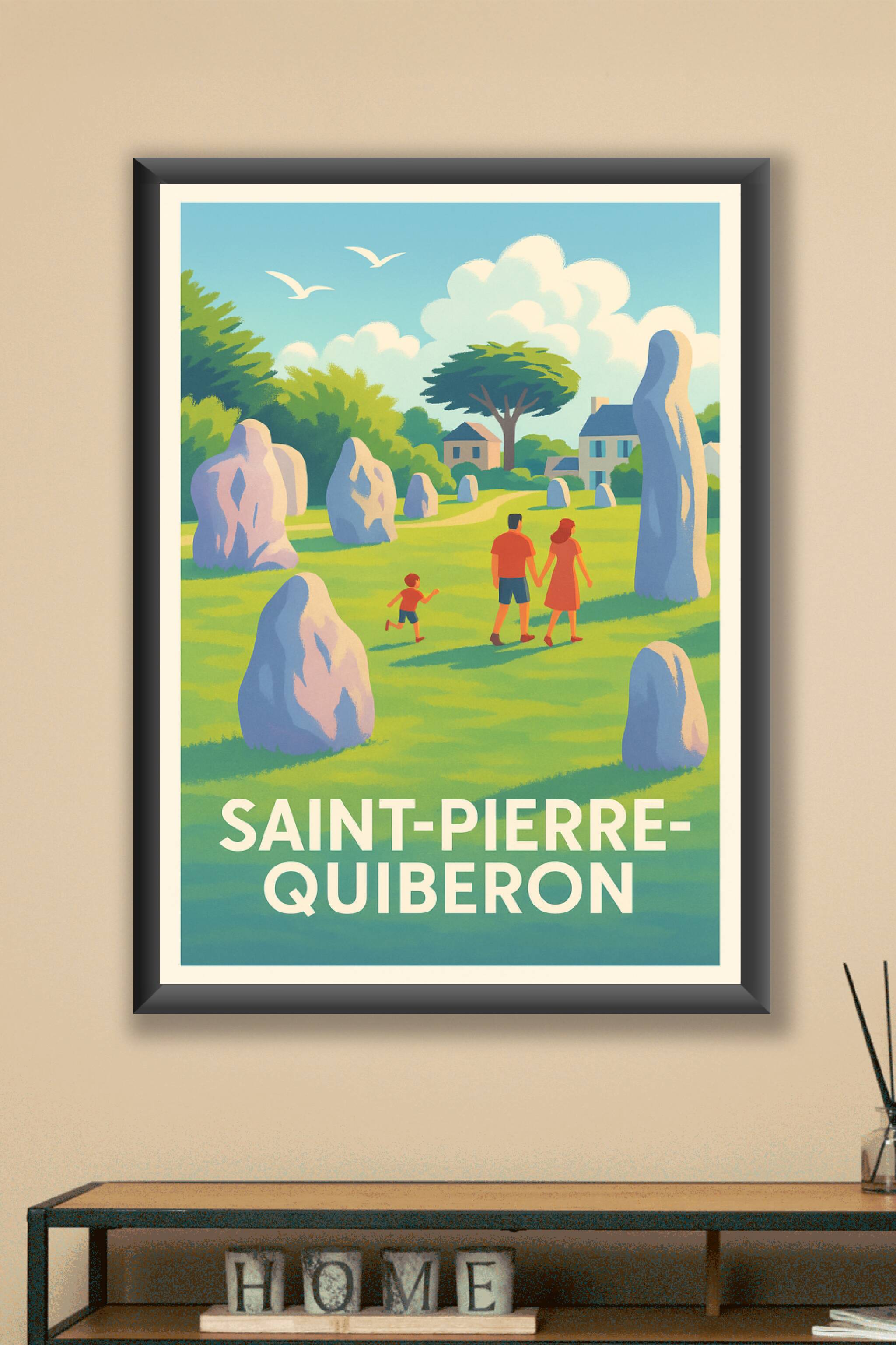 Découvrez la beauté intemporelle de Saint-Pierre-Quiberon avec cette affiche illustrée mettant en scène les célèbres alignements de menhirs sous un...