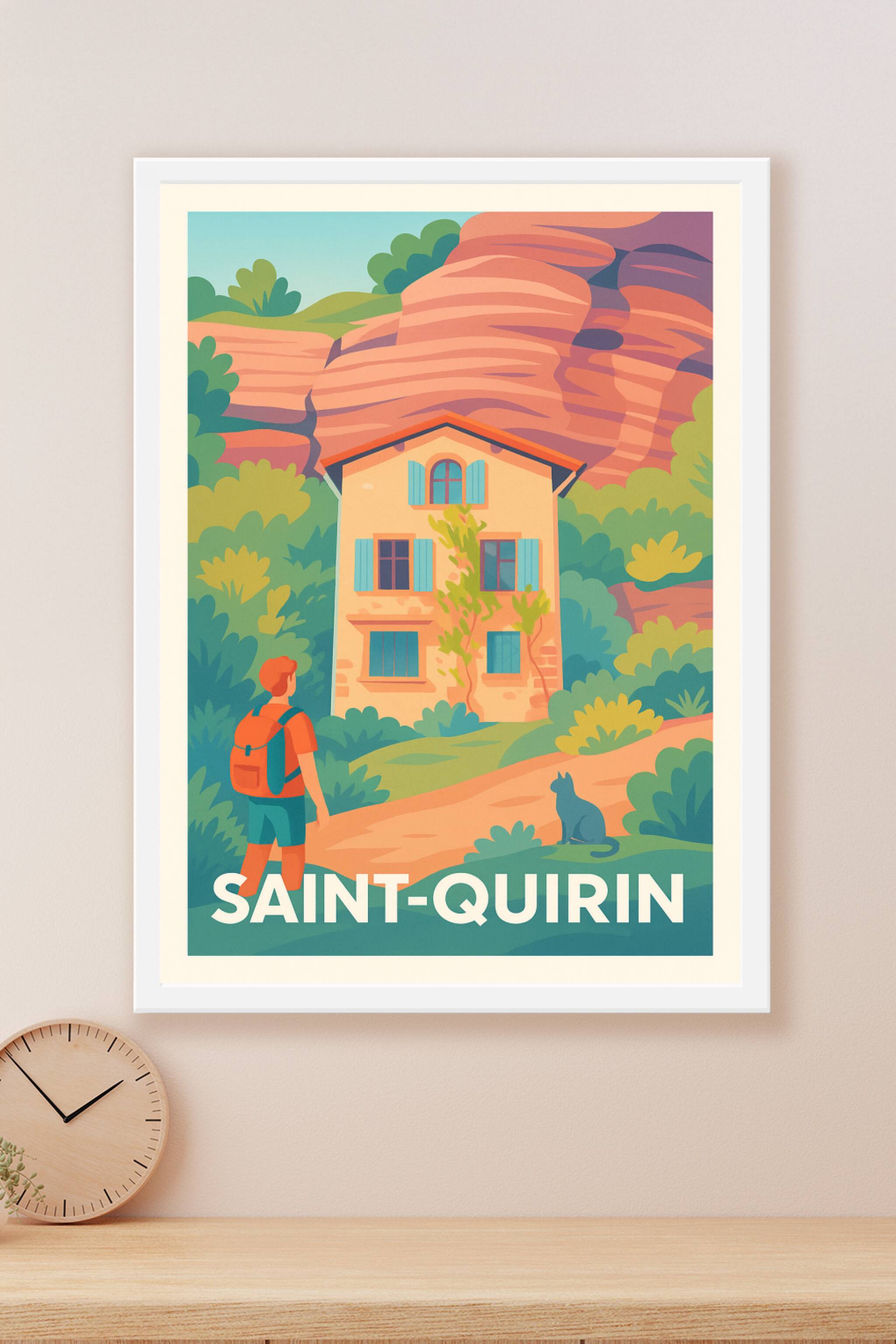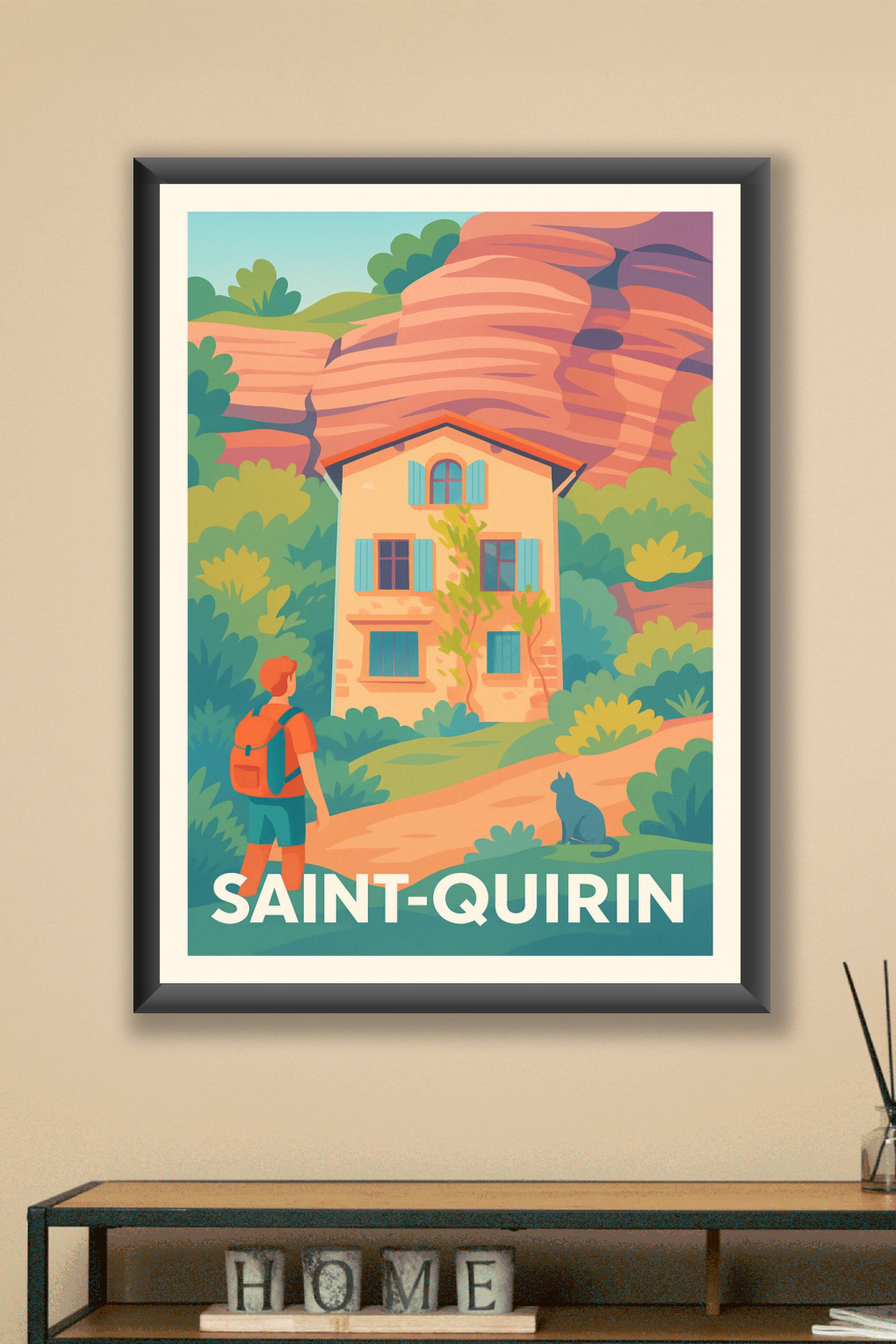 Découvrez la sérénité et le charme authentique de Saint-Quirin avec cette affiche illustrée au style vintage et coloré. Le poster met en scène une maison typique nichée dans un paysage naturel apaisant, parfait pour les amateurs de randonnées et d'évasion. Imprimée en tirage "Fine Art" sur papier 305g coton, cette affiche offre une qualité d'impression exceptionnelle et des couleurs riches qui sublimeront votre décoration intérieure. Disponible en formats A1 à A4, avec ou sans cadre, ce poster saura embellir vos murs tout en apportant une touche chaleureuse et naturelle à votre espace. Profitez d'un produit premium 100% fabriqué en France pour revivre l'atmosphère paisible de Saint-Quirin chez vous ou offrir un souvenir élégant aux passionnés de paysages pittoresques.