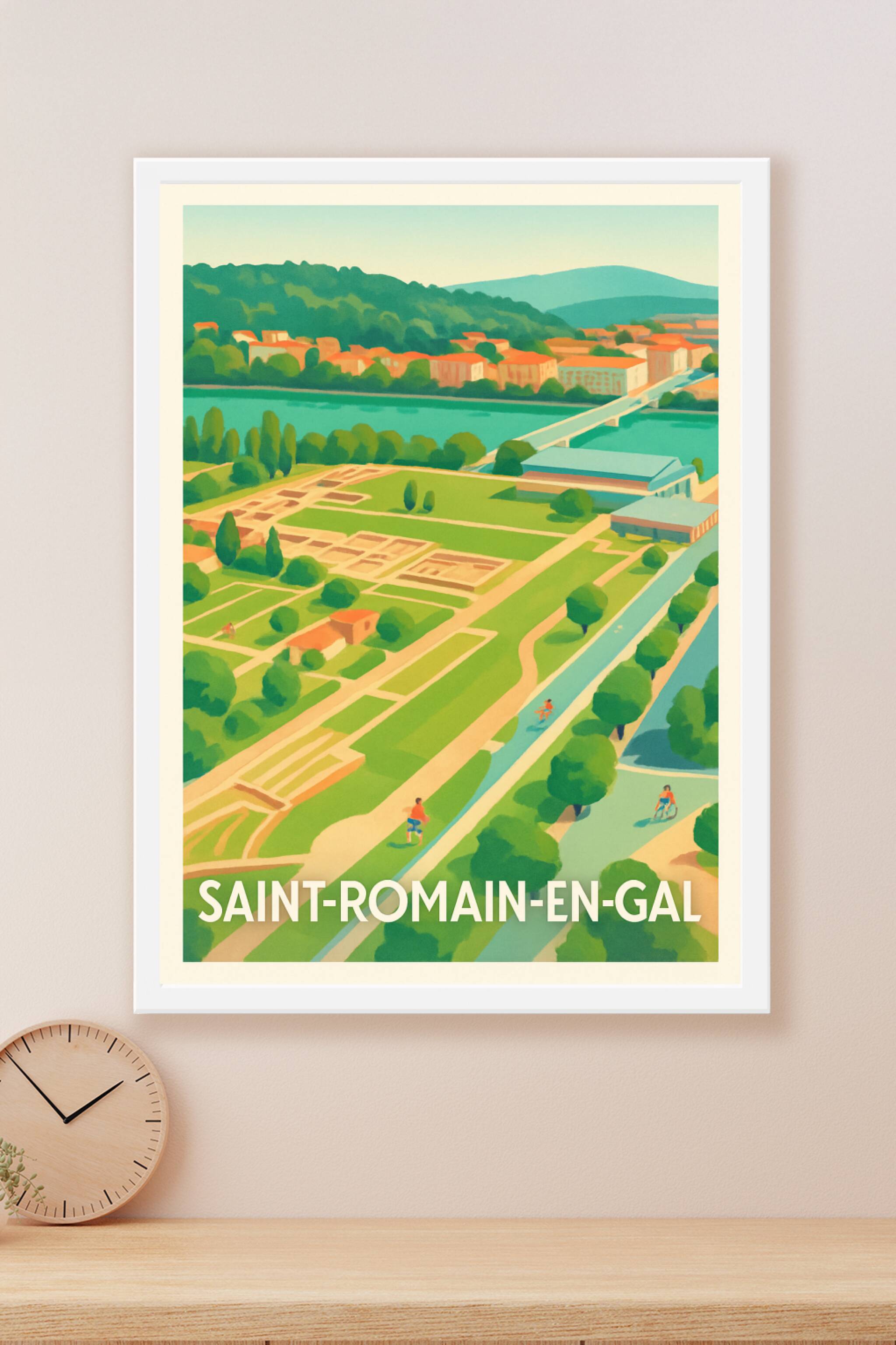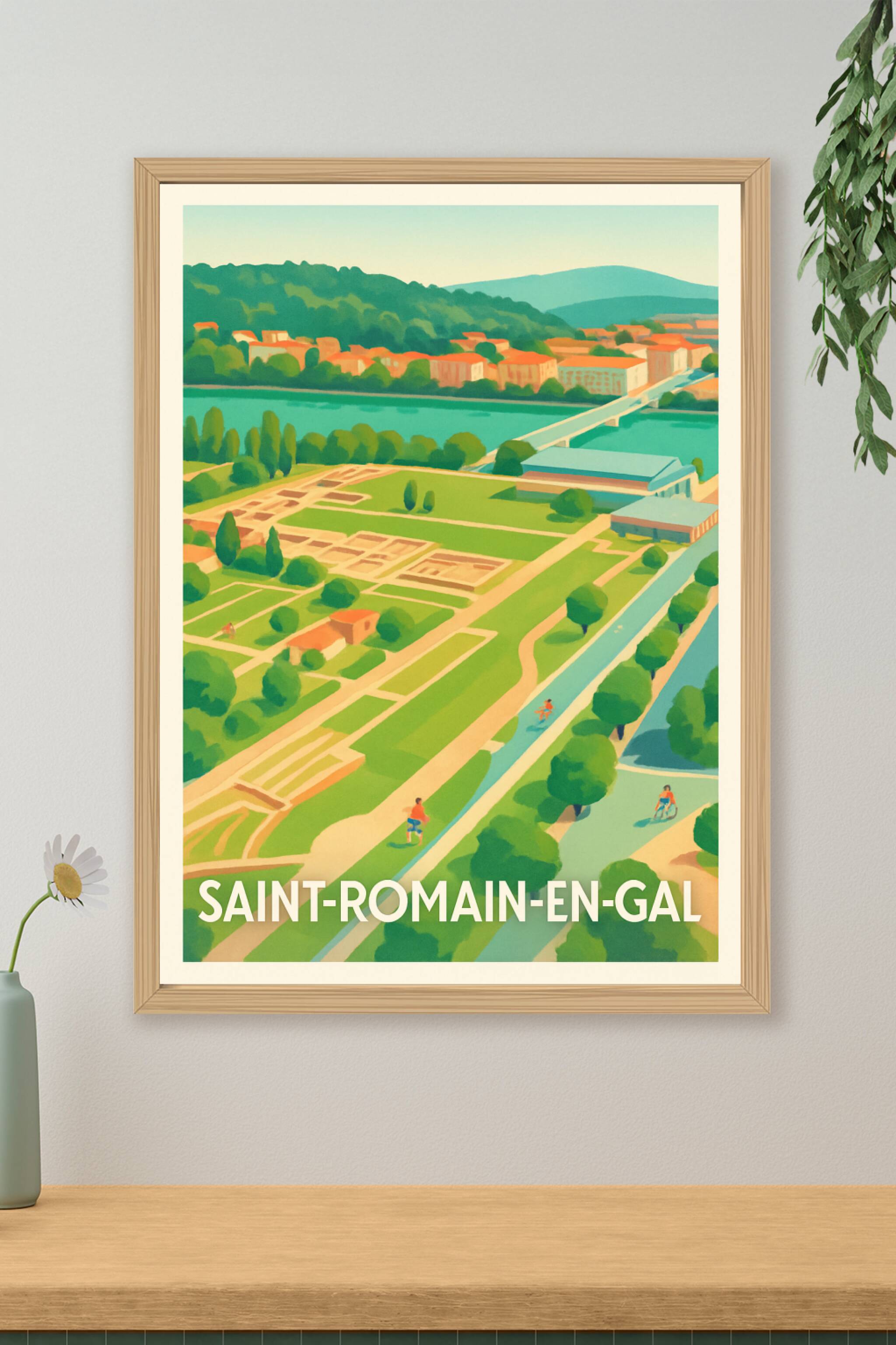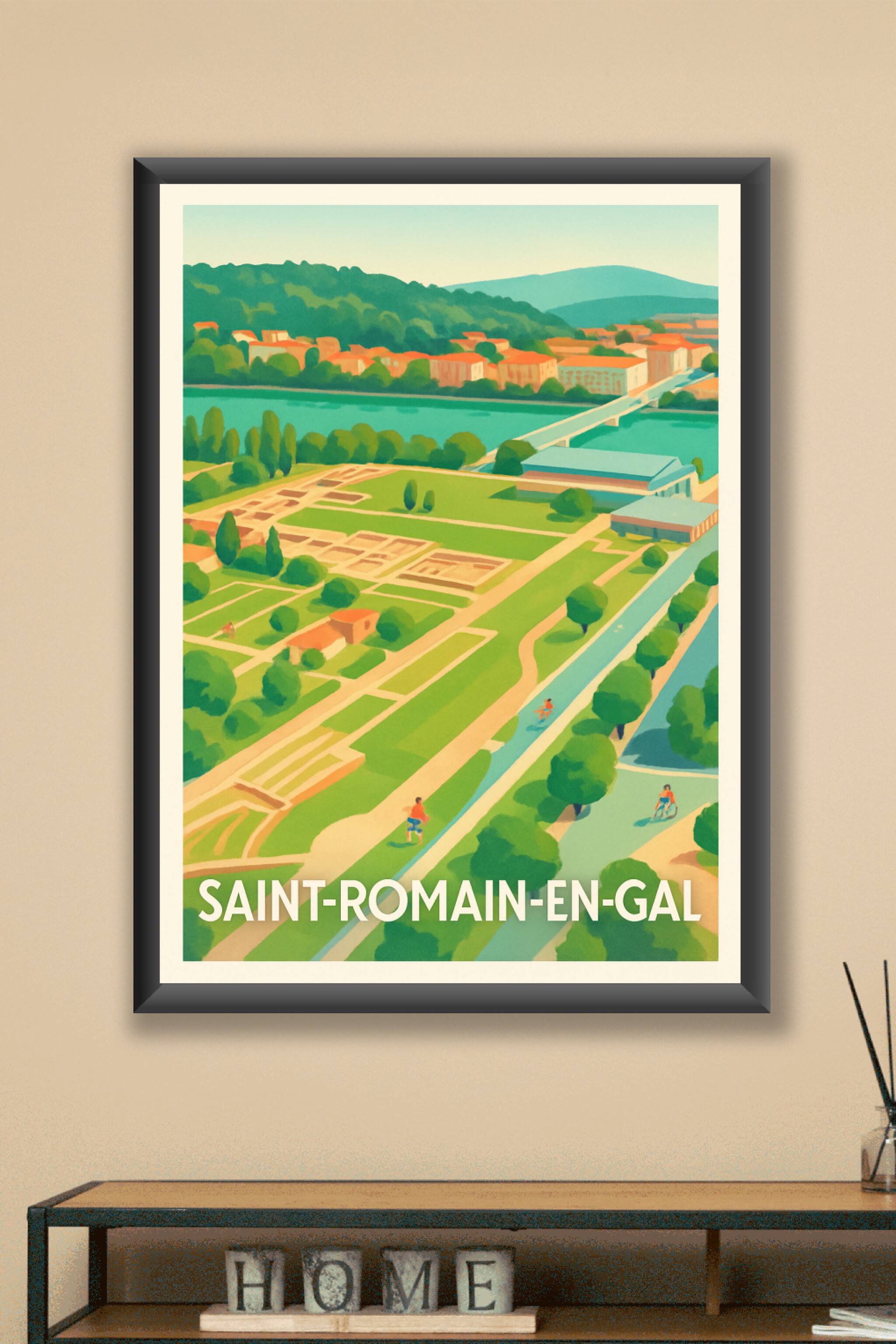 Découvrez la beauté historique de Saint-Romain-en-Gal avec cette affiche illustrée dans un style artistique chaleureux et coloré. Ce poster met en ...