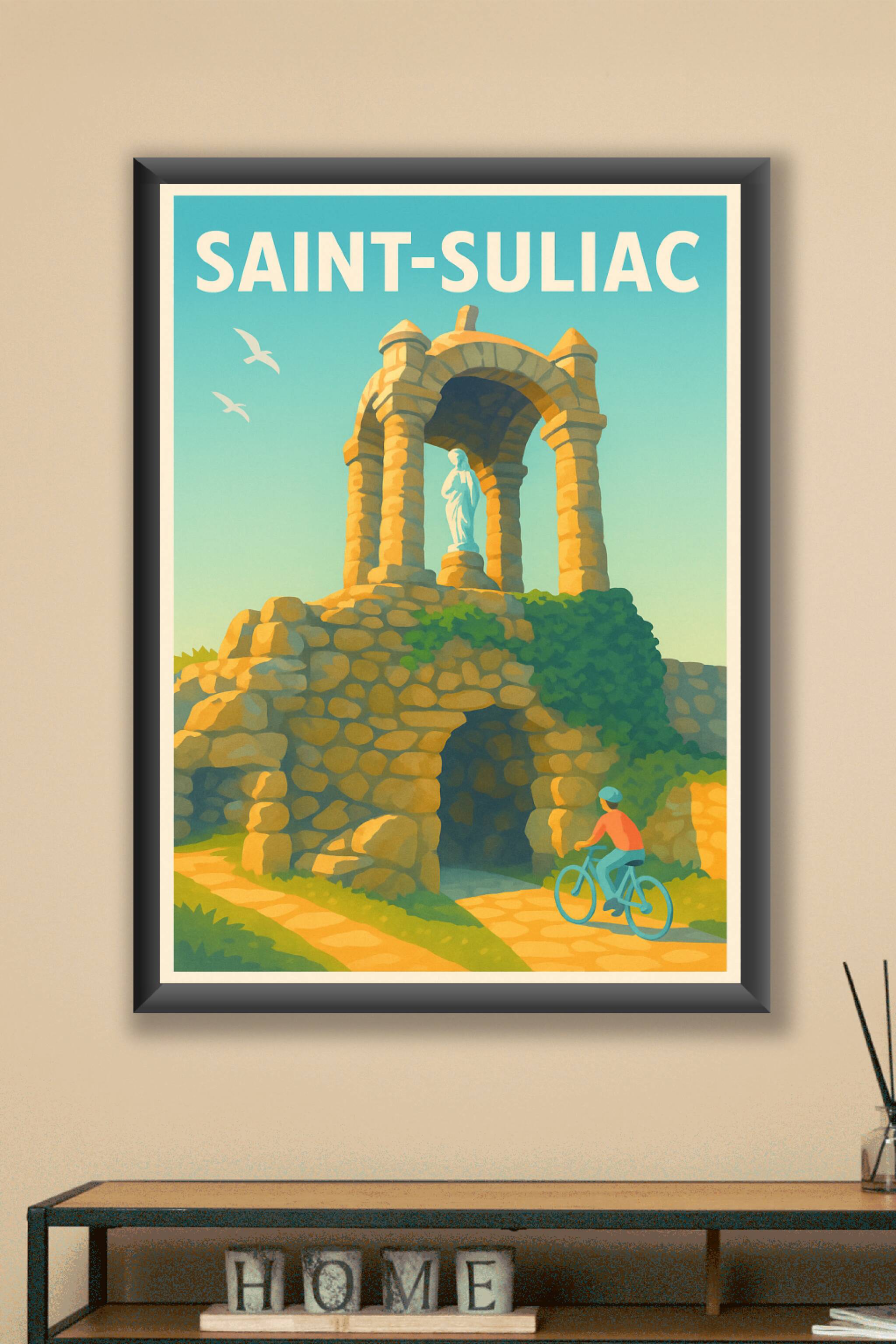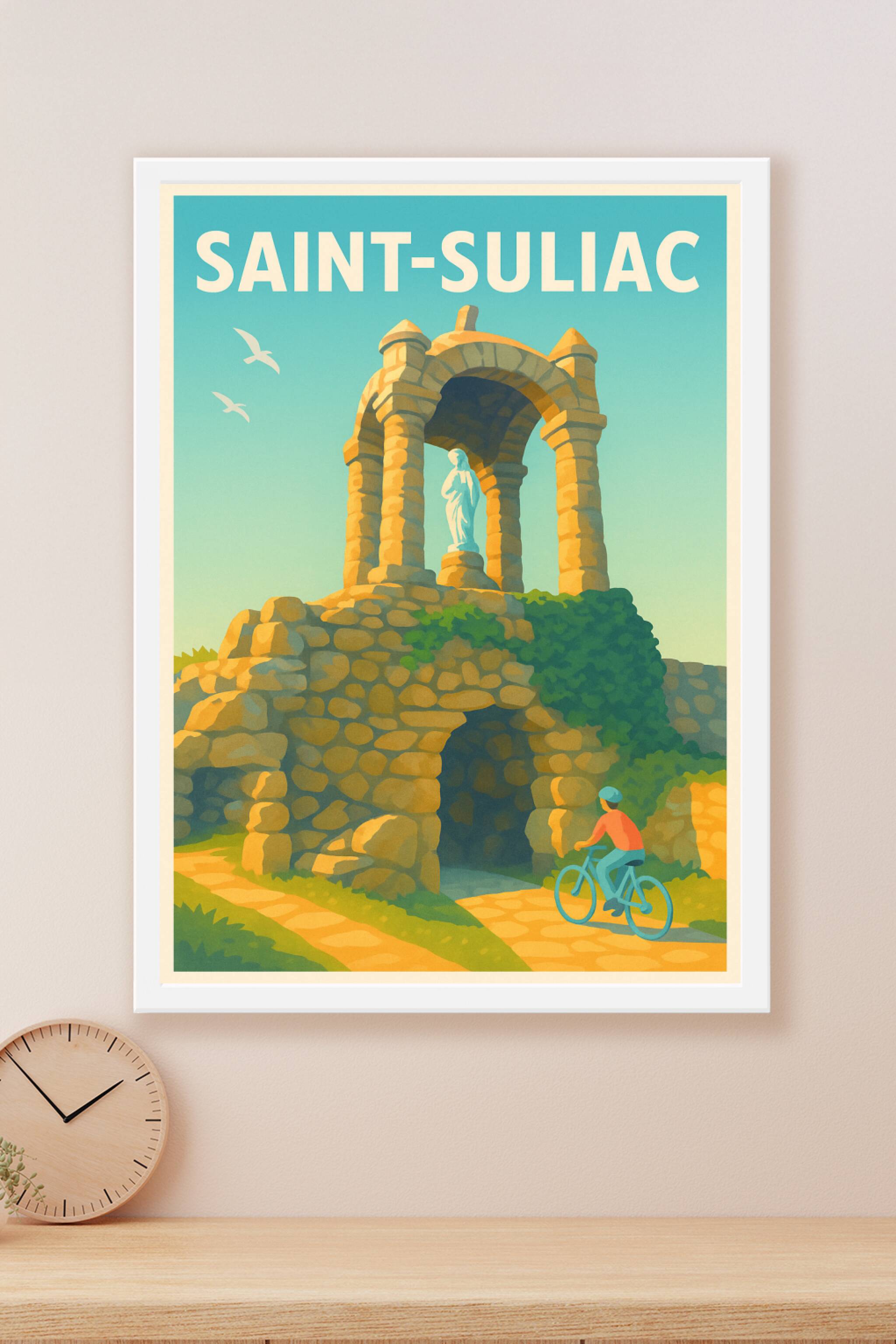 Découvrez la beauté intemporelle de Saint-Suliac avec cette affiche au style vintage qui met en lumière son patrimoine unique, symbolisé par ce mon...