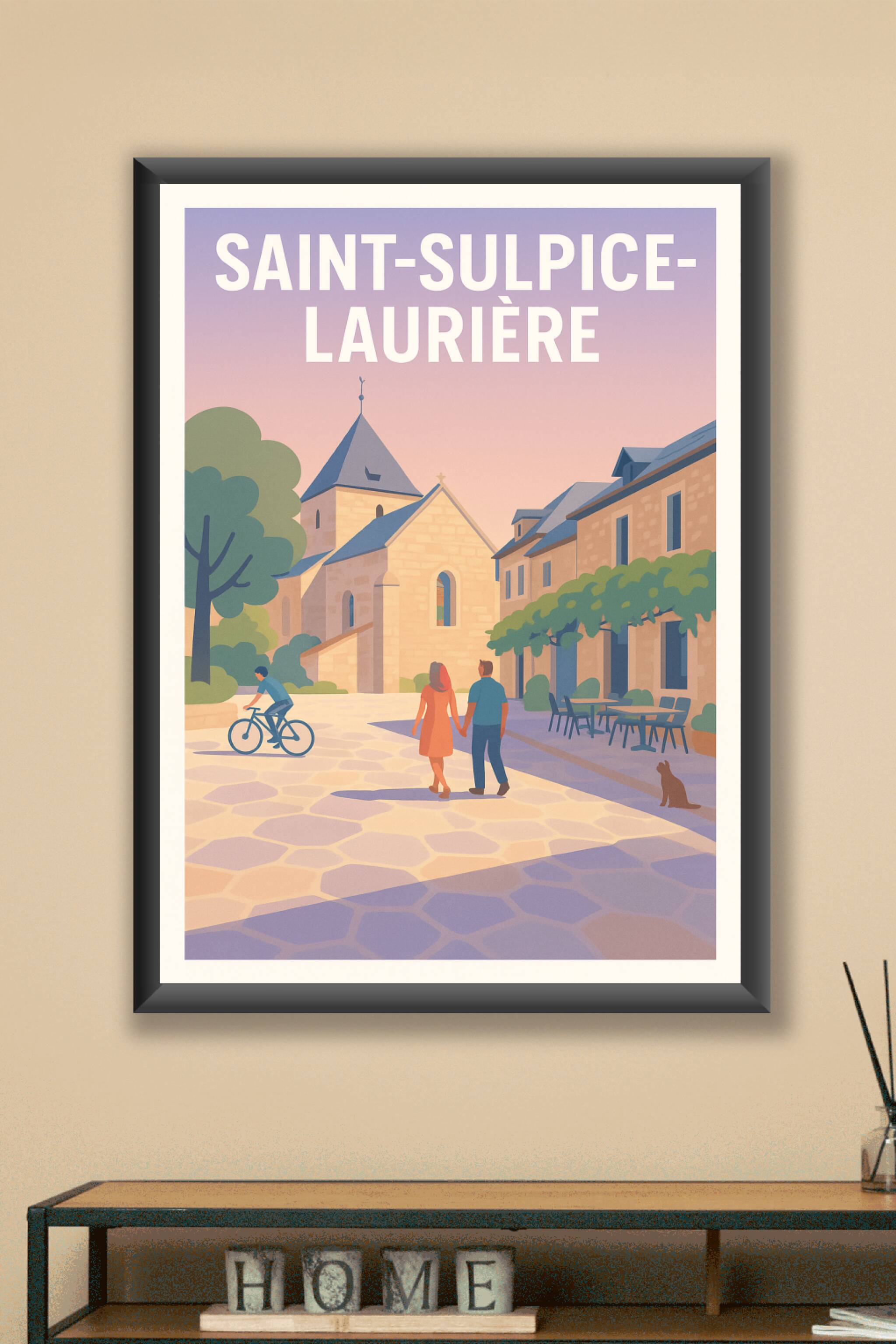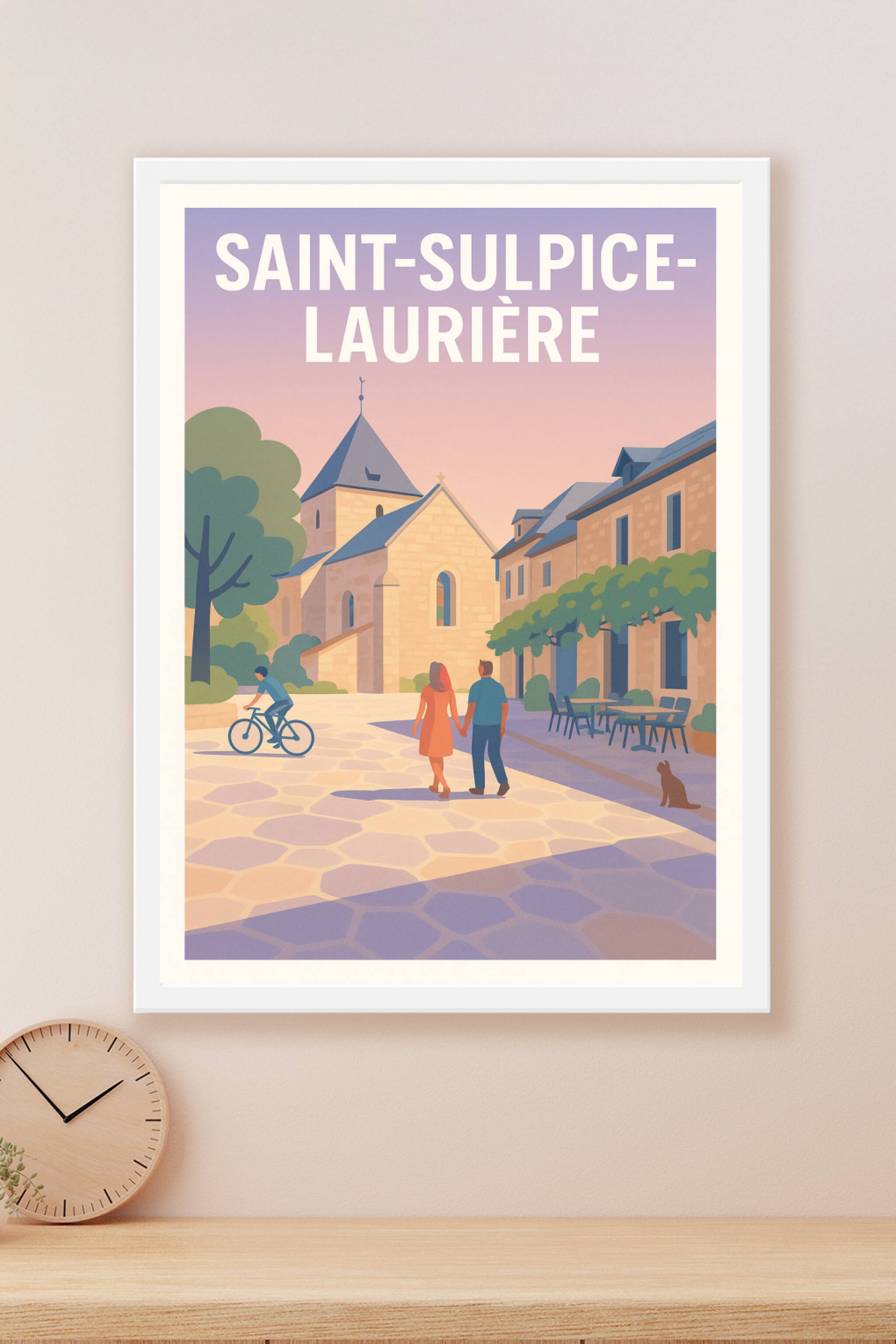 Découvrez la sérénité et le charme intemporel de Saint-Sulpice-Laurière avec cette affiche illustrée au style doux et apaisant. Ce poster met en sc...