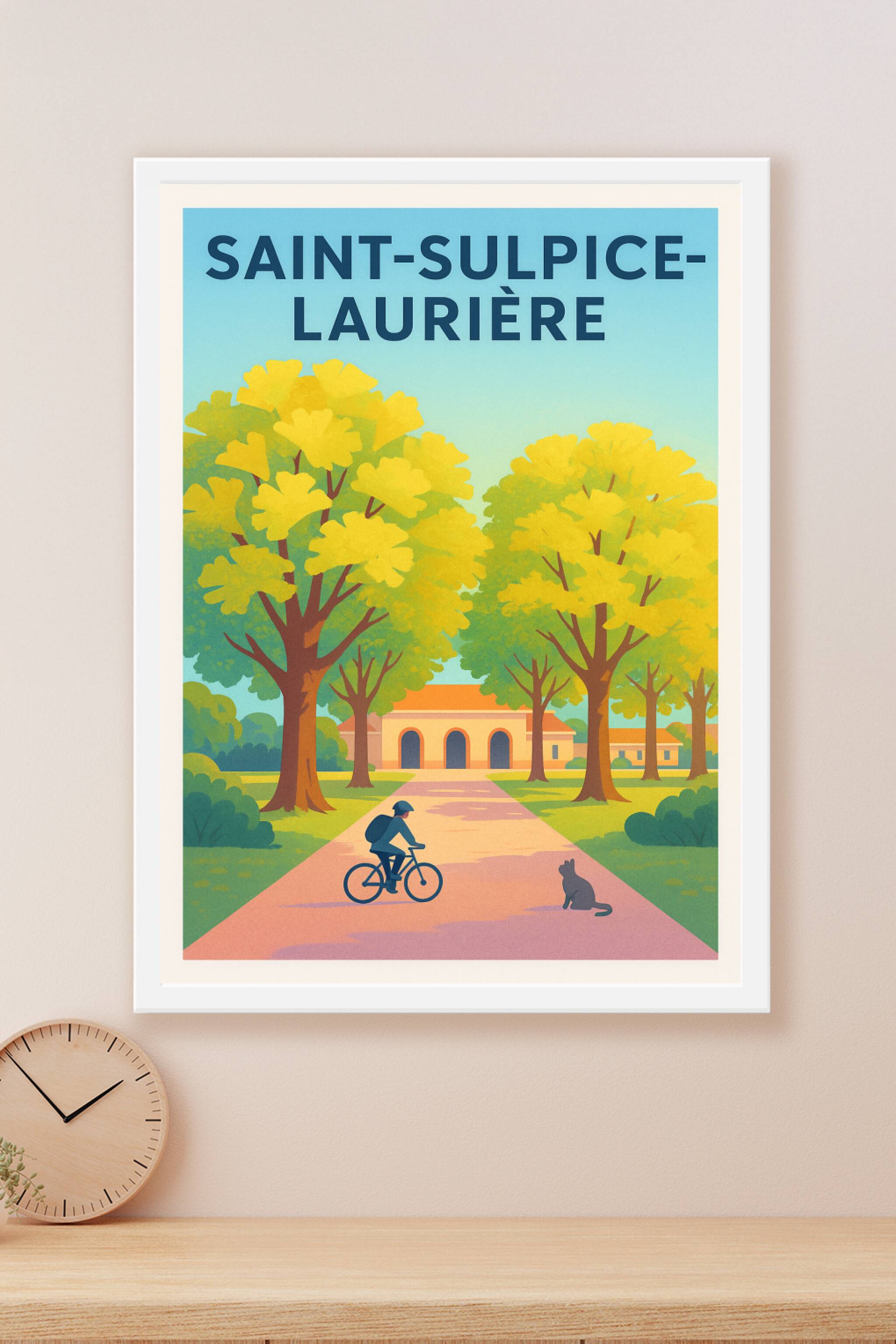 Découvrez la douceur de vivre à Saint-Sulpice-Laurière avec cette affiche illustrée mêlant nature et simplicité. Le poster met en scène une allée b...