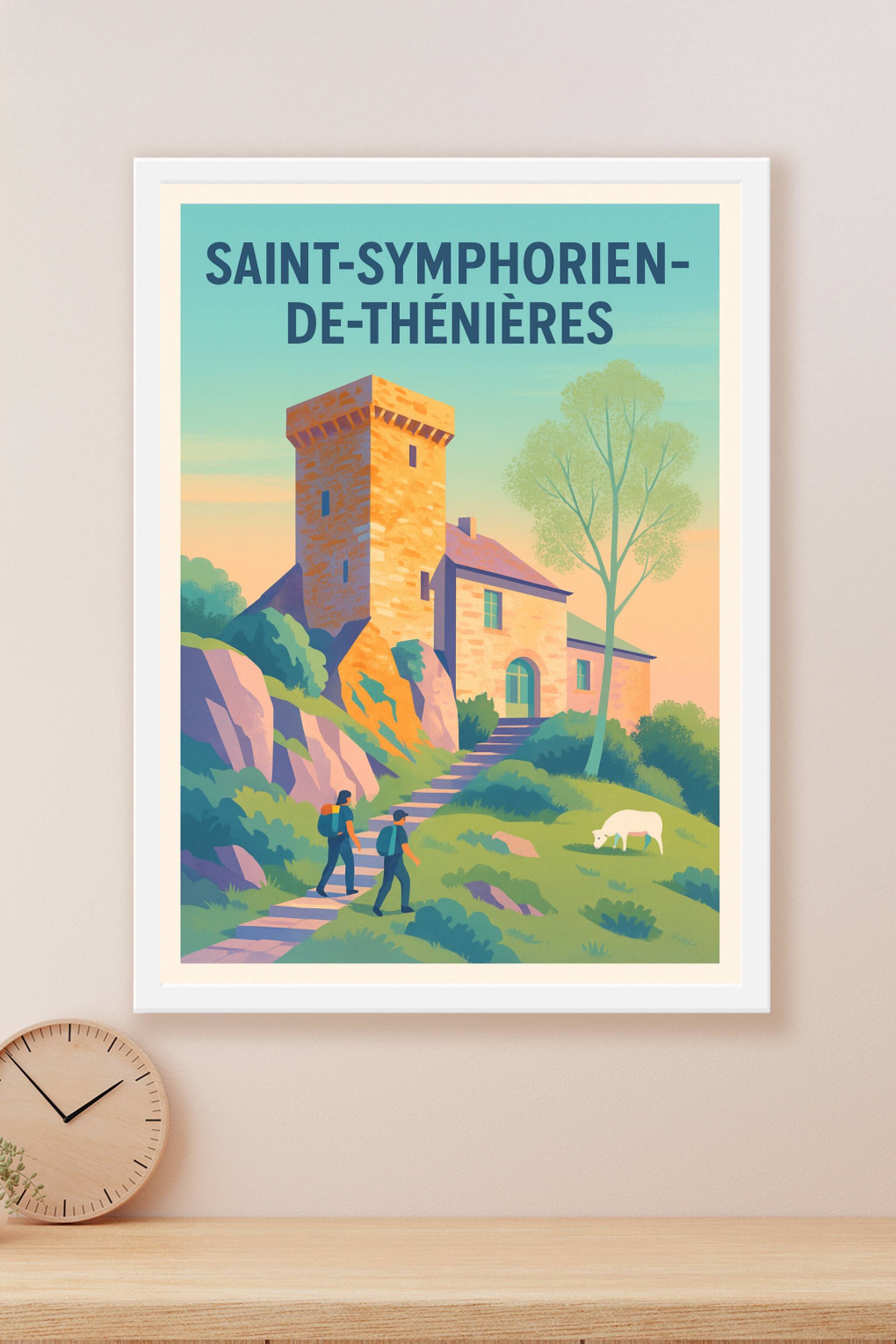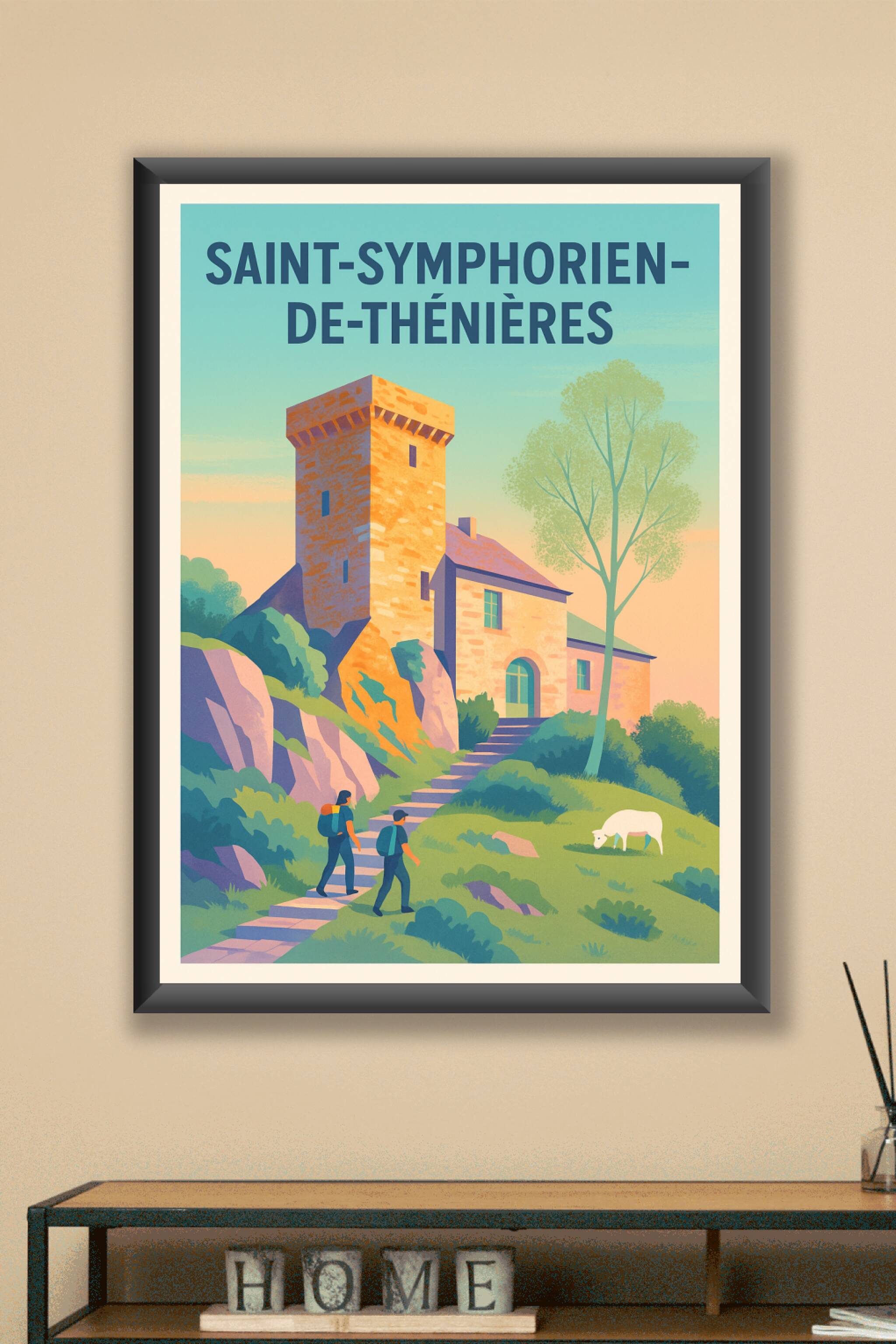 Offrez-vous une immersion dans la quiétude et la beauté naturelle de Saint-Symphorien-de-Thénières avec cette affiche illustrée mettant en lumière ...