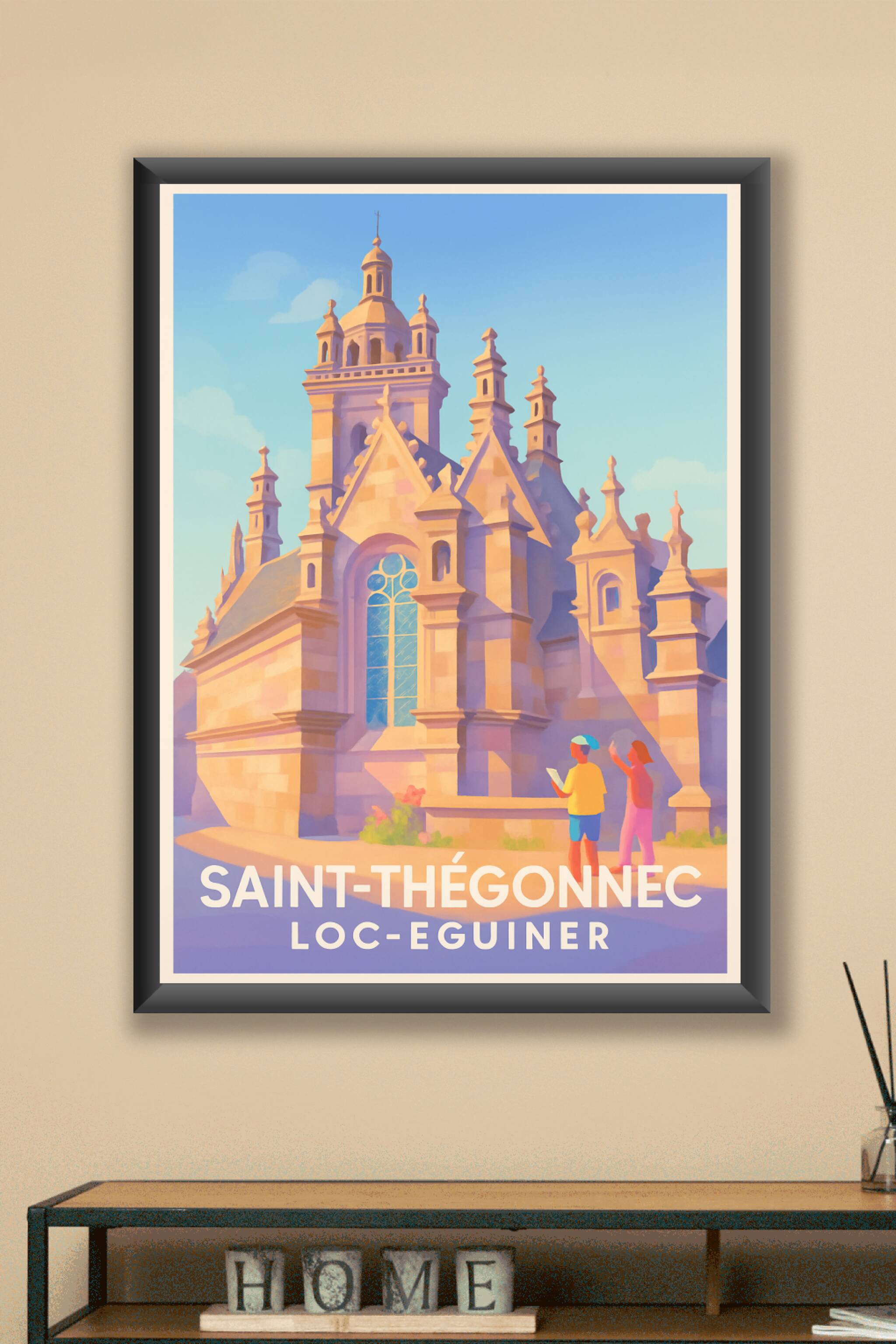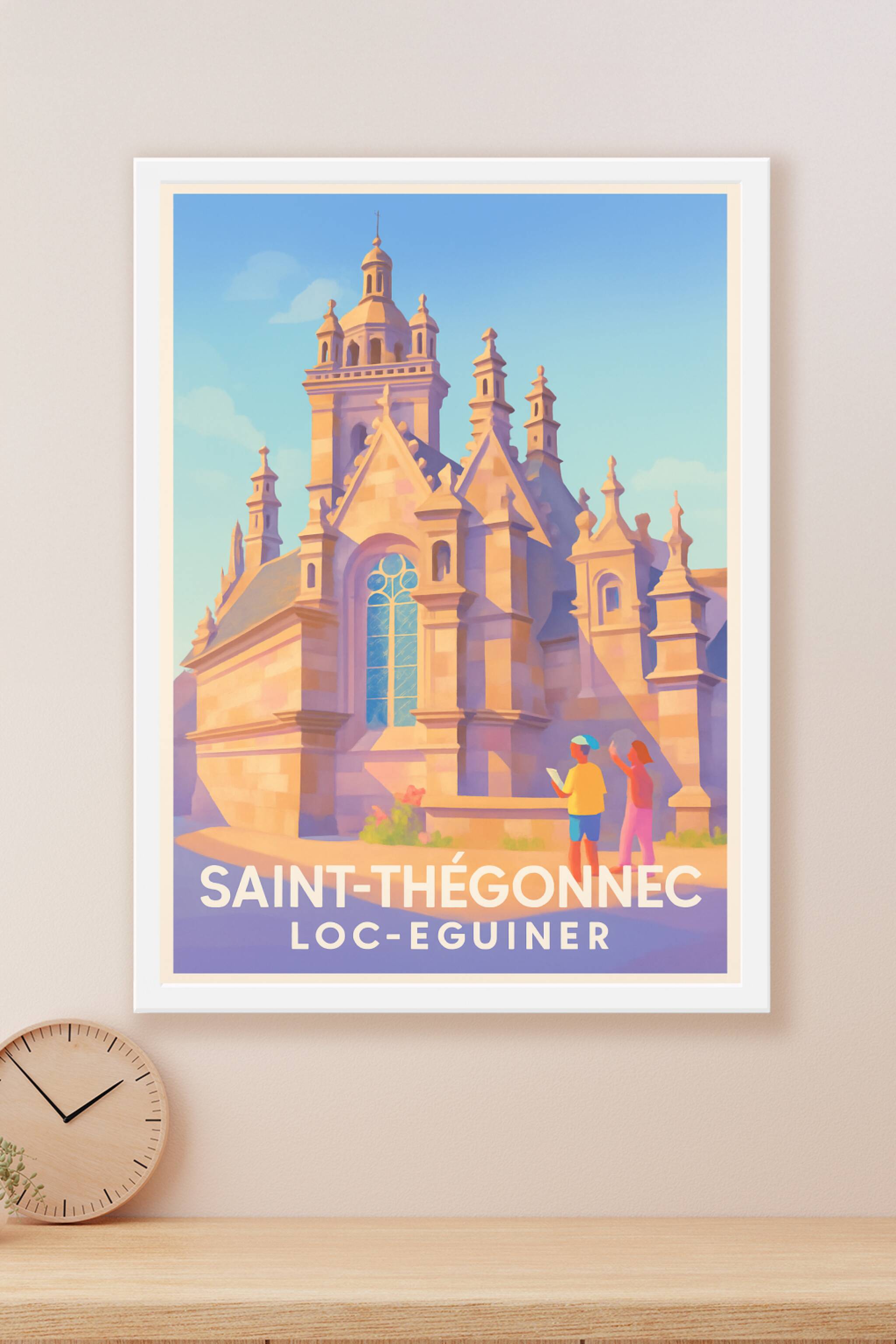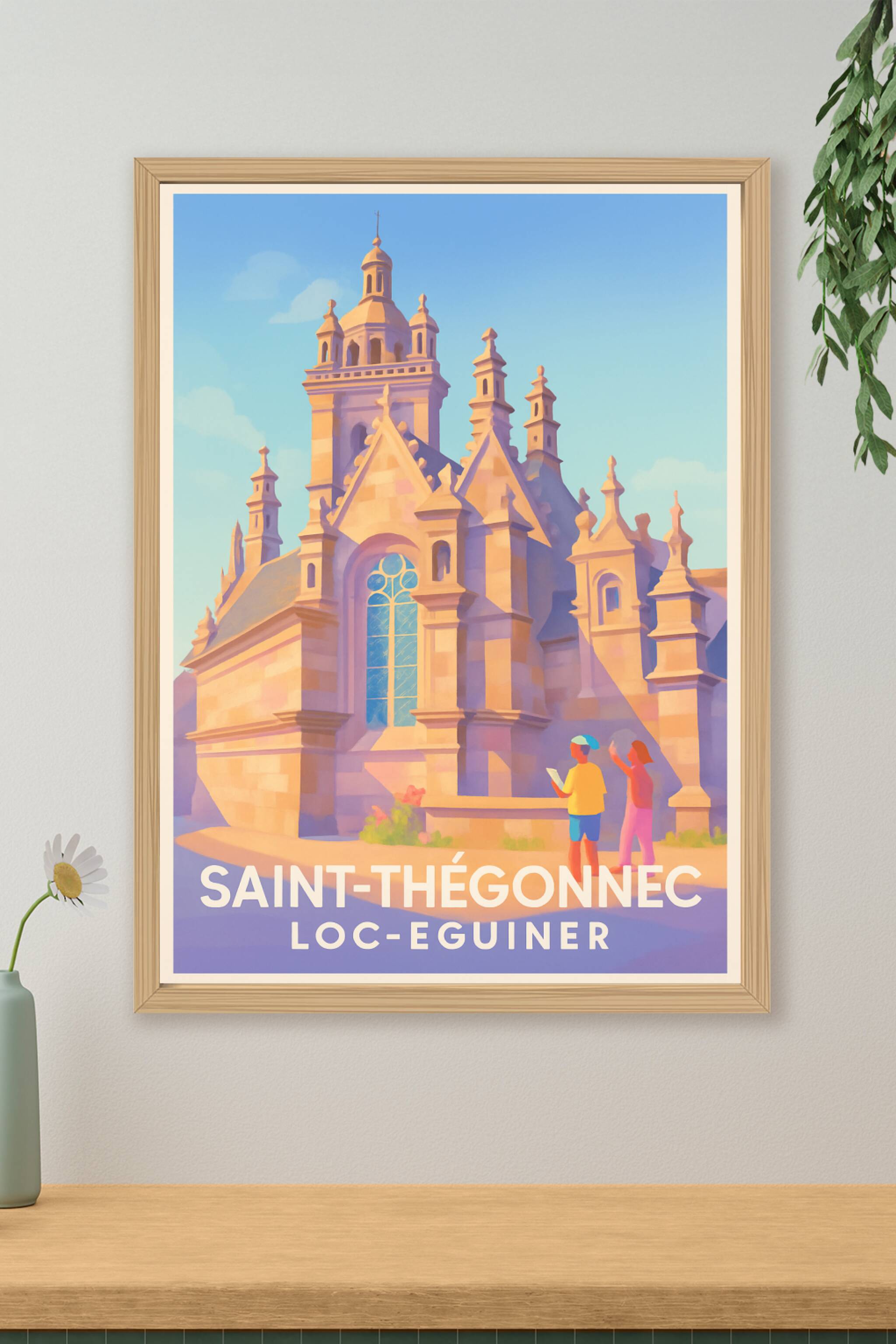 Découvrez le charme remarquable de Saint-Thégonnec avec ce poster illustré mettant en scène l'architecture unique et lumineuse de sa fameuse église...