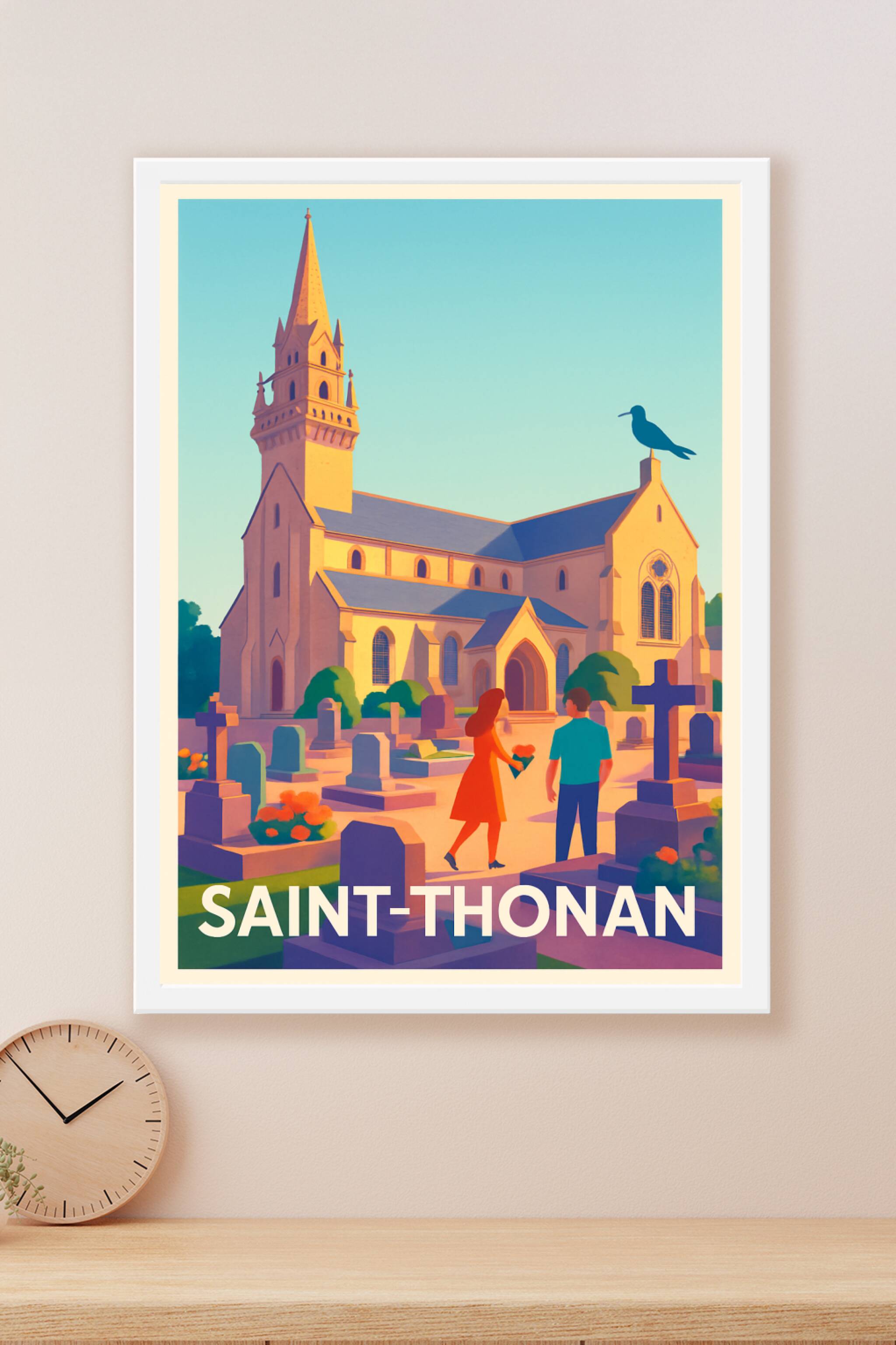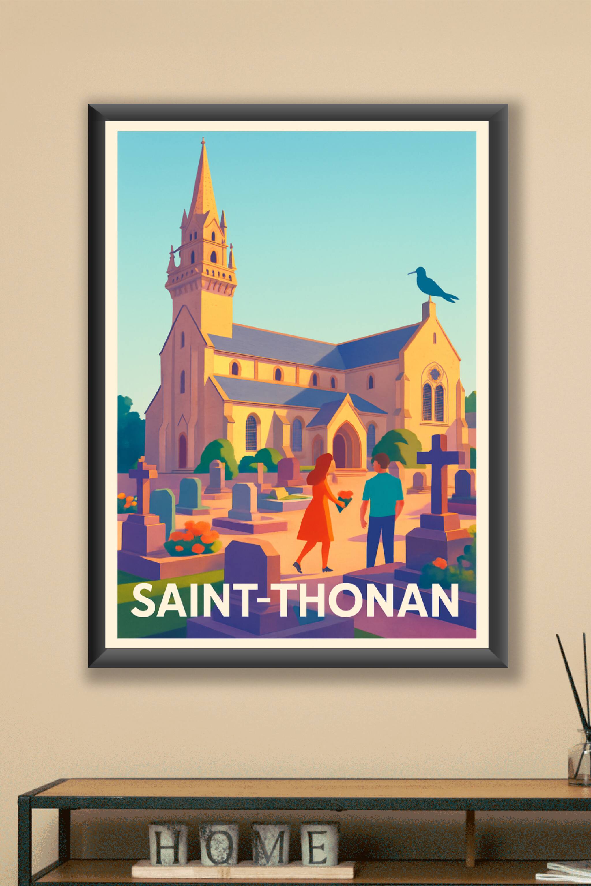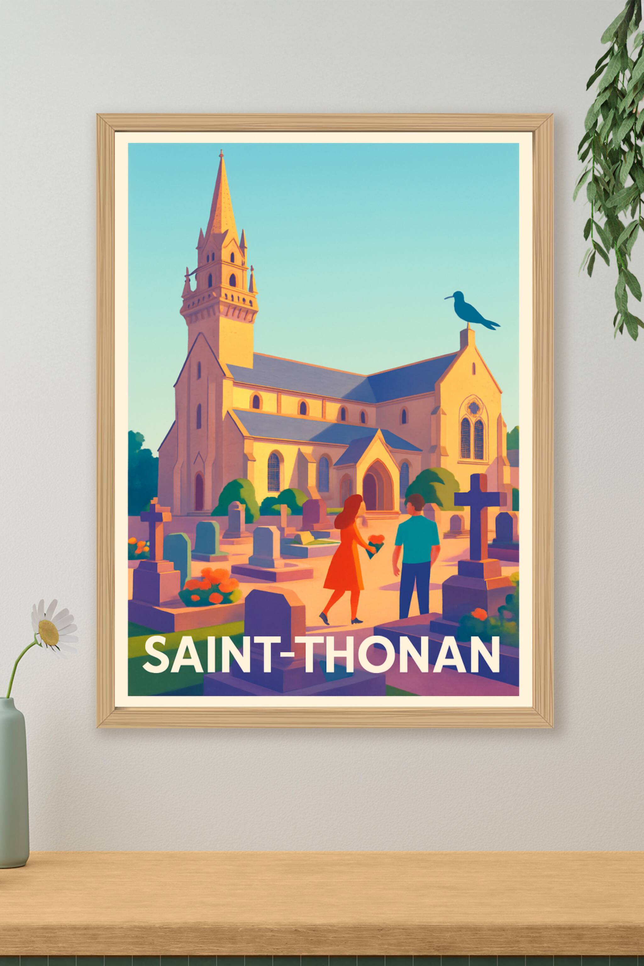 Découvrez l'affiche Saint-Thonan, une immersion chaleureuse dans l'atmosphère paisible de cette charmante commune bretonne. Cette illustration d'un...