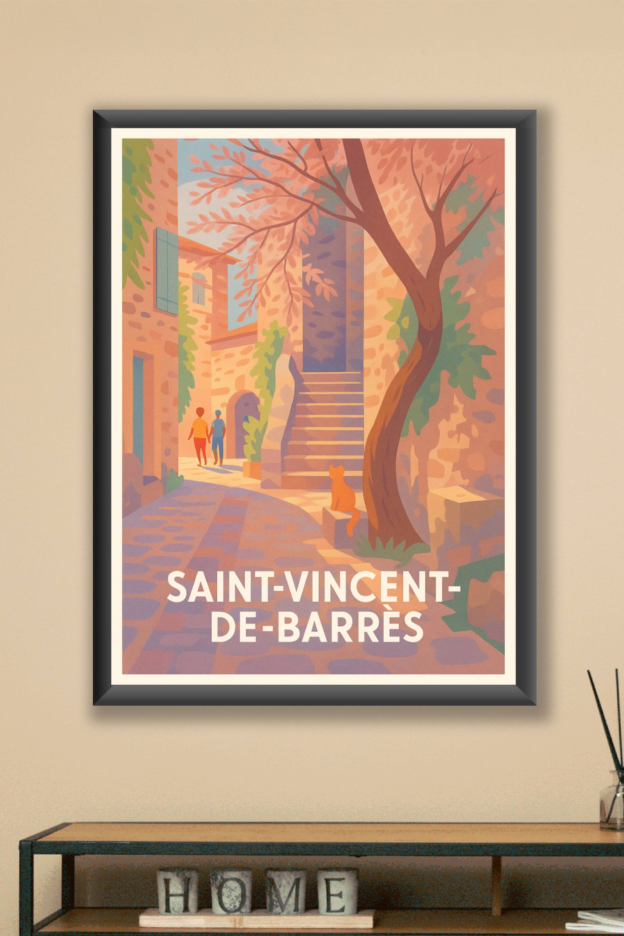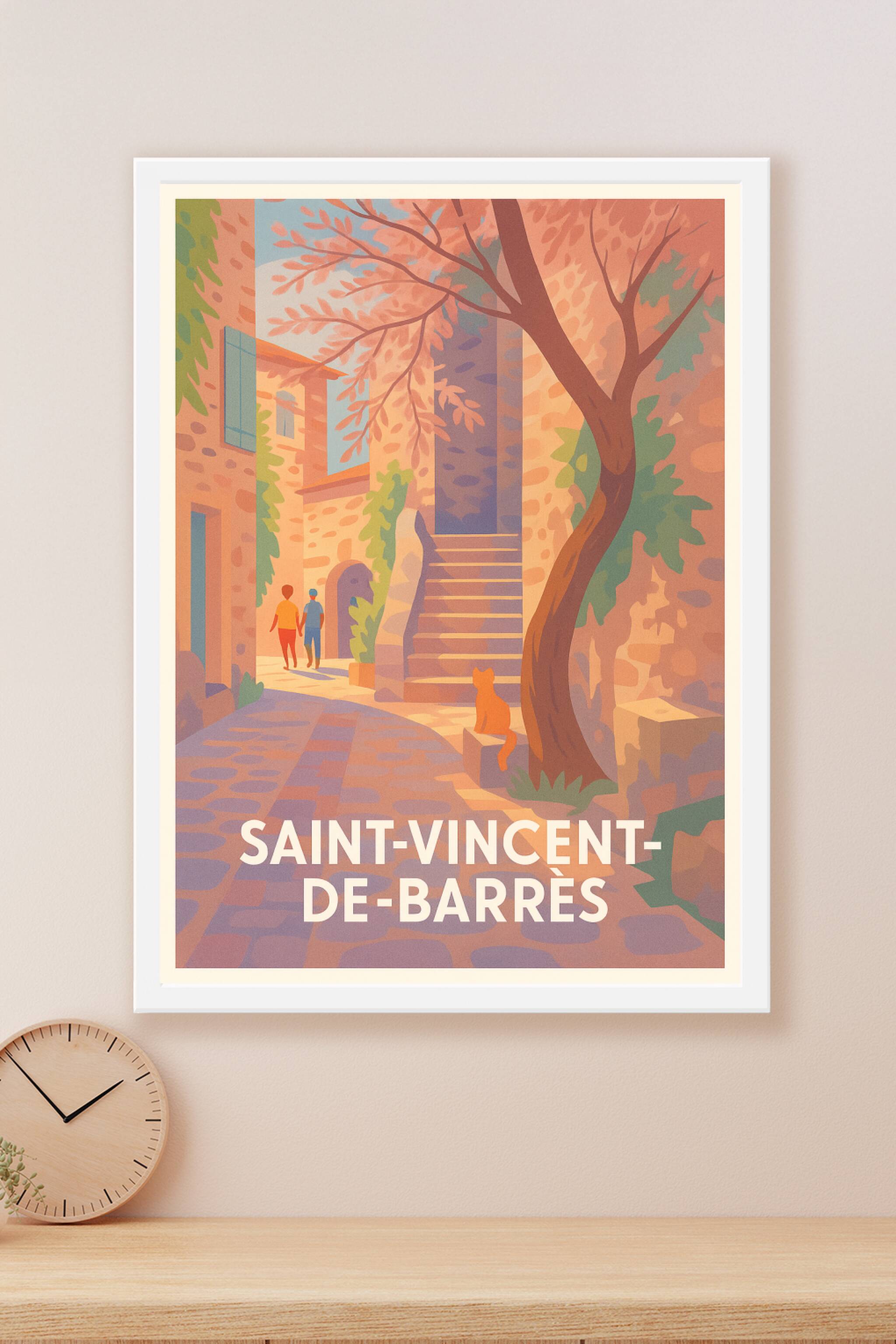 Découvrez cette affiche au style vintage qui capture la douceur de vivre dans les ruelles ensoleillées de Saint-Vincent-de-Barrès. Avec ses pierres...