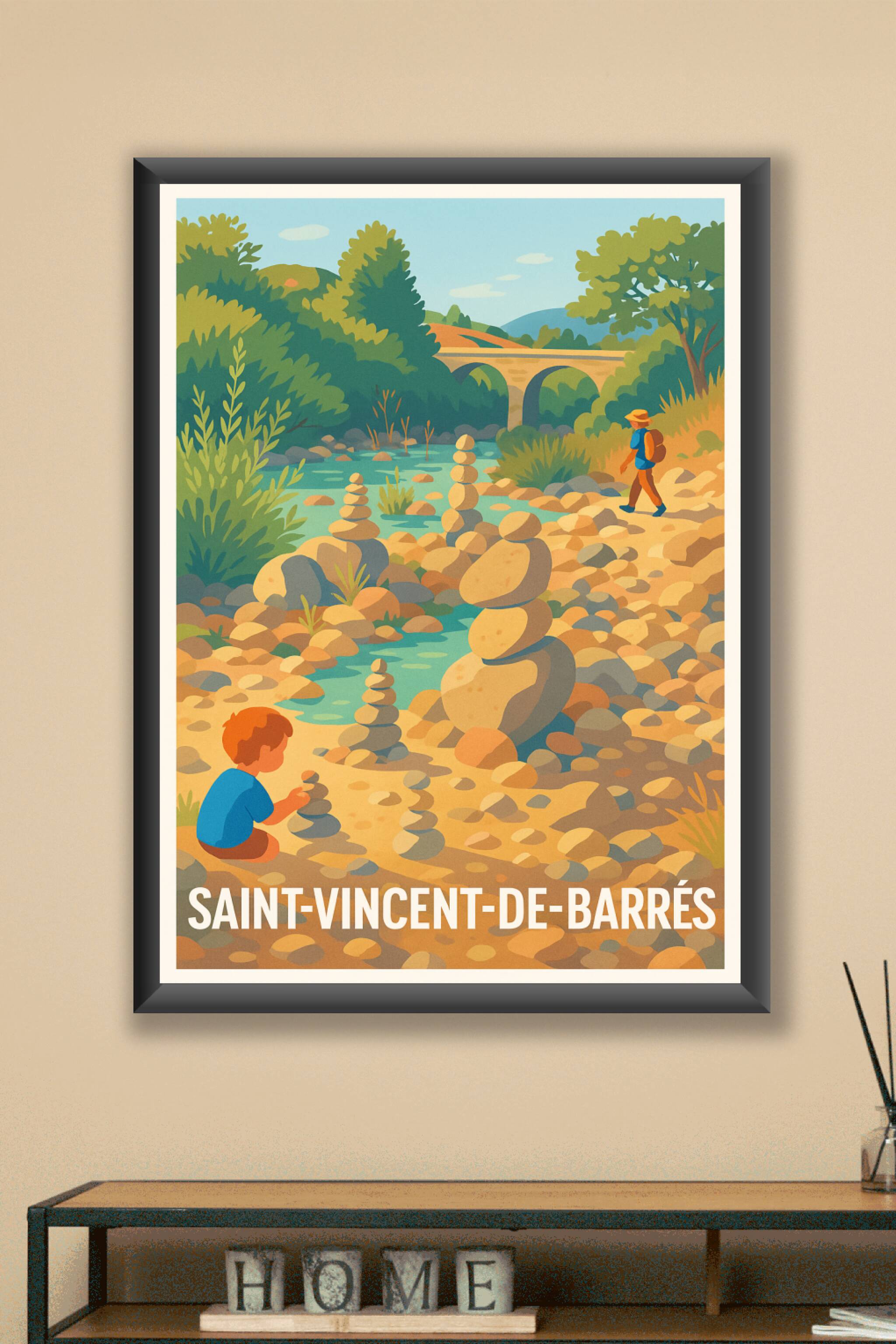 Découvrez la douceur et la sérénité de Saint-Vincent-de-Barrés avec cette affiche au style doux et coloré, illustrant un paysage naturel où les jeu...