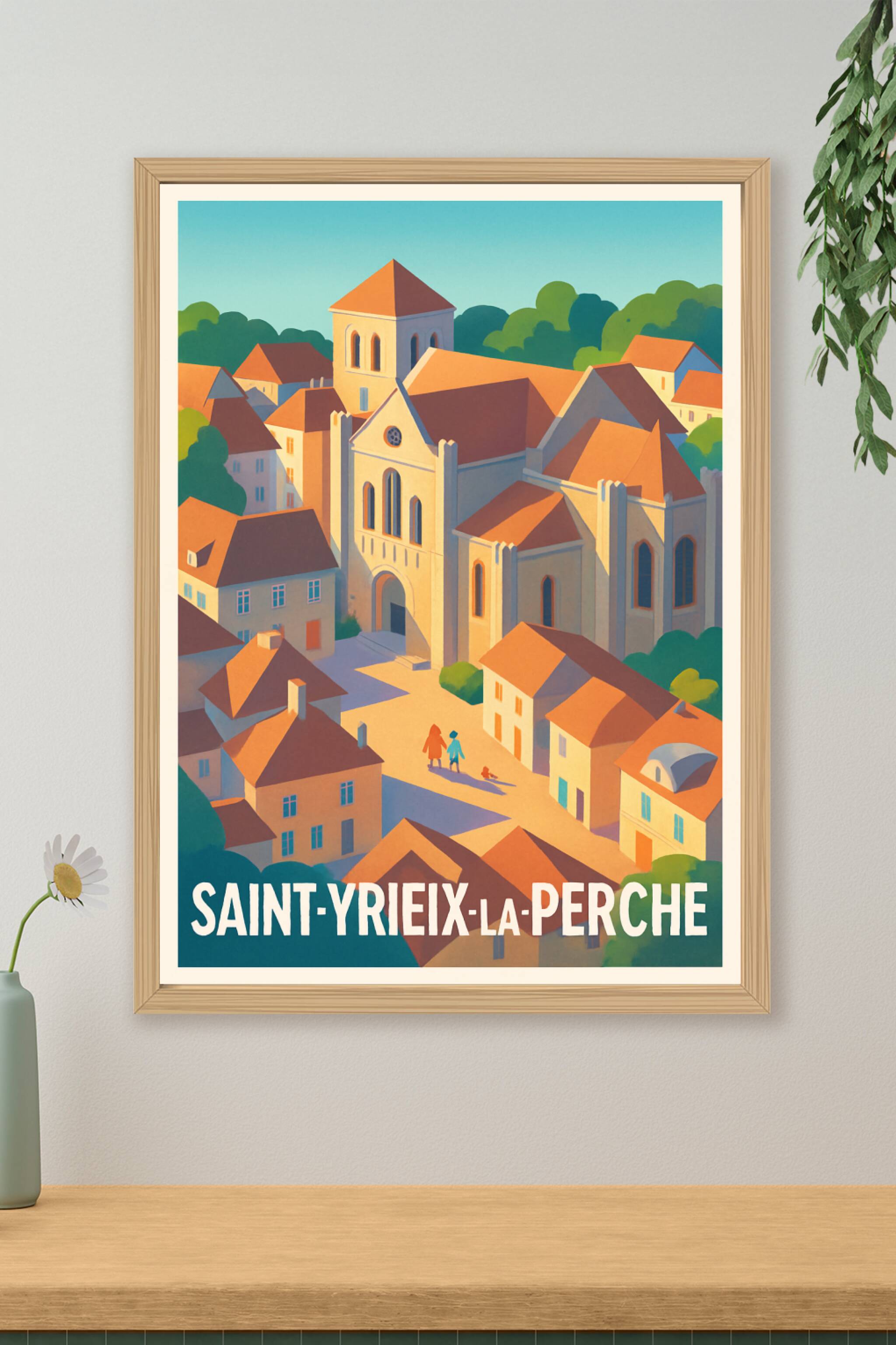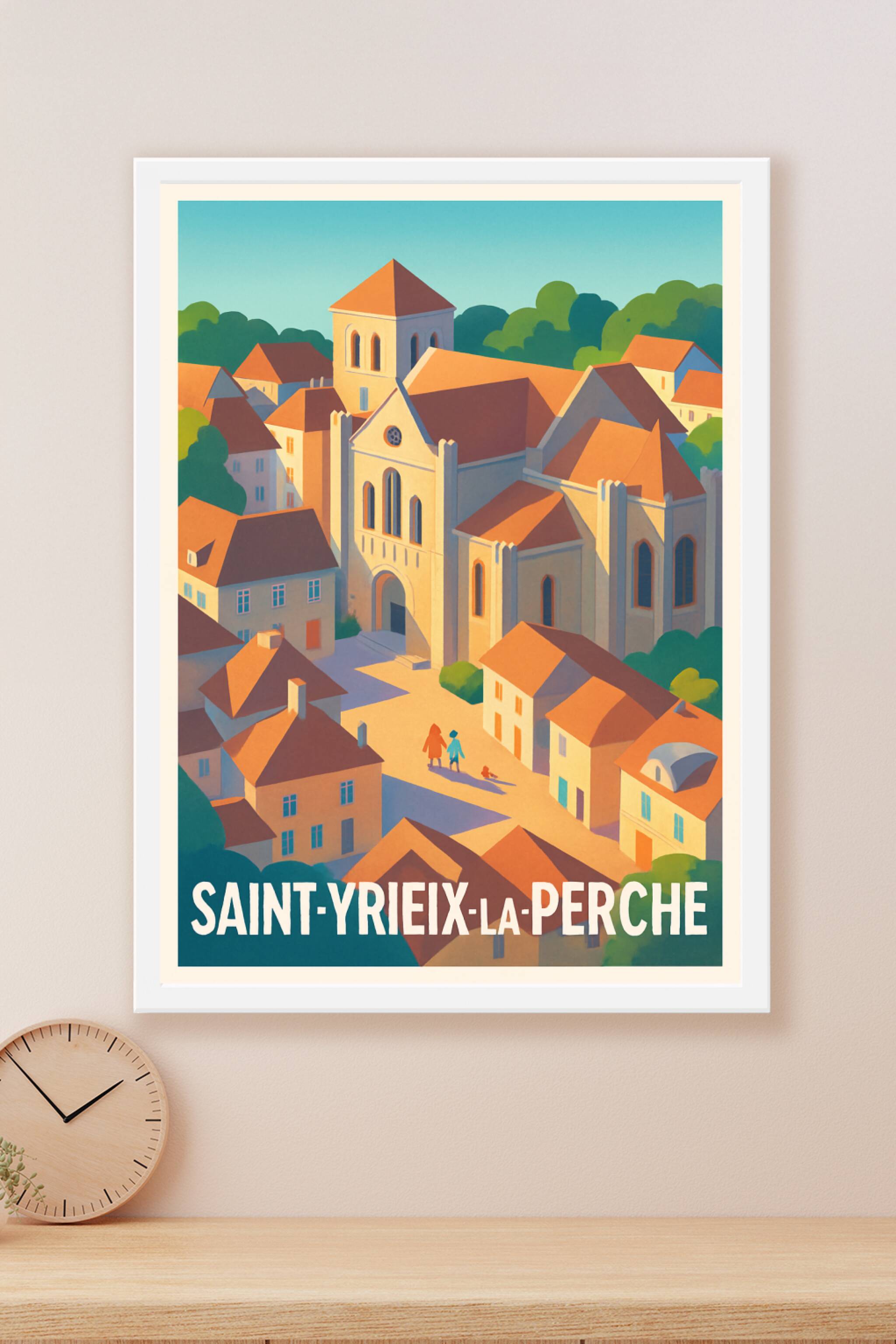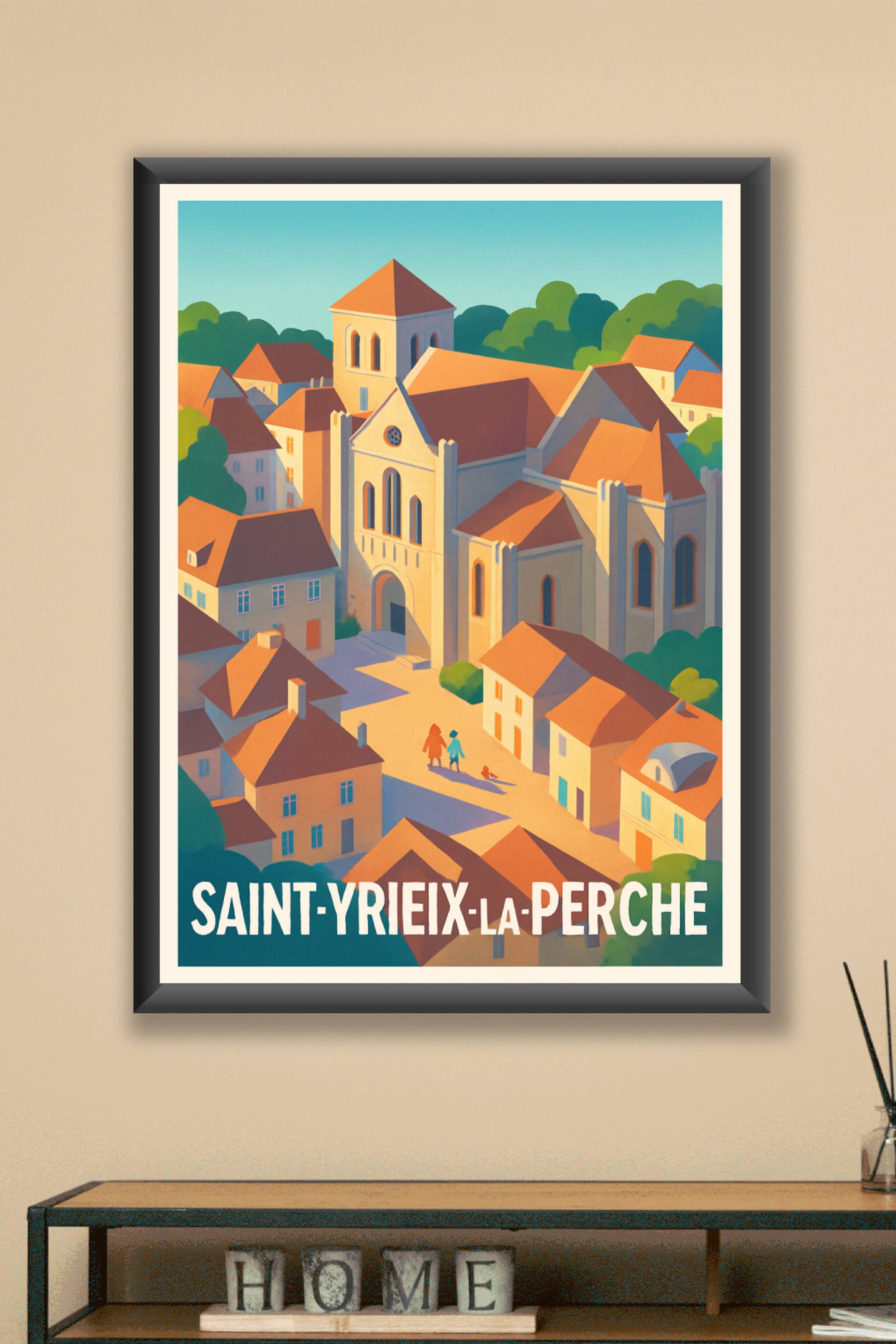 Découvrez la douceur et le charme pittoresque de Saint-Yrieix-la-Perche avec cette affiche illustrée qui met en lumière son architecture traditionn...