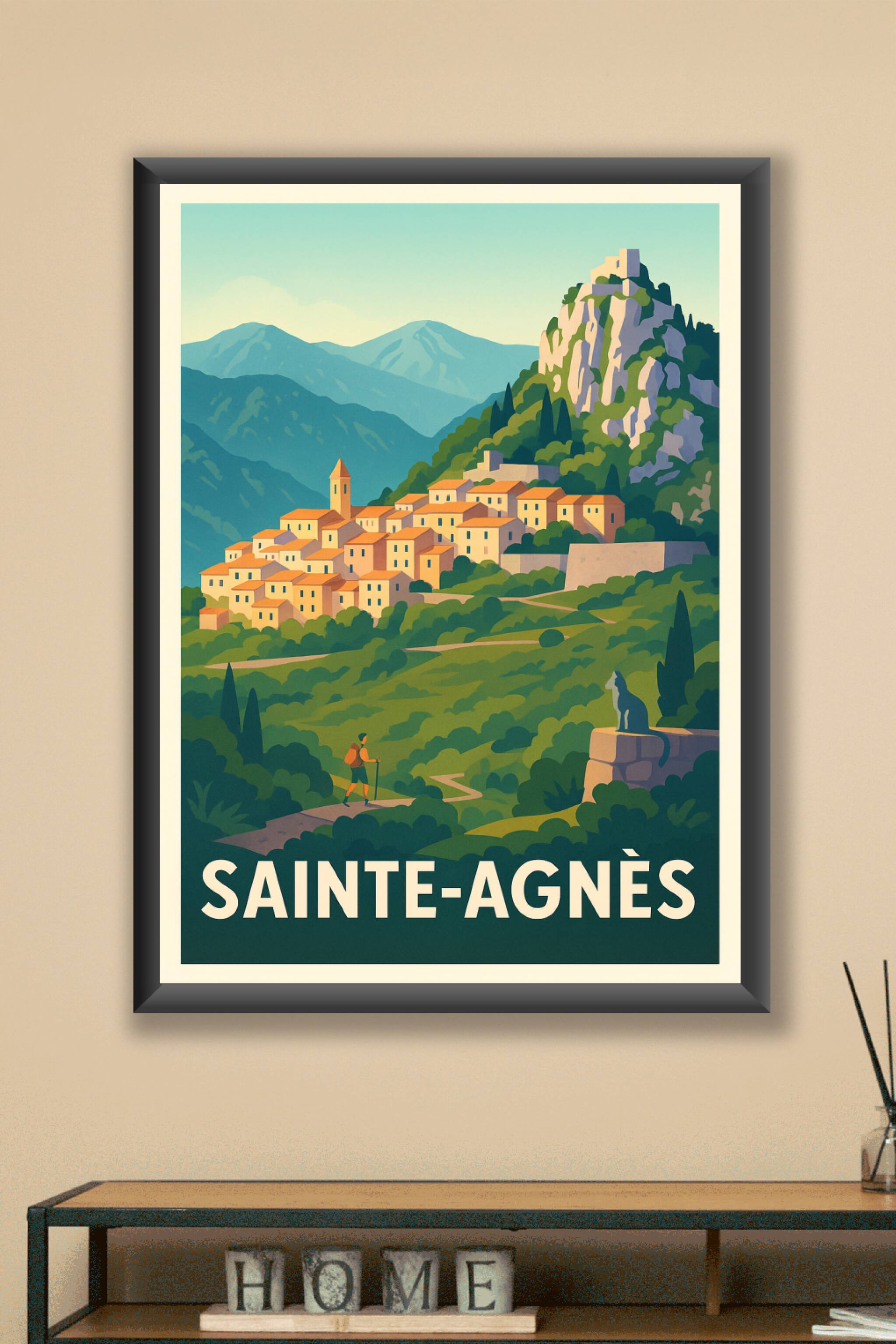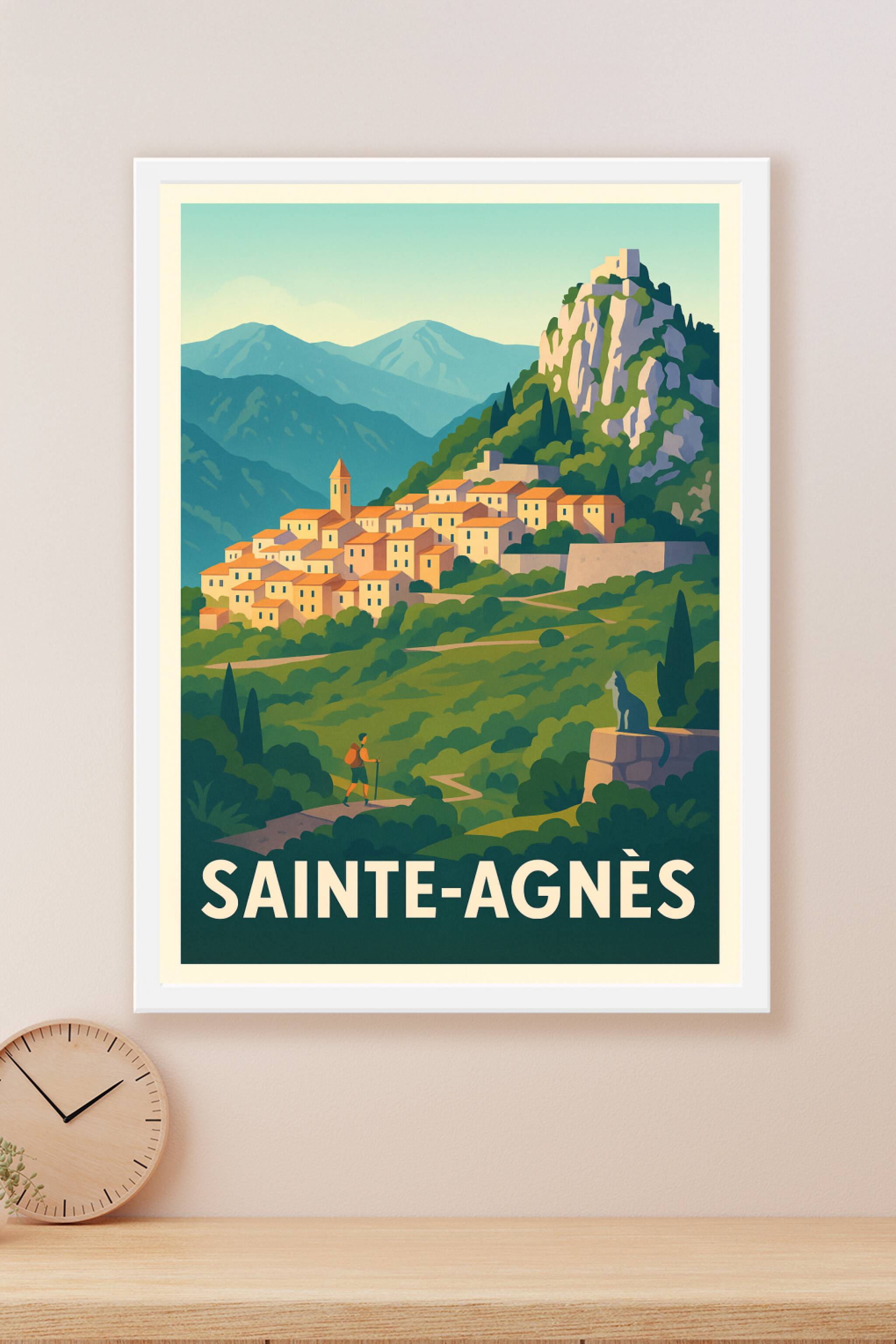 Découvrez l'élégance intemporelle de Sainte-Agnès, ce village perché au charme méditerranéen, illustré dans un style vintage qui invite au voyage. ...