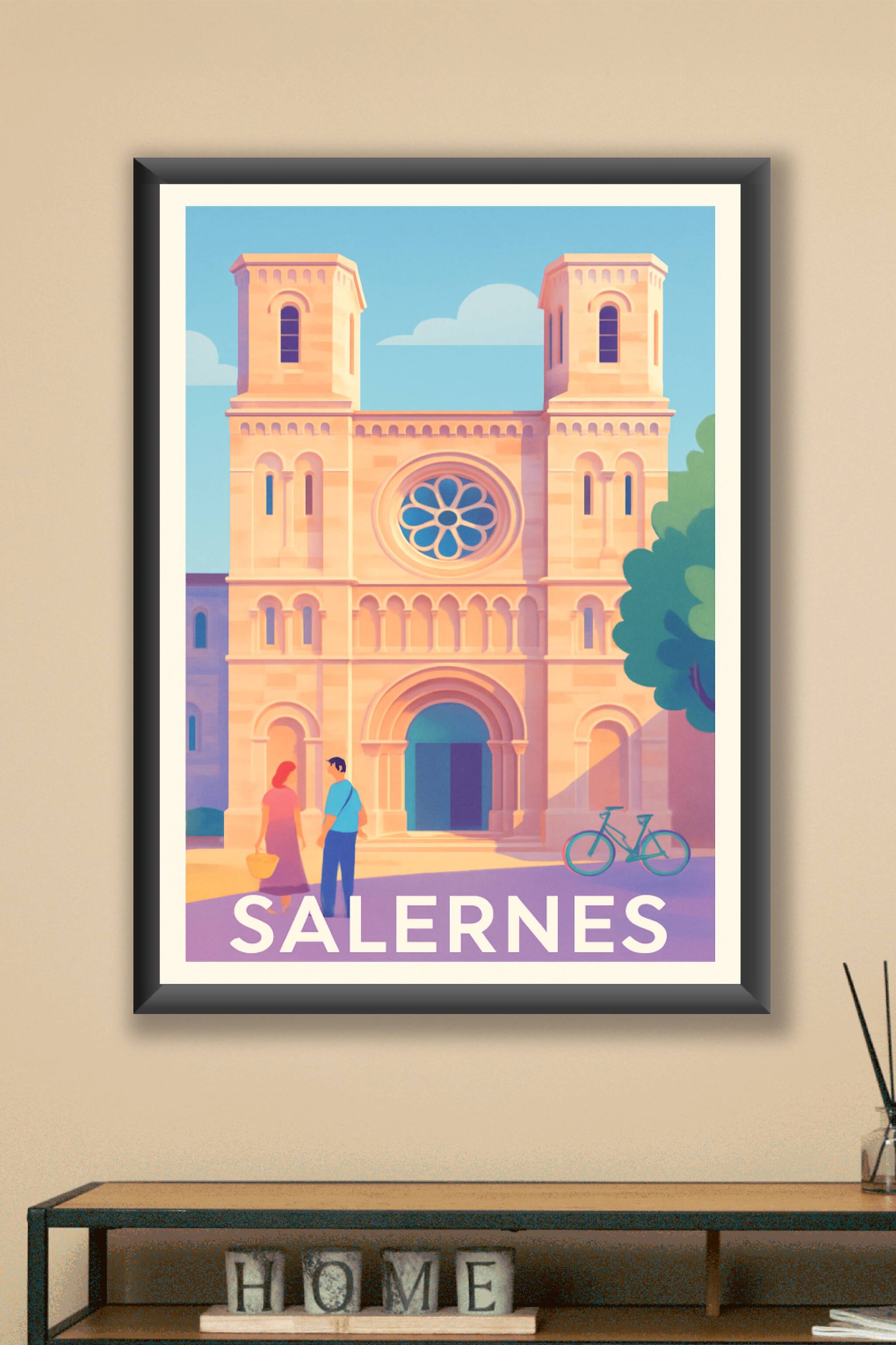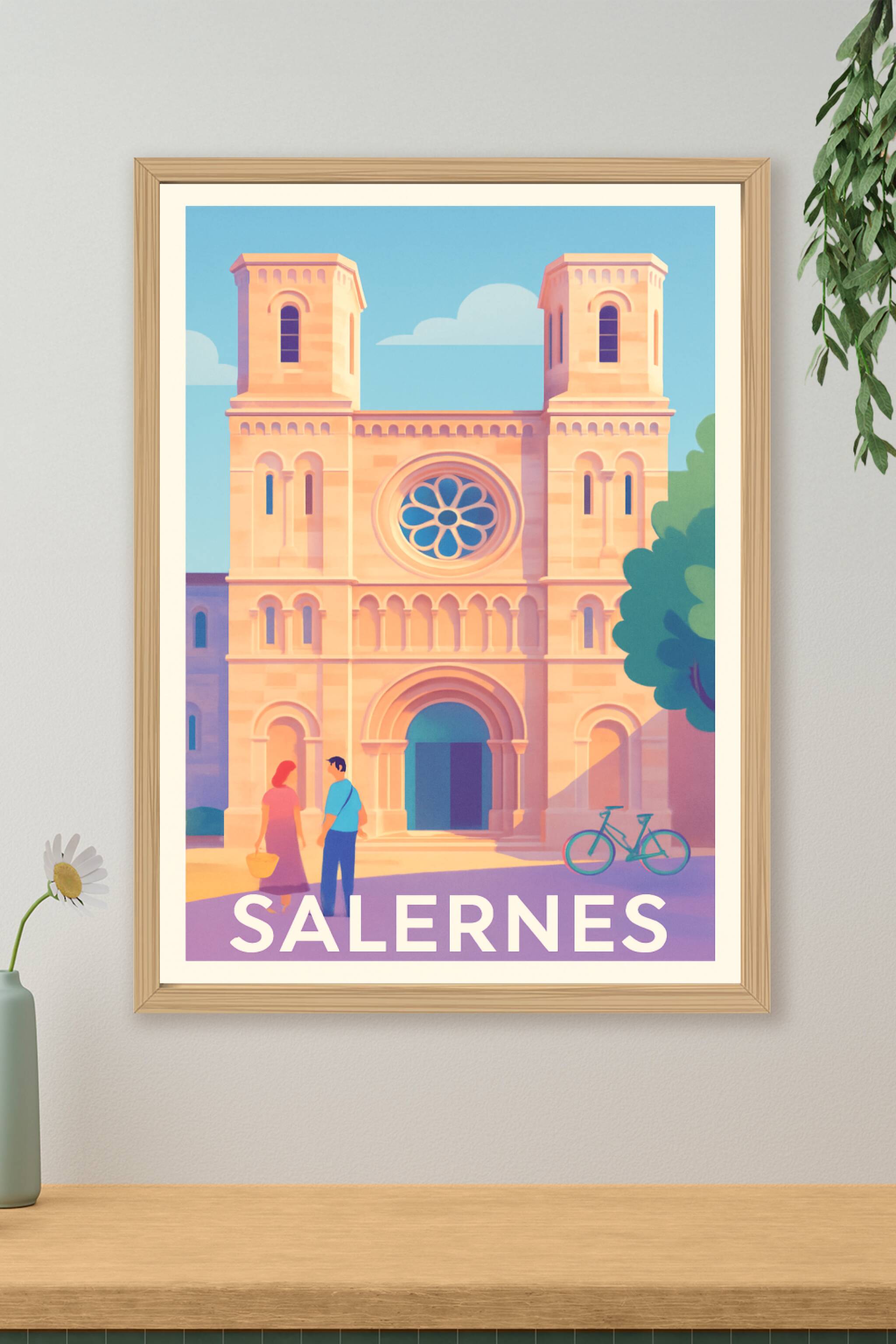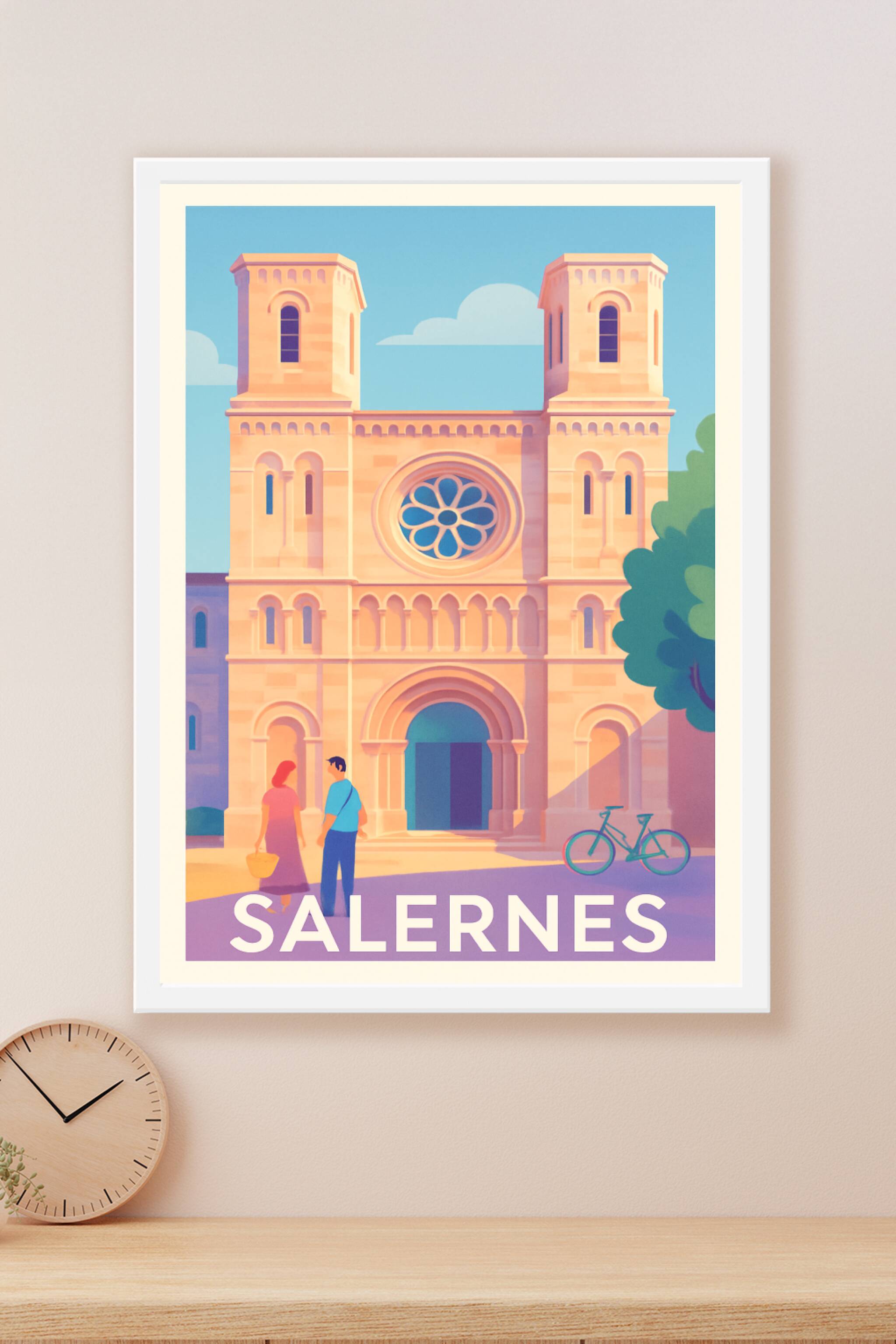 Découvrez l'élégance intemporelle de Salernes avec cette affiche artistique mettant en scène son architecture emblématique sous un ciel azur. Ce po...