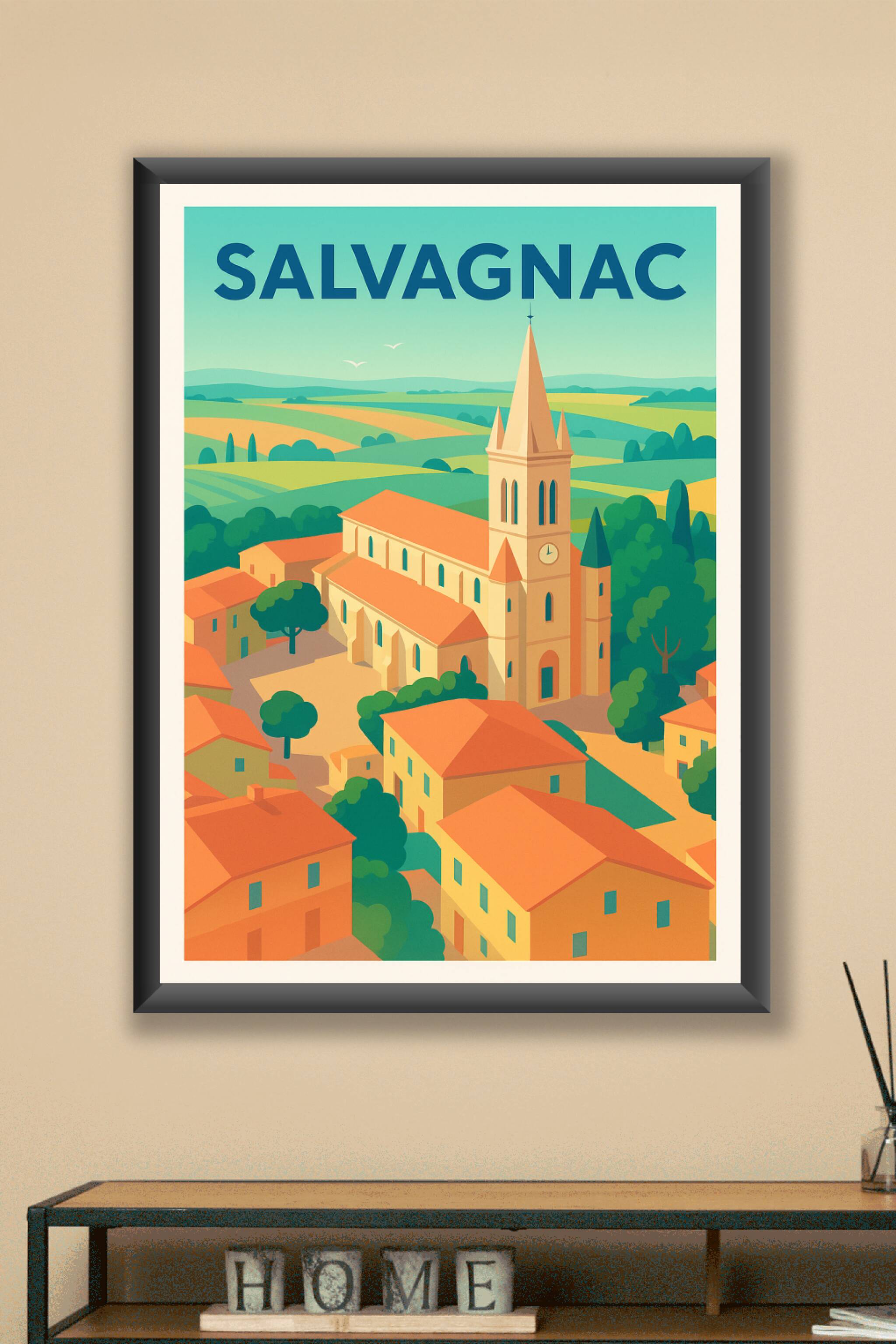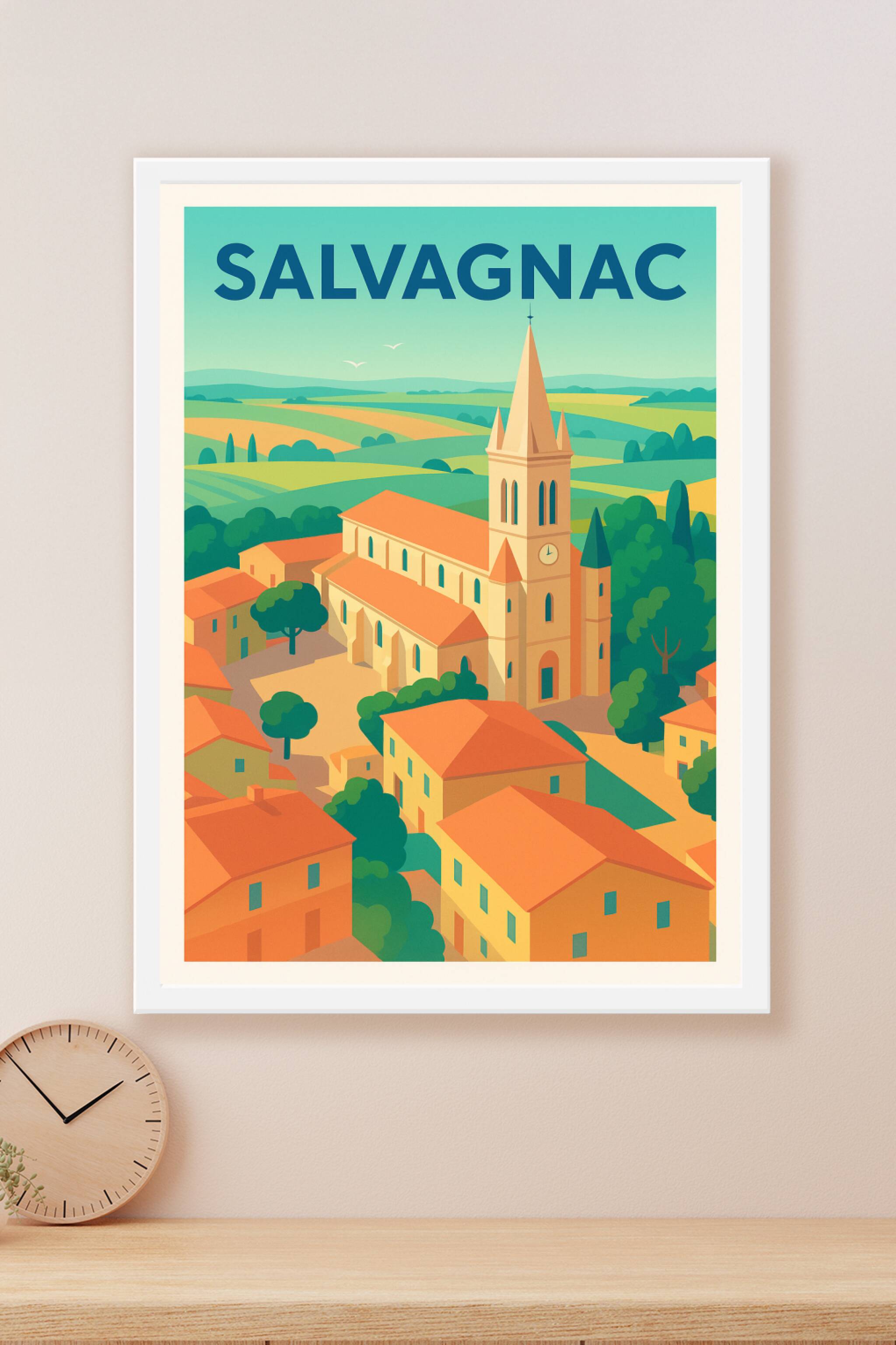 Découvrez cette magnifique affiche de Salvagnac, qui capture l'essence paisible et pittoresque de ce village occitan au cœur de paysages verdoyants...