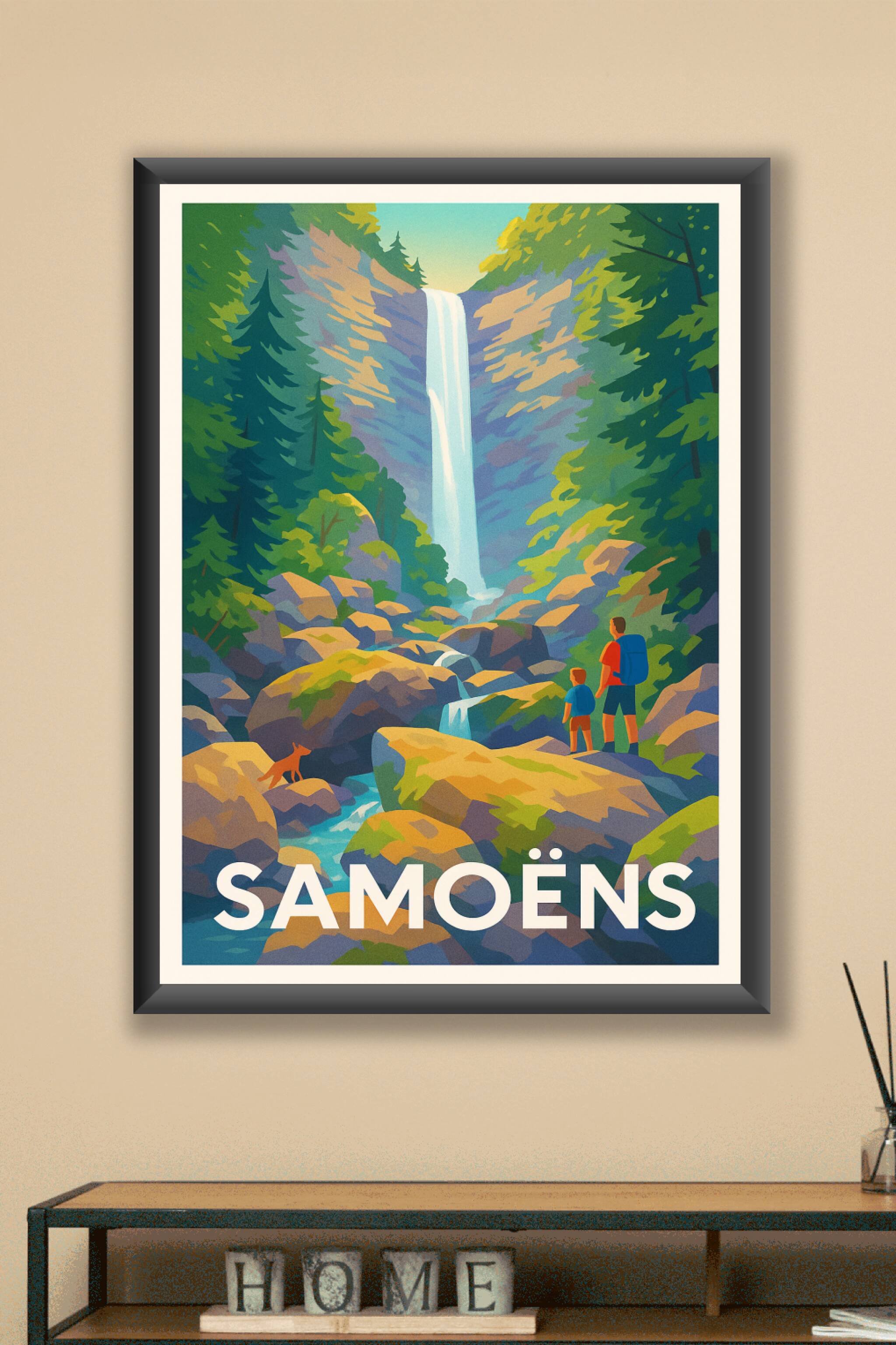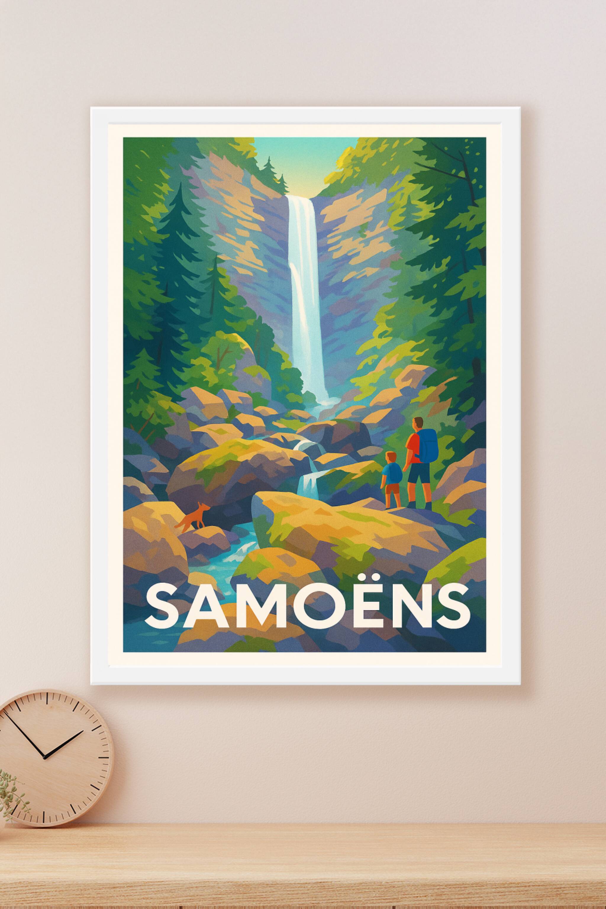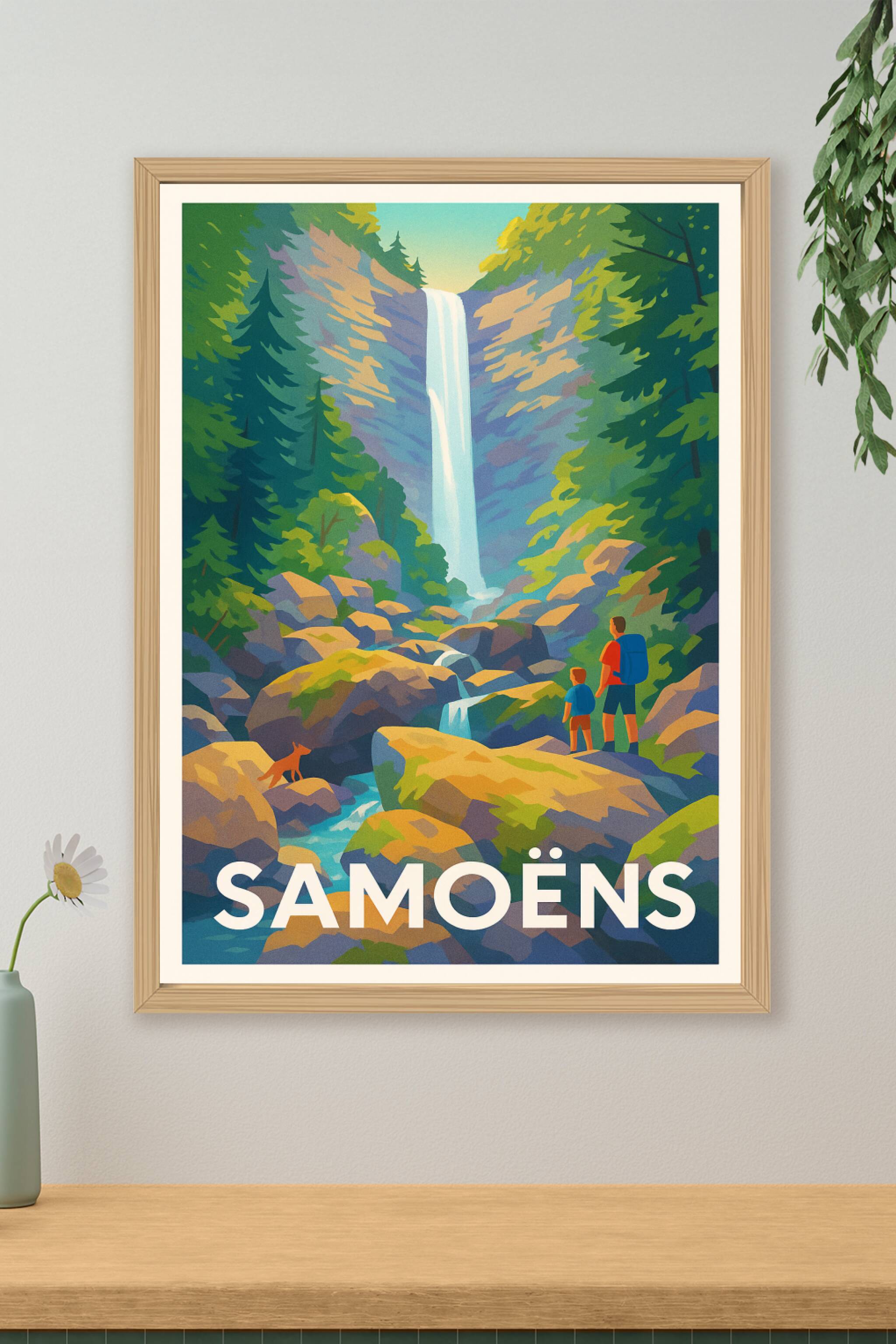 Découvrez la beauté sauvage des Alpes avec cette affiche illustrée mettant en scène une cascade impressionnante dans le parc naturel aux alentours de Samoëns. Idéale pour les amateurs de randonnée et de paysages naturels, cette affiche capture l'essence d'une aventure en famille au milieu des rochers et des forêts verdoyantes. Imprimée en tirage "Fine Art" sur papier 305g coton, cette affiche garantit une qualité d'impression exceptionnelle, fidèle aux couleurs d'origine. Disponible en formats A1 à A4, avec ou sans cadre, ce poster sublimera votre décoration intérieure et s'adapte à tous les espaces. Fabriquée en France, cette affiche Samoëns est parfaite pour offrir un souvenir authentique ou pour embellir votre intérieur avec une touche alpine.