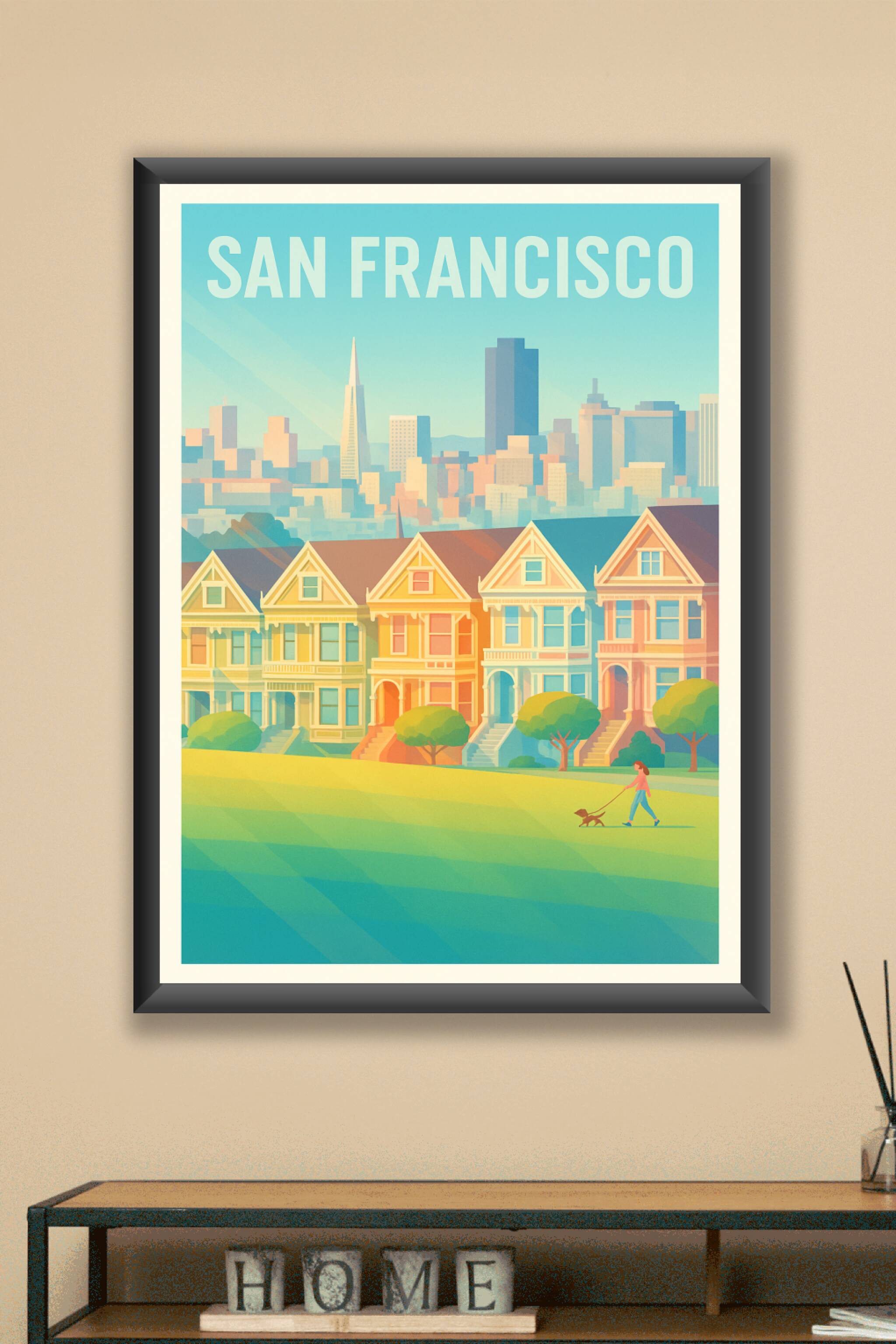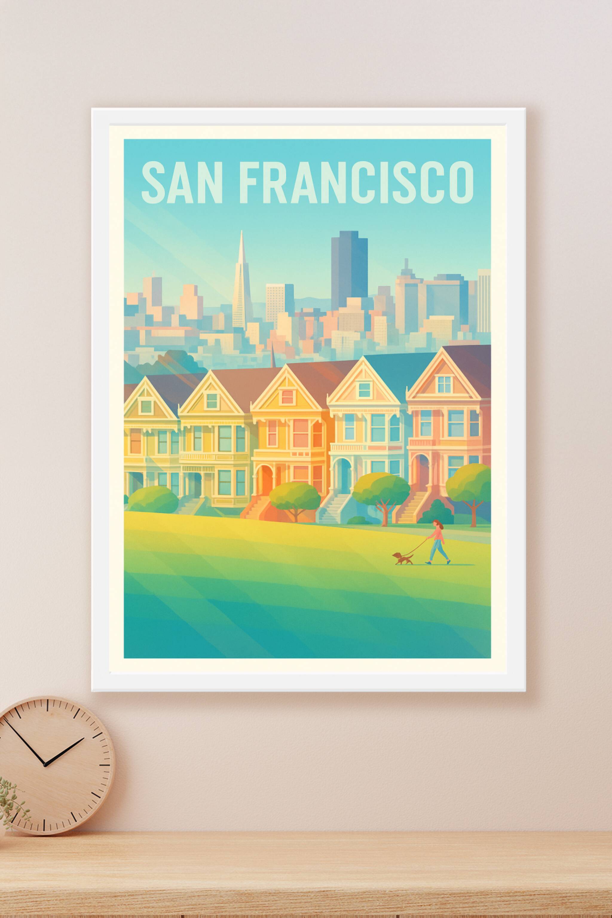 Découvrez le charme unique de San Francisco avec ce poster illustré mettant en avant les fameuses Painted Ladies, ces maisons victoriennes emblémat...
