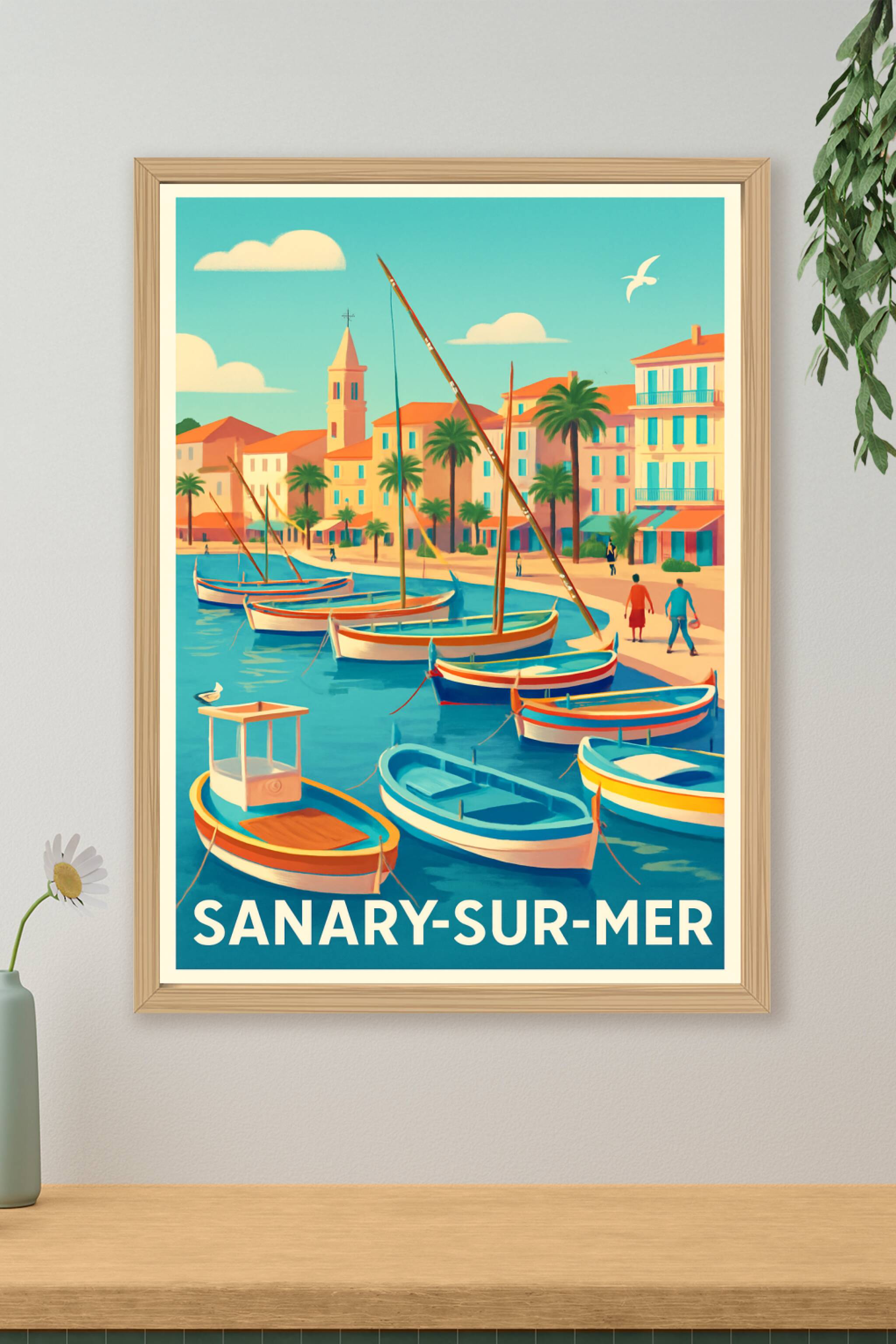 Découvrez la douceur de vivre méditerranéenne avec cette affiche pleine de charme qui capture le charme pittoresque du port de Sanary-sur-Mer. Ses ...
