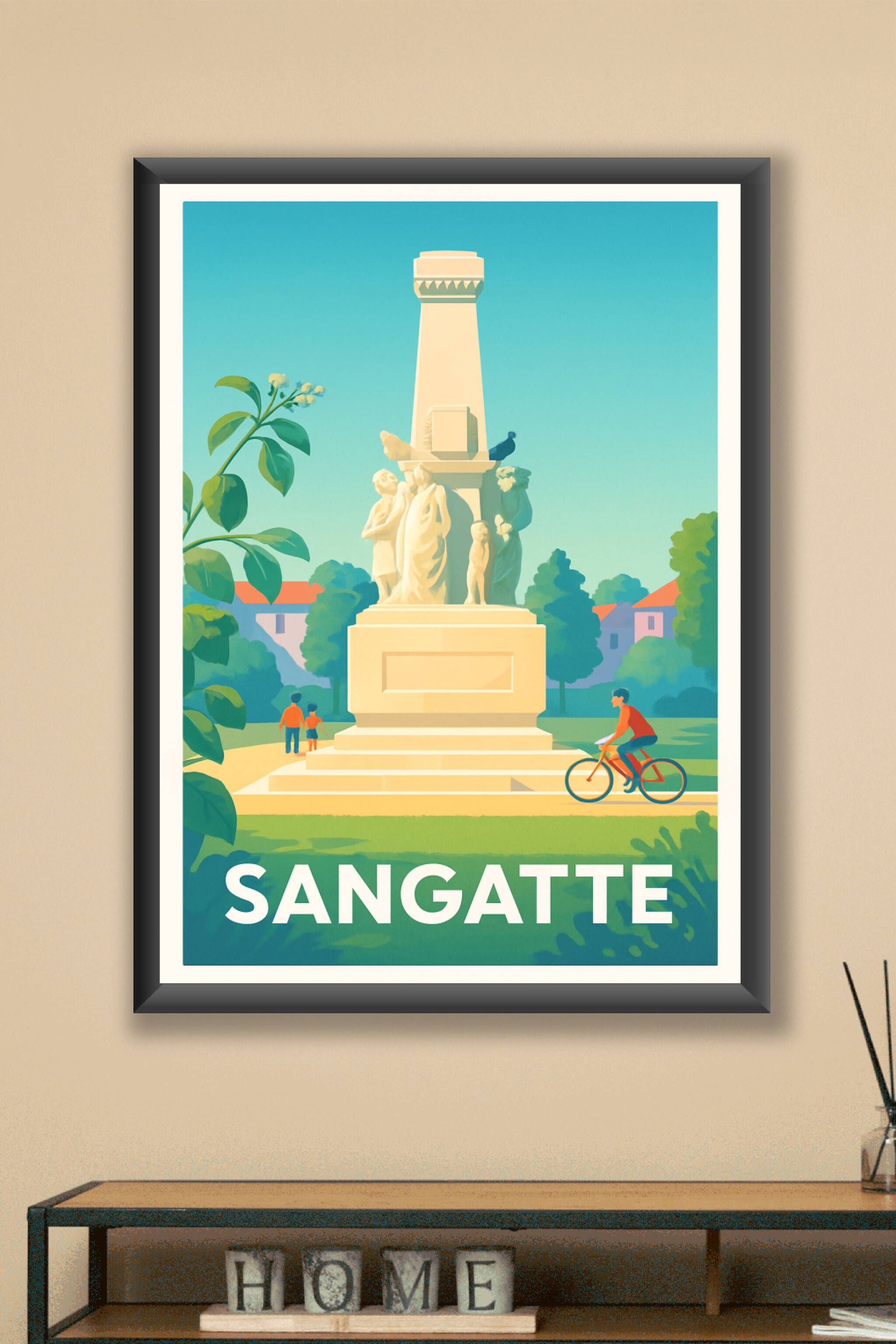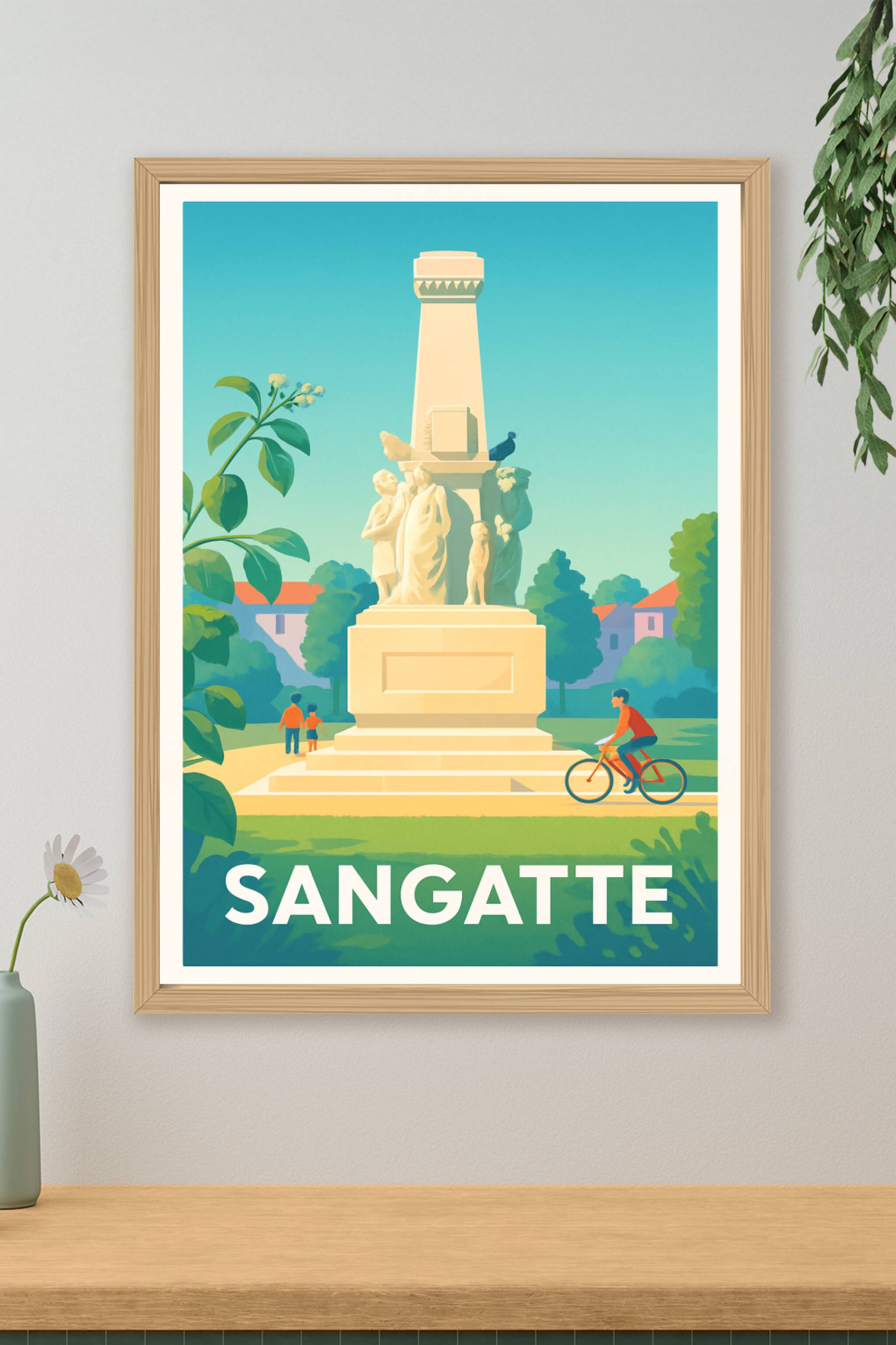 Découvrez cette superbe affiche illustrée représentant un monument emblématique de Sangatte, baigné par une lumière douce et un ciel bleu éclatant. Ce poster évoque la sérénité d’une promenade à vélo dans un cadre verdoyant, soulignant le charme et l’histoire de cette ville. Imprimée en tirage "Fine Art" sur un papier 305g coton de haute qualité, cette affiche se décline en plusieurs formats pratiques, du A1 au A4, avec ou sans cadre selon vos envies. Offrez-vous ou offrez un souvenir authentique de Sangatte, avec une impression premium 100% fabriquée en France, parfaite pour embellir votre intérieur ou votre bureau.