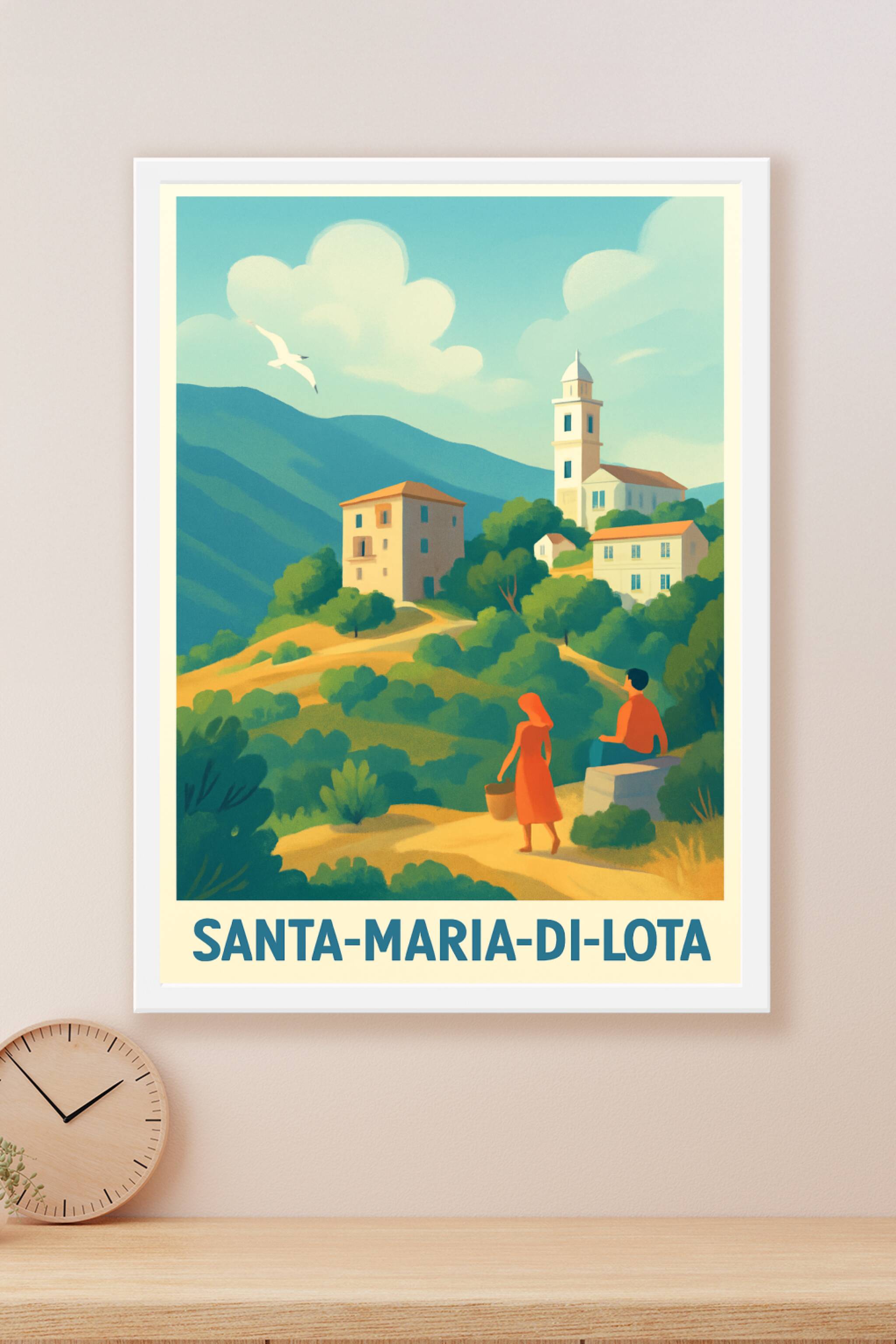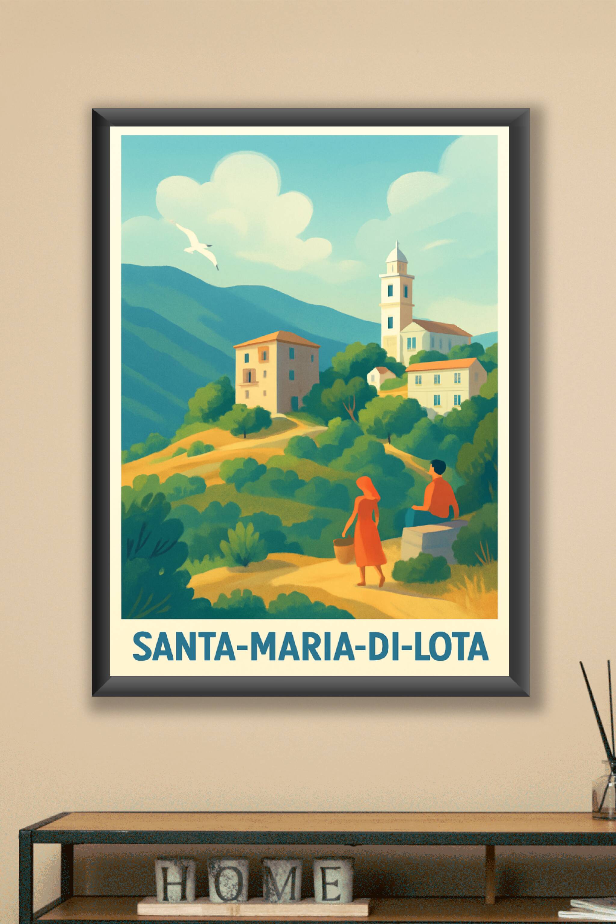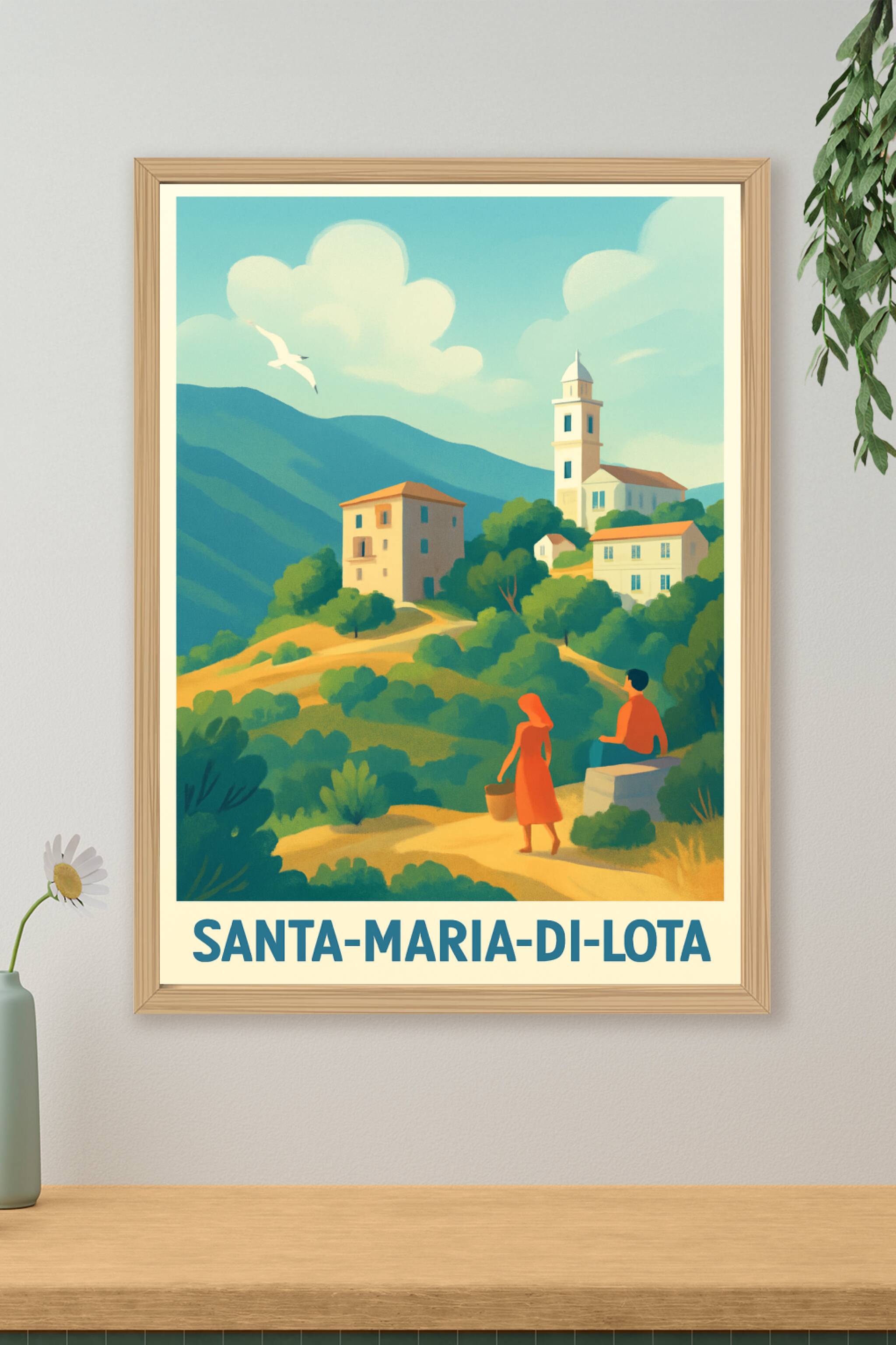Découvrez la douceur et la sérénité de Santa-Maria-di-Lota à travers cette affiche au style illustratif doux et enchanteur. Cette scène champêtre m...
