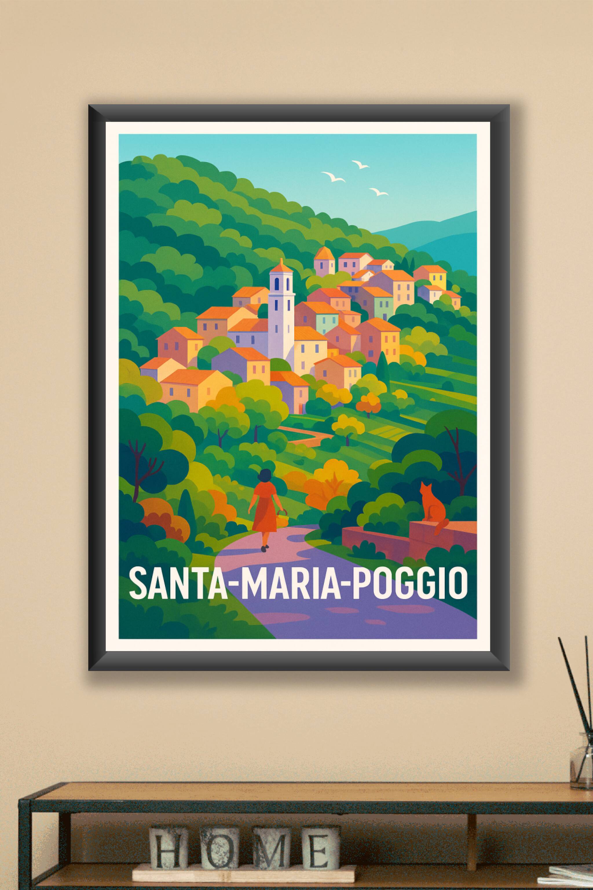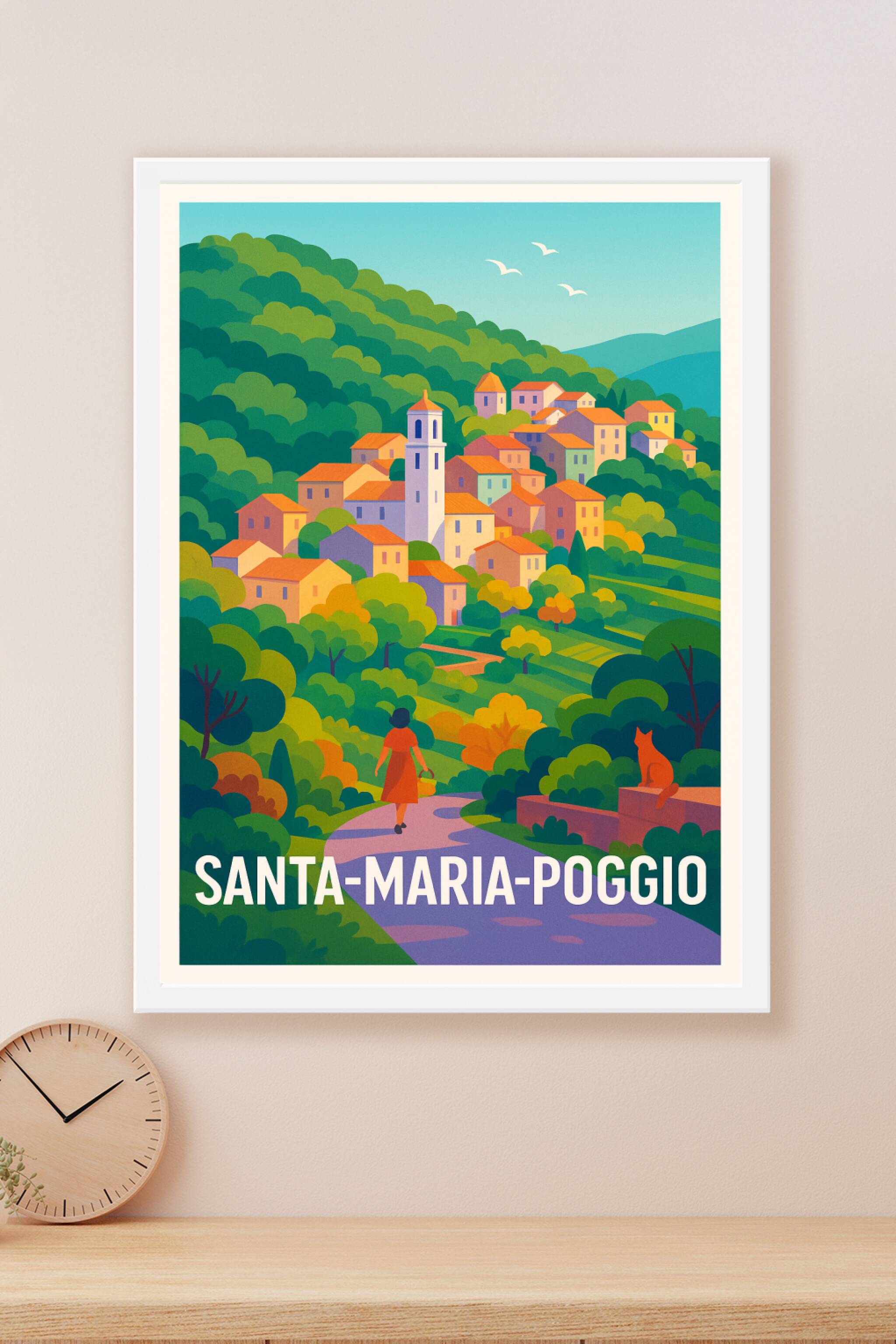 Découvrez la tranquillité et le charme authentique de Santa-Maria-Poggio avec cette affiche illustrée aux couleurs vibrantes et aux formes douces. ...