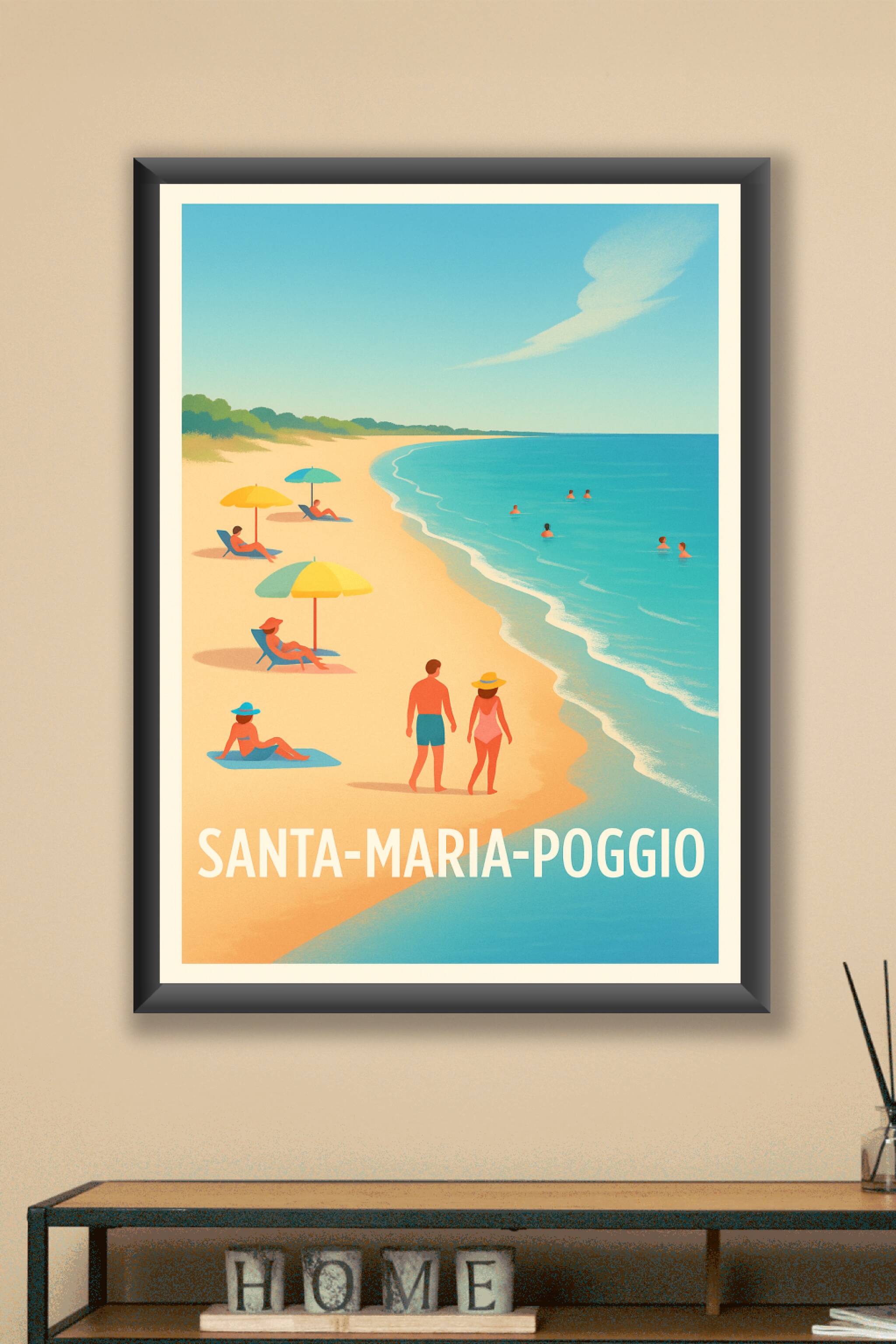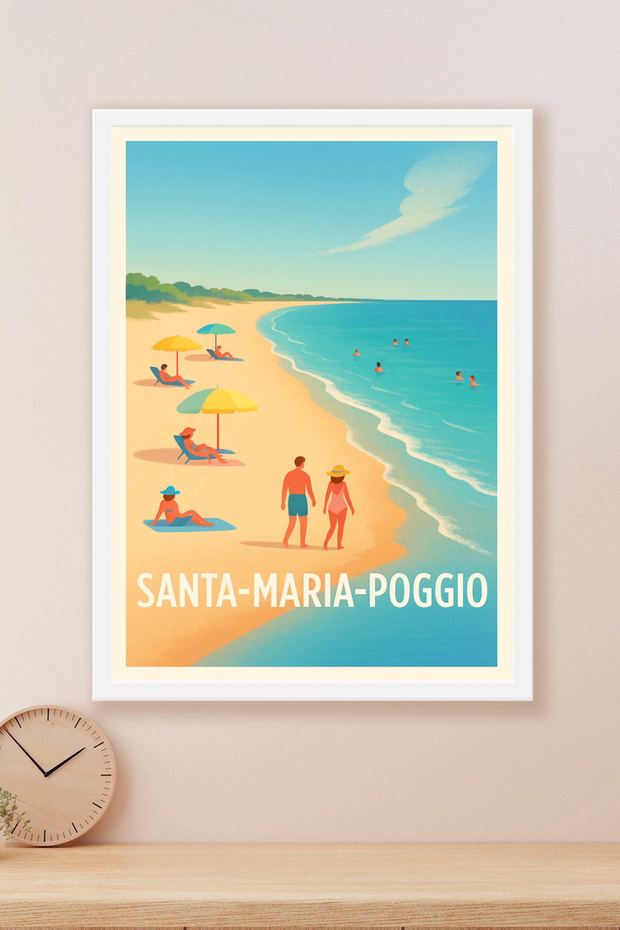 Évadez-vous vers les rivages idylliques de Santa-Maria-Poggio avec cette affiche vintage qui capture la sérénité et la douceur de vivre d'une plage...