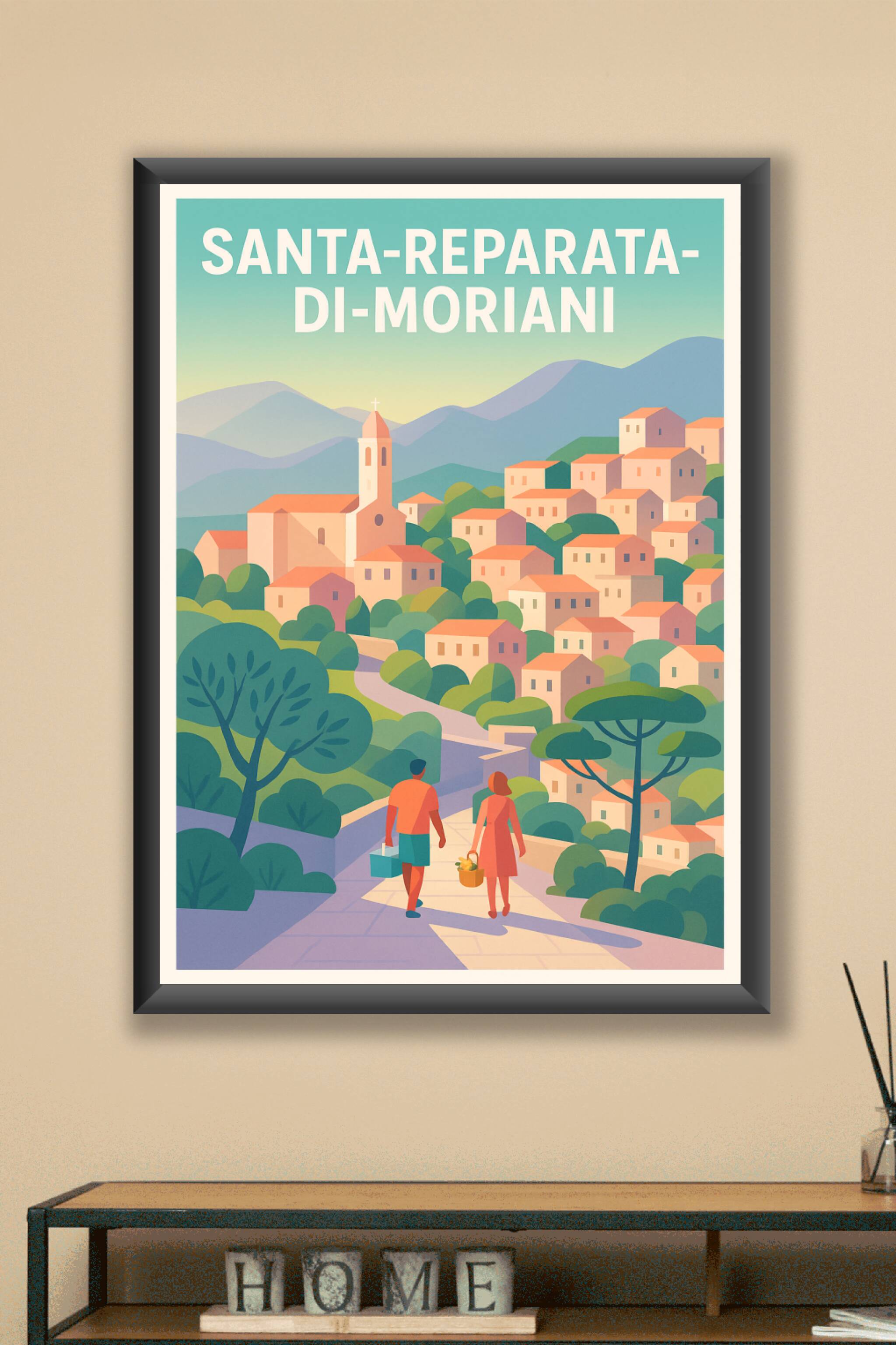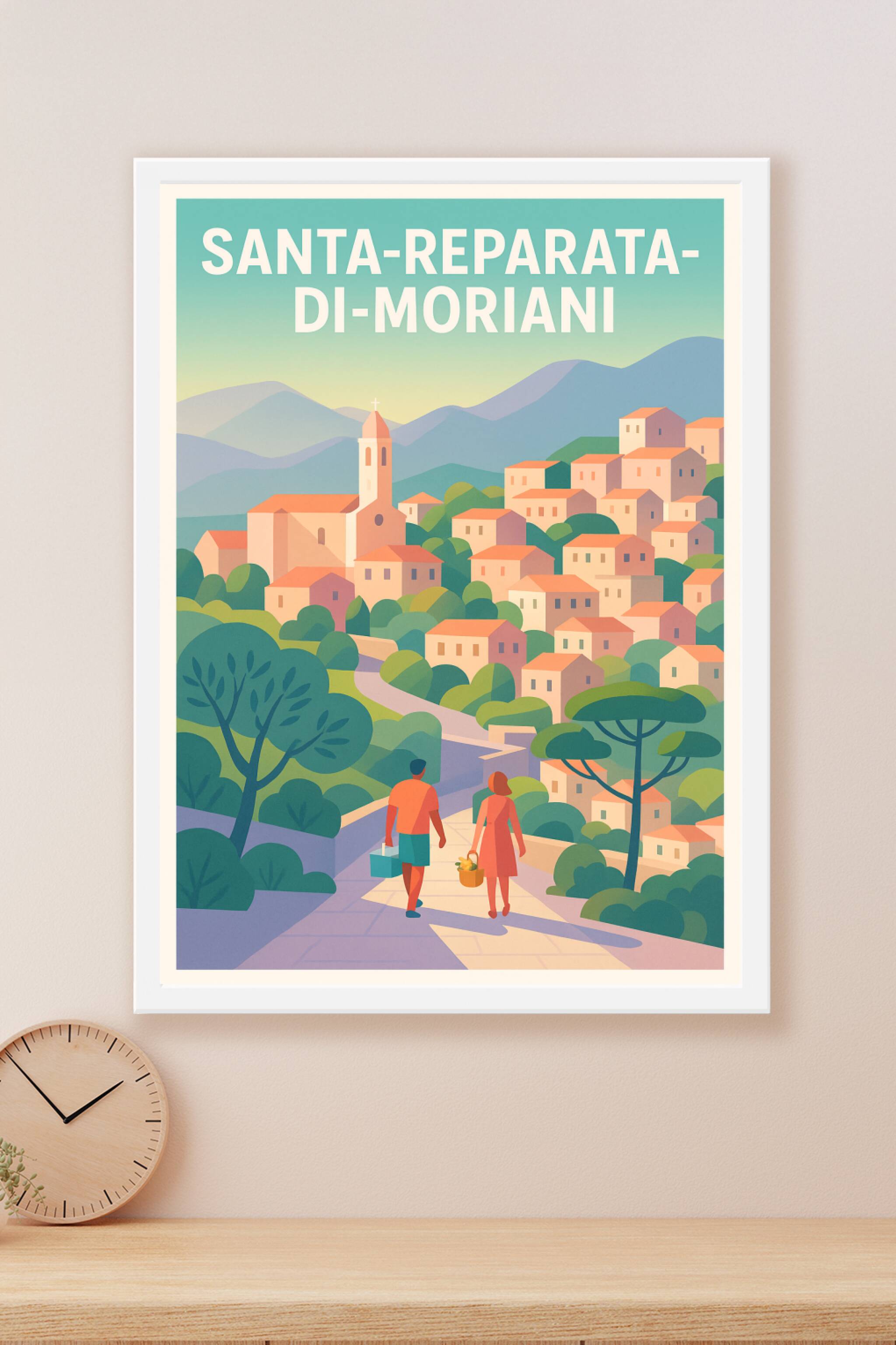 Découvrez l'élégance et le charme authentique de Santa-Reparata-di-Moriani avec cette affiche illustrée au style contemporain et apaisant. Ce poste...