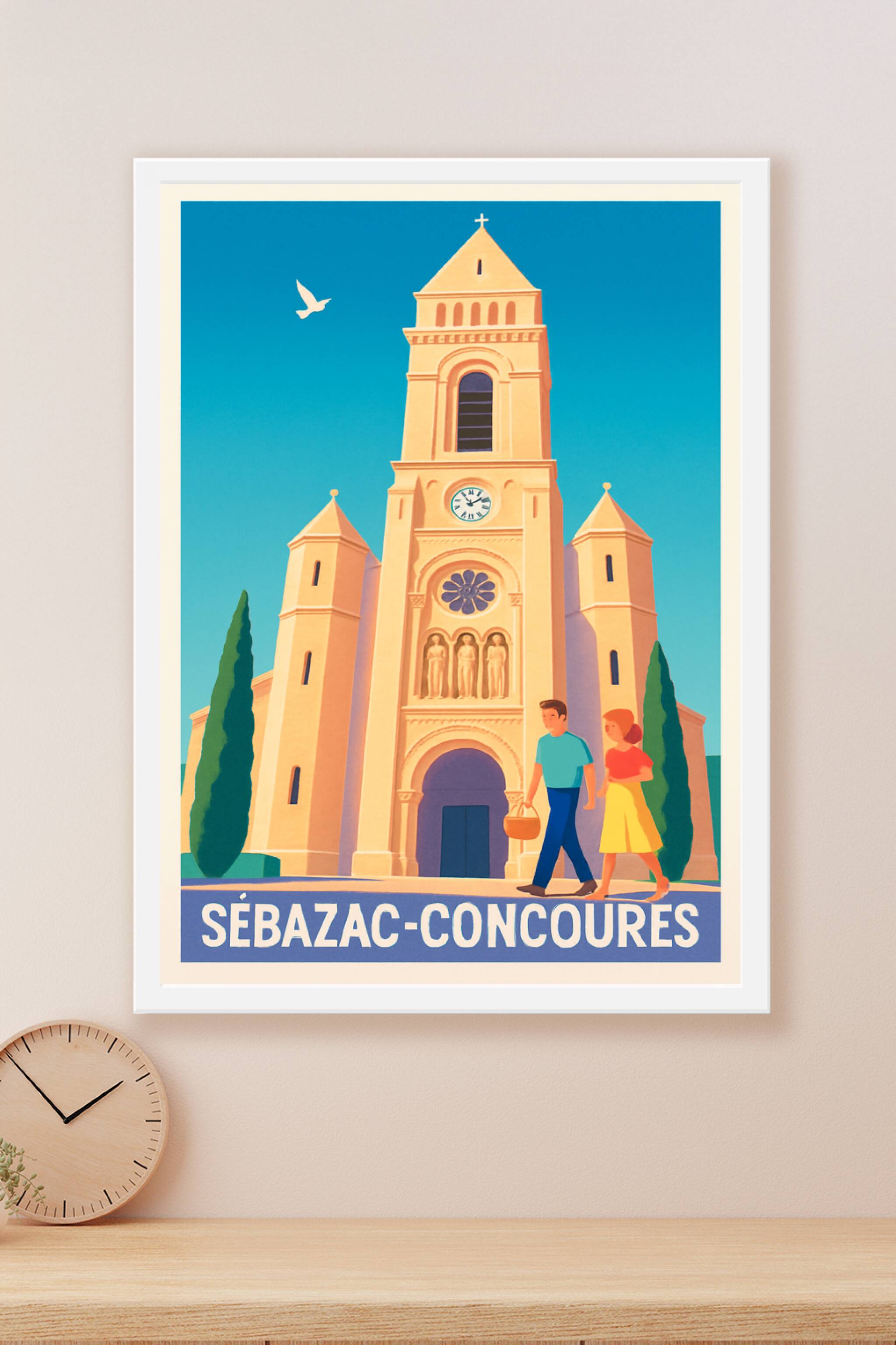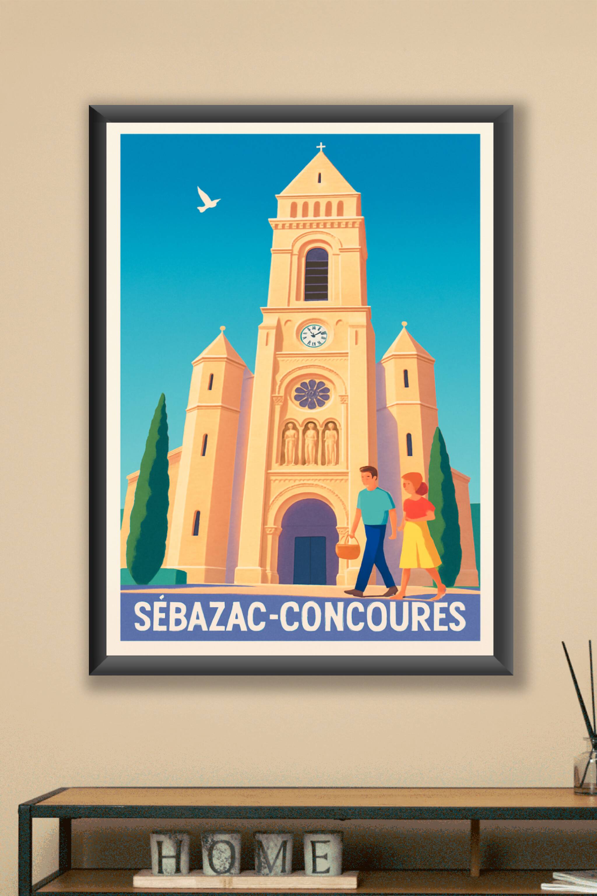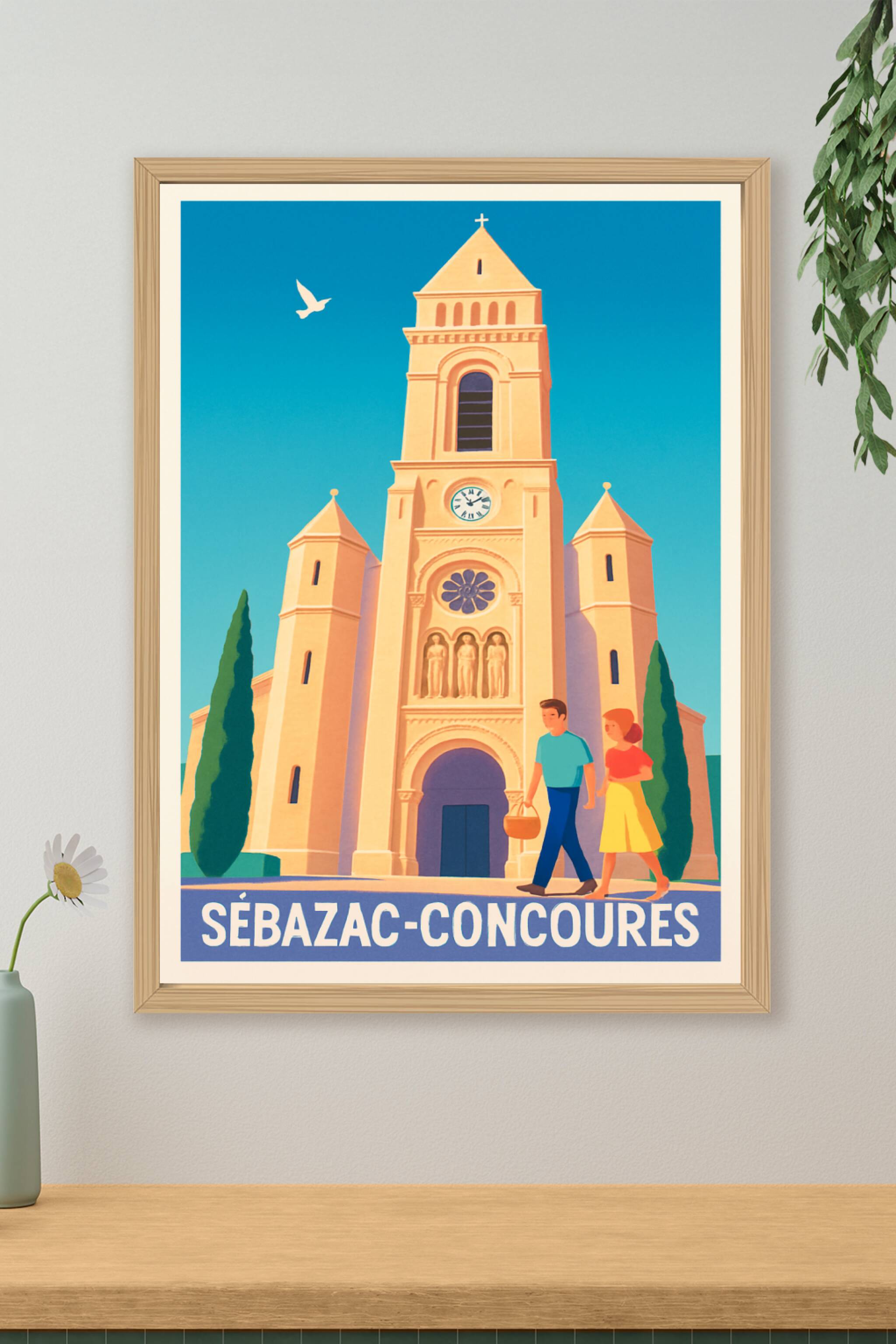Découvrez l'élégance intemporelle de Sébazac-Concourès à travers cette affiche au style vintage, mettant en valeur son architecture remarquable et ...