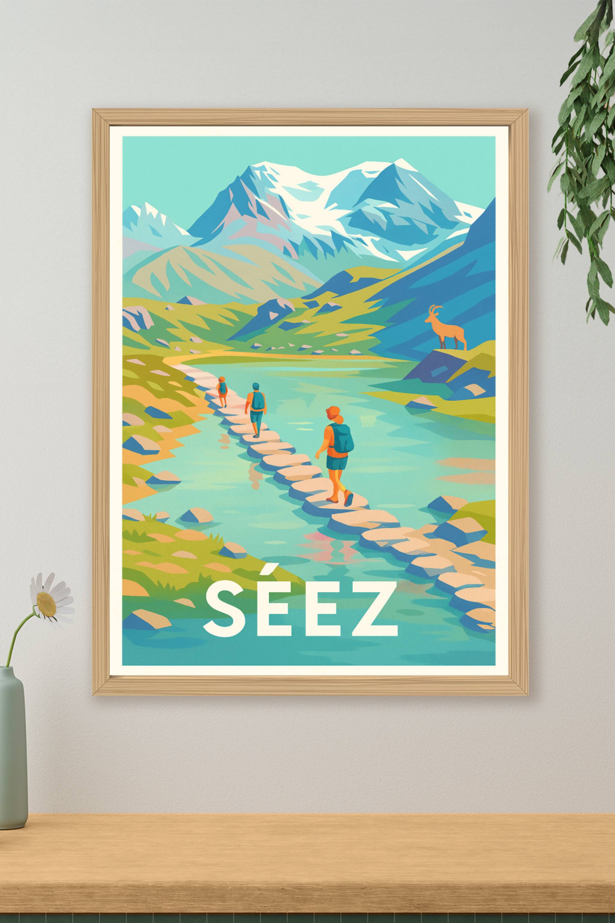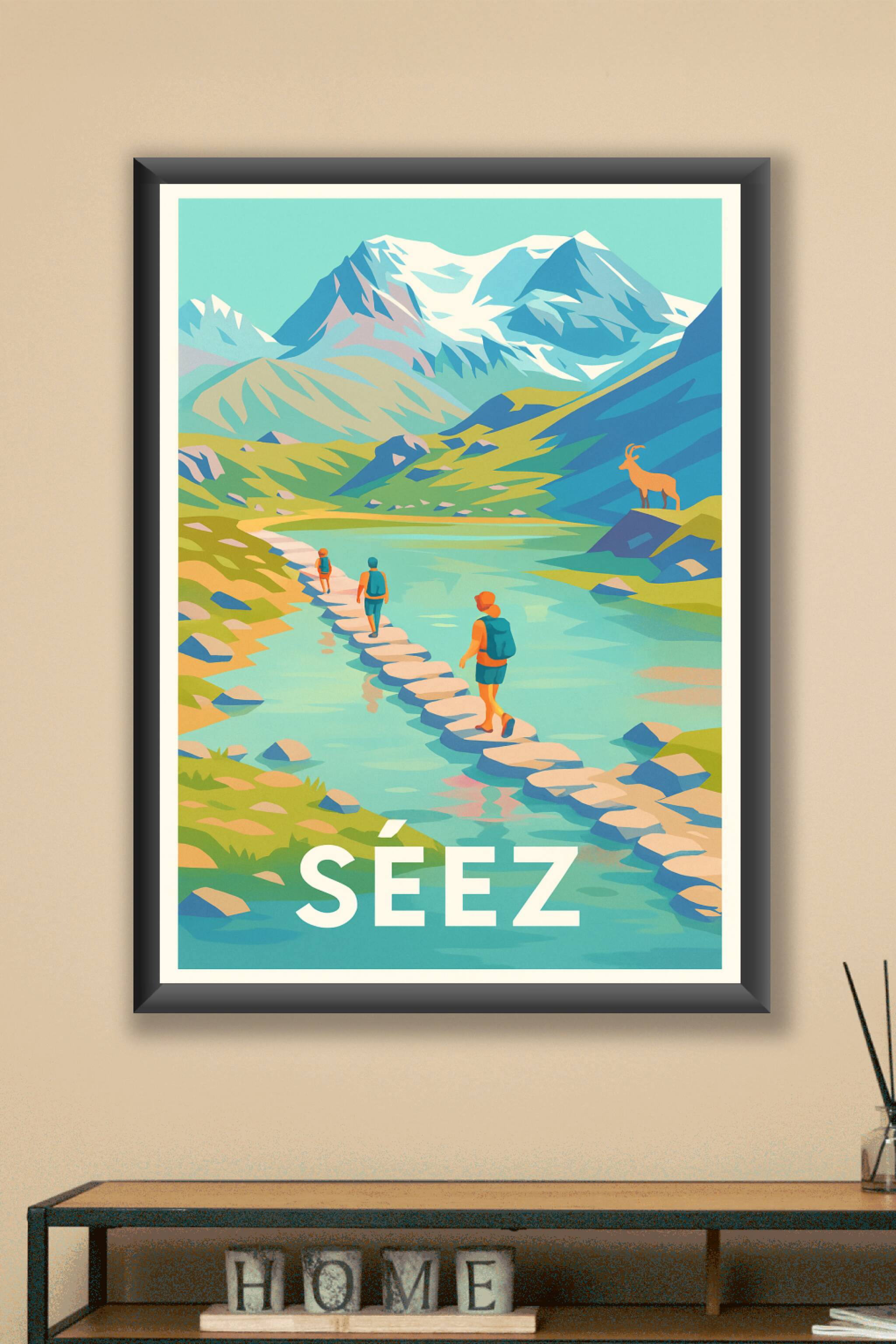 Offrez-vous une invitation au voyage avec ce poster évoquant la beauté sauvage et paisible de Séez, nichée au cœur des Alpes. Cette affiche met en ...