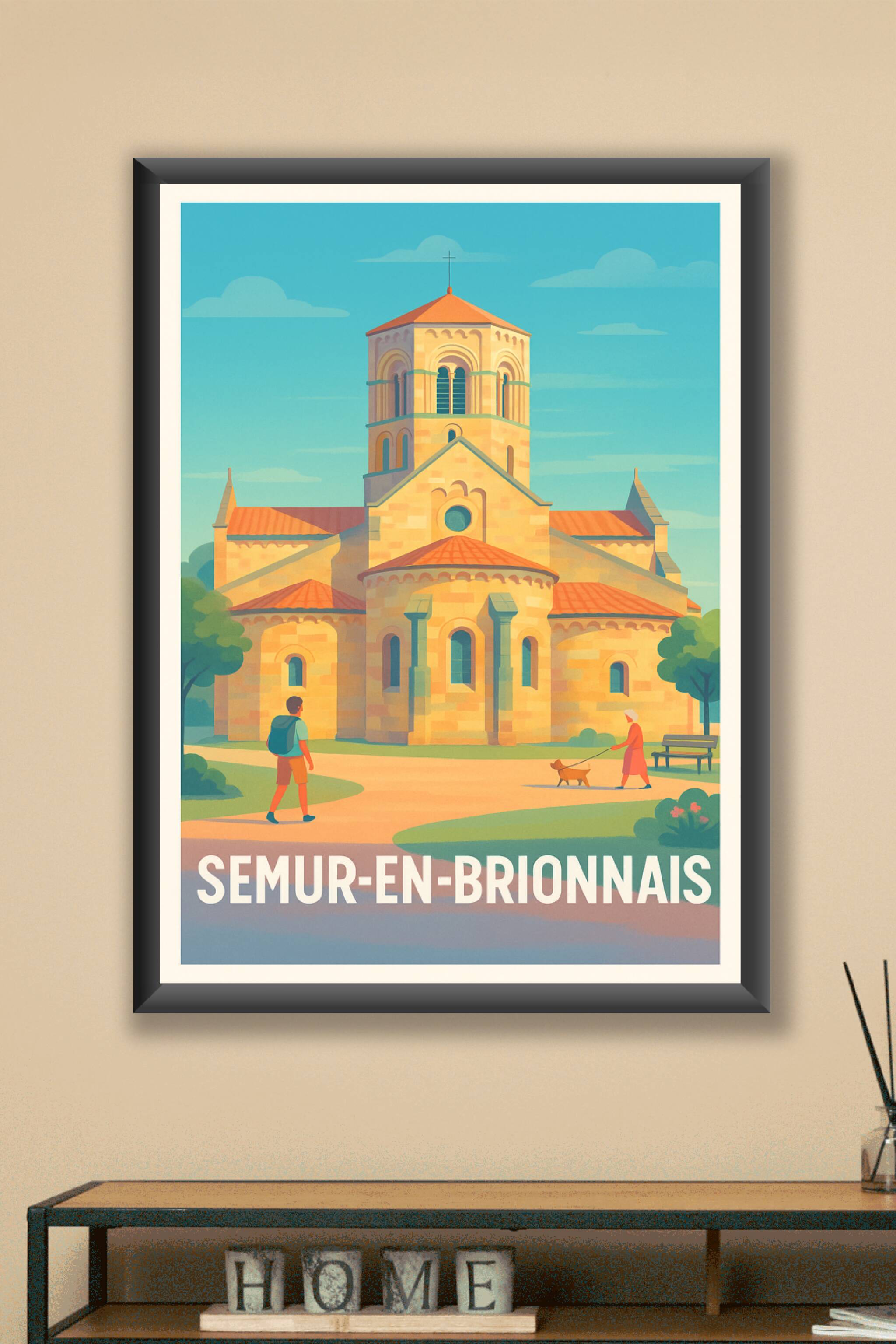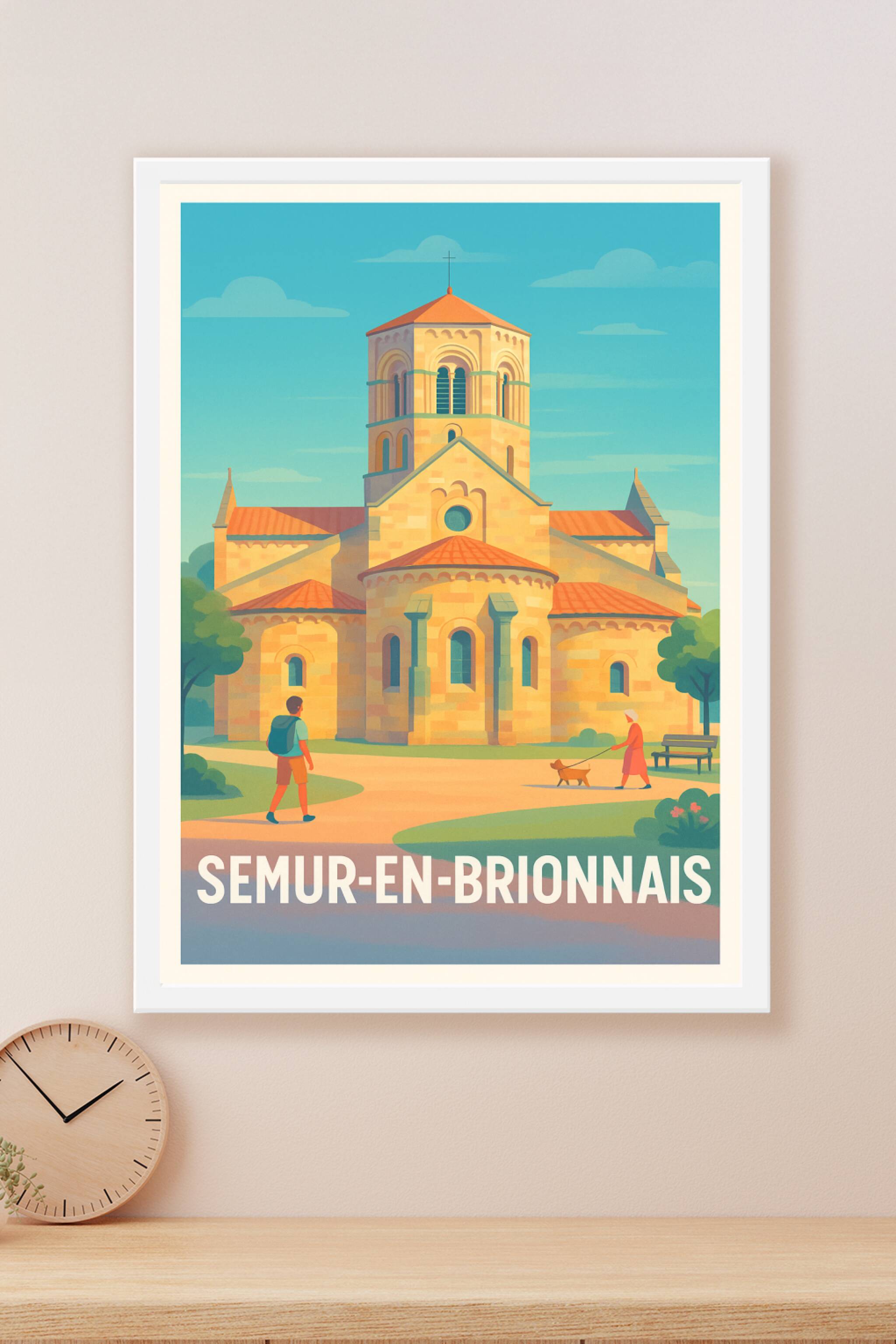 Découvrez le charme intemporel de Semur-en-Brionnais à travers cette affiche illustrée mettant en lumière son église romane emblématique baignée de...