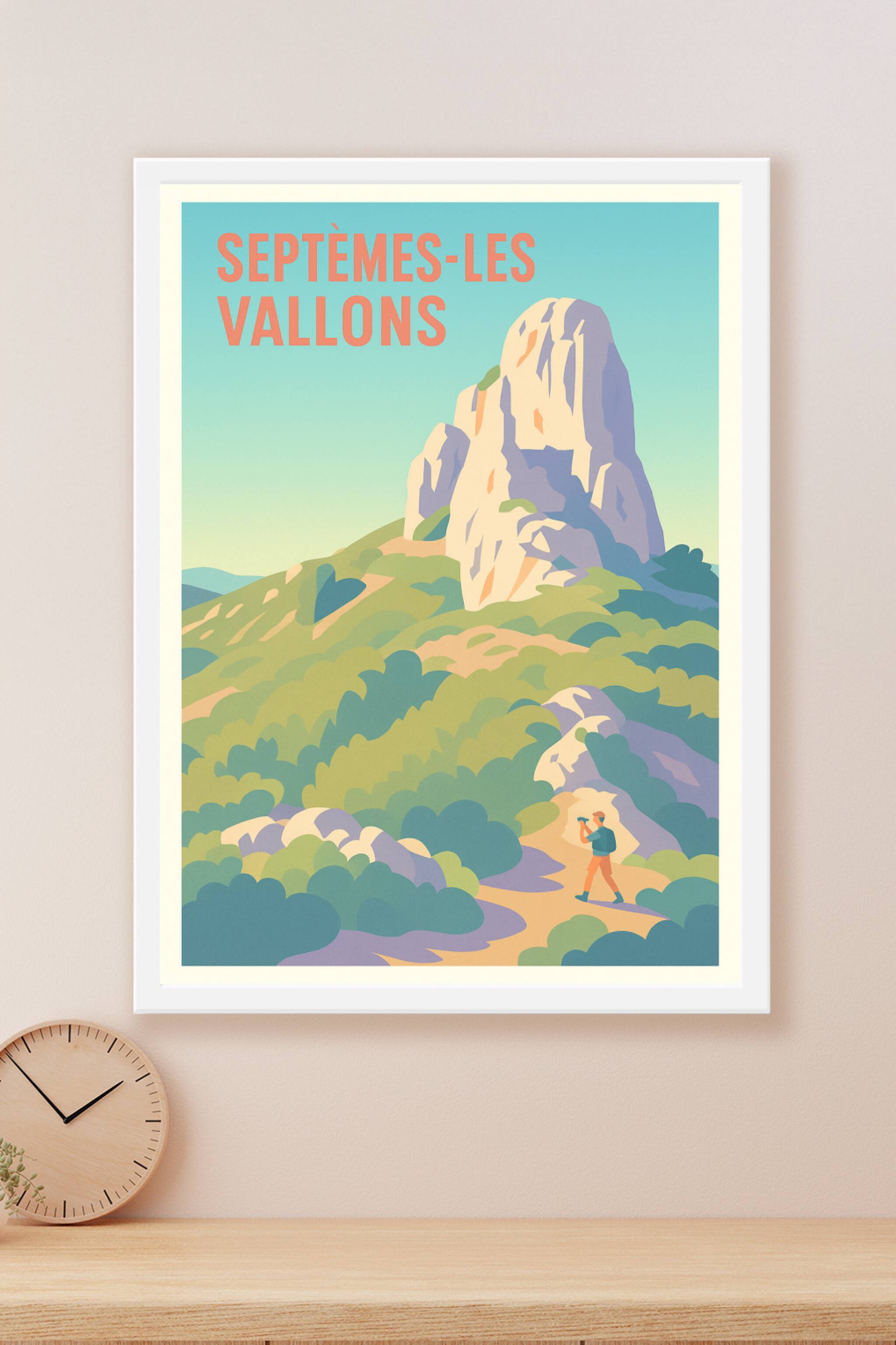 Découvrez la beauté naturelle et paisible de Septèmes-les-Vallons à travers ce poster au style vintage et aux couleurs douces et apaisantes. Cette ...