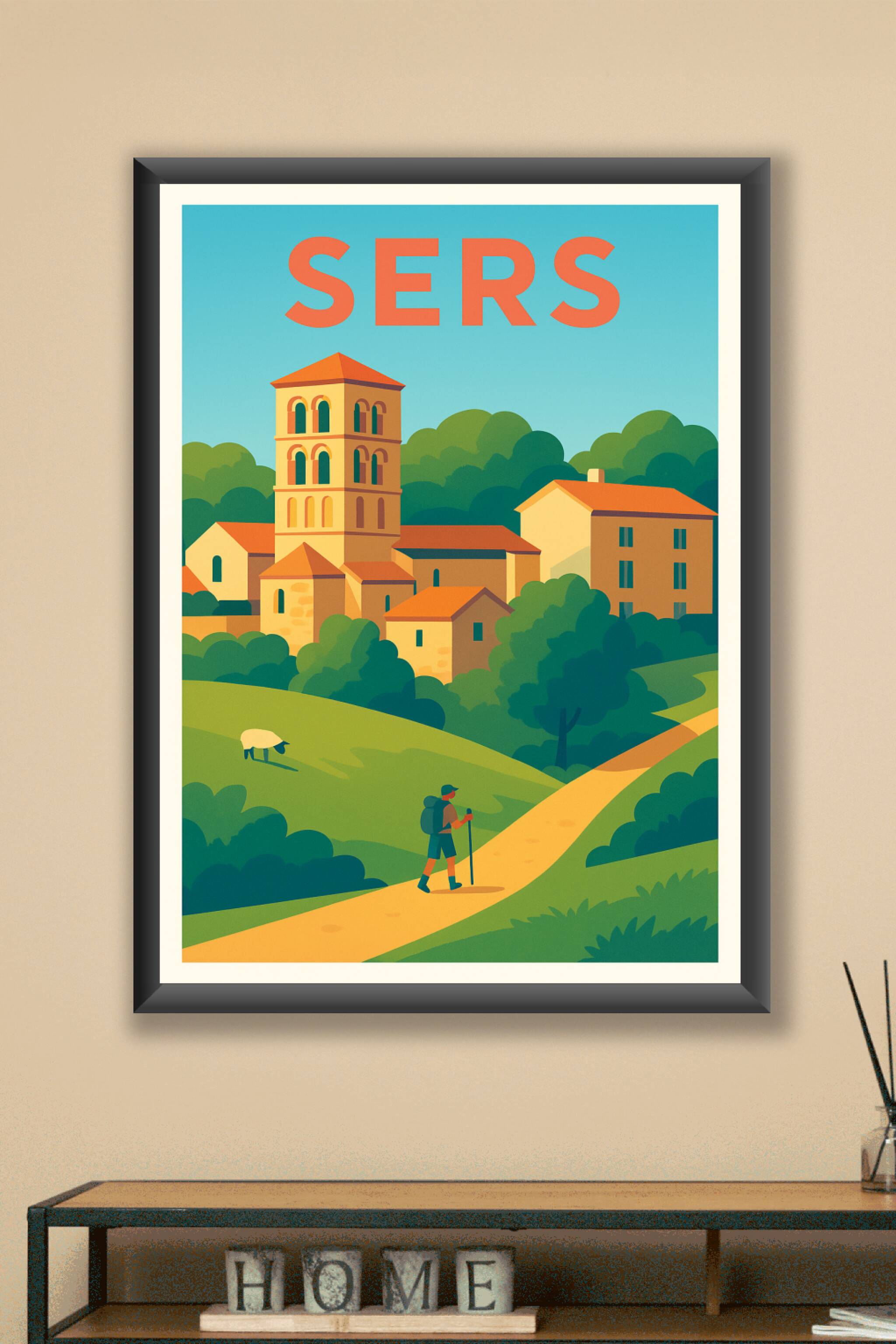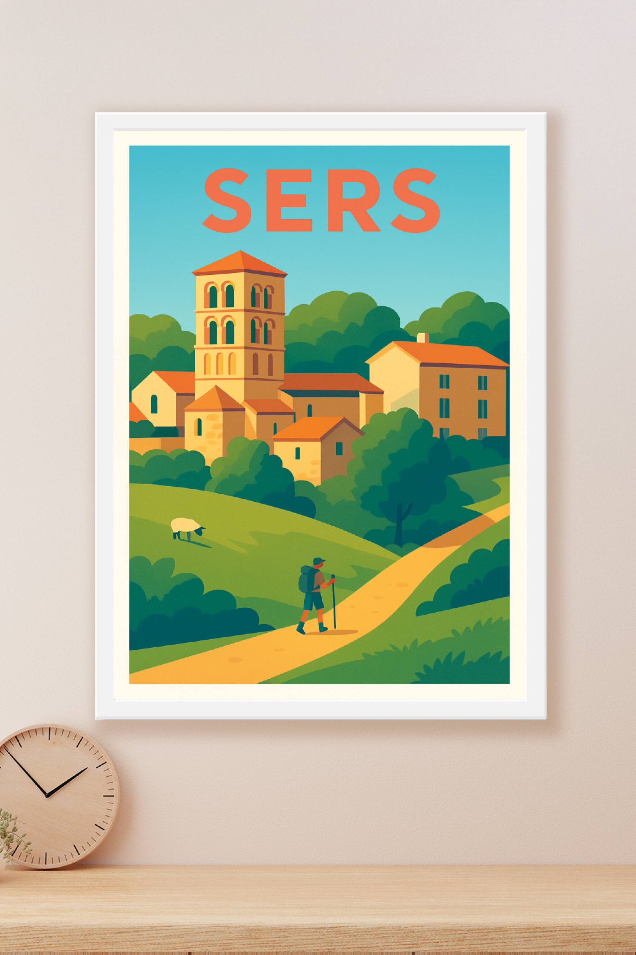 Découvrez l'élégance simple et accueillante de Sers à travers cette affiche illustrée, qui capture parfaitement l'atmosphère paisible de ce village...