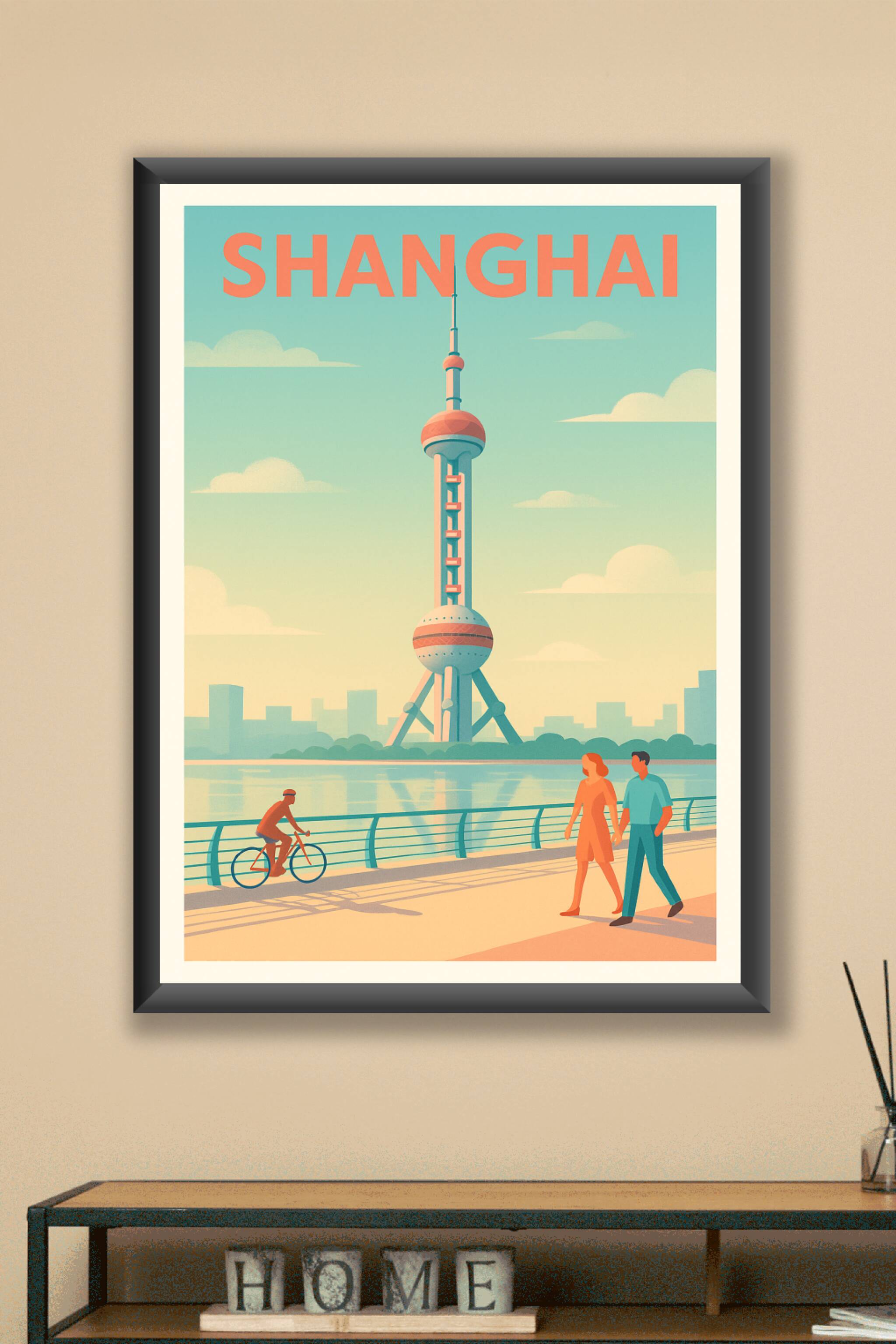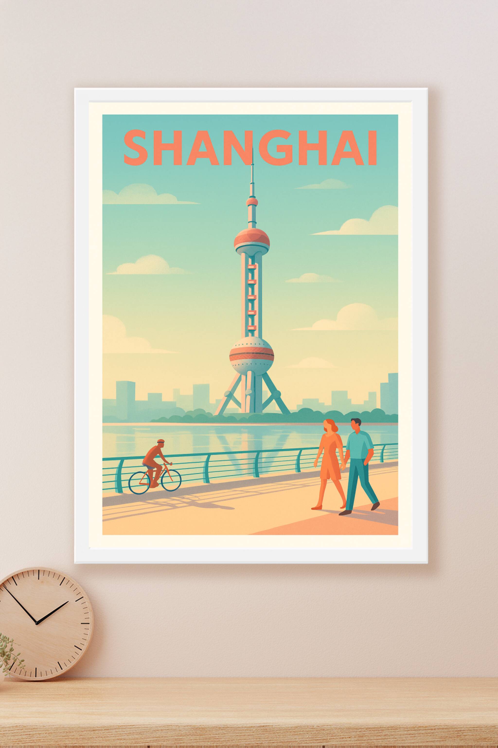 Découvrez l'élégance moderne de Shanghai avec cette affiche au design épuré mettant en avant la célèbre tour de la Perle de l'Orient, un symbole em...