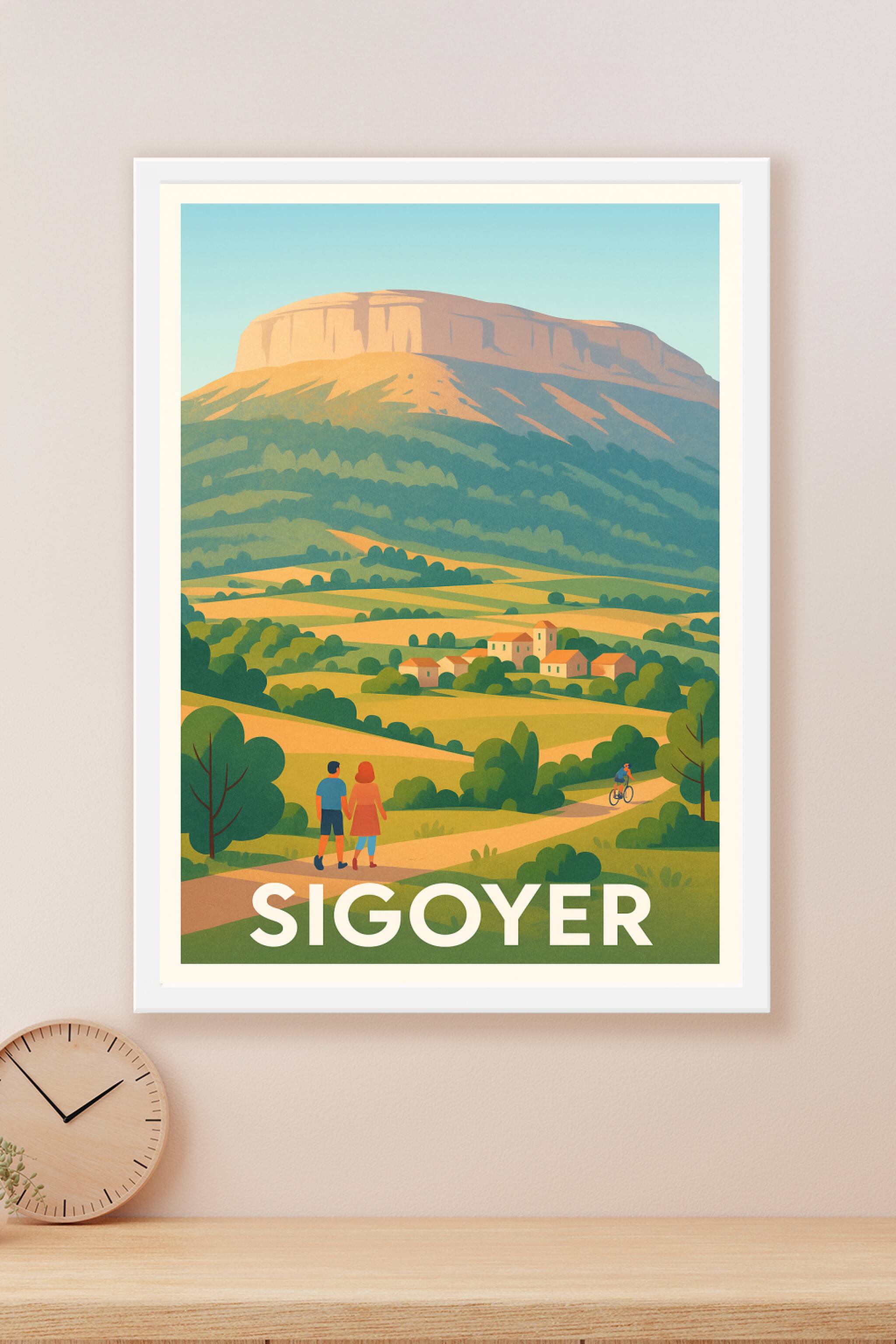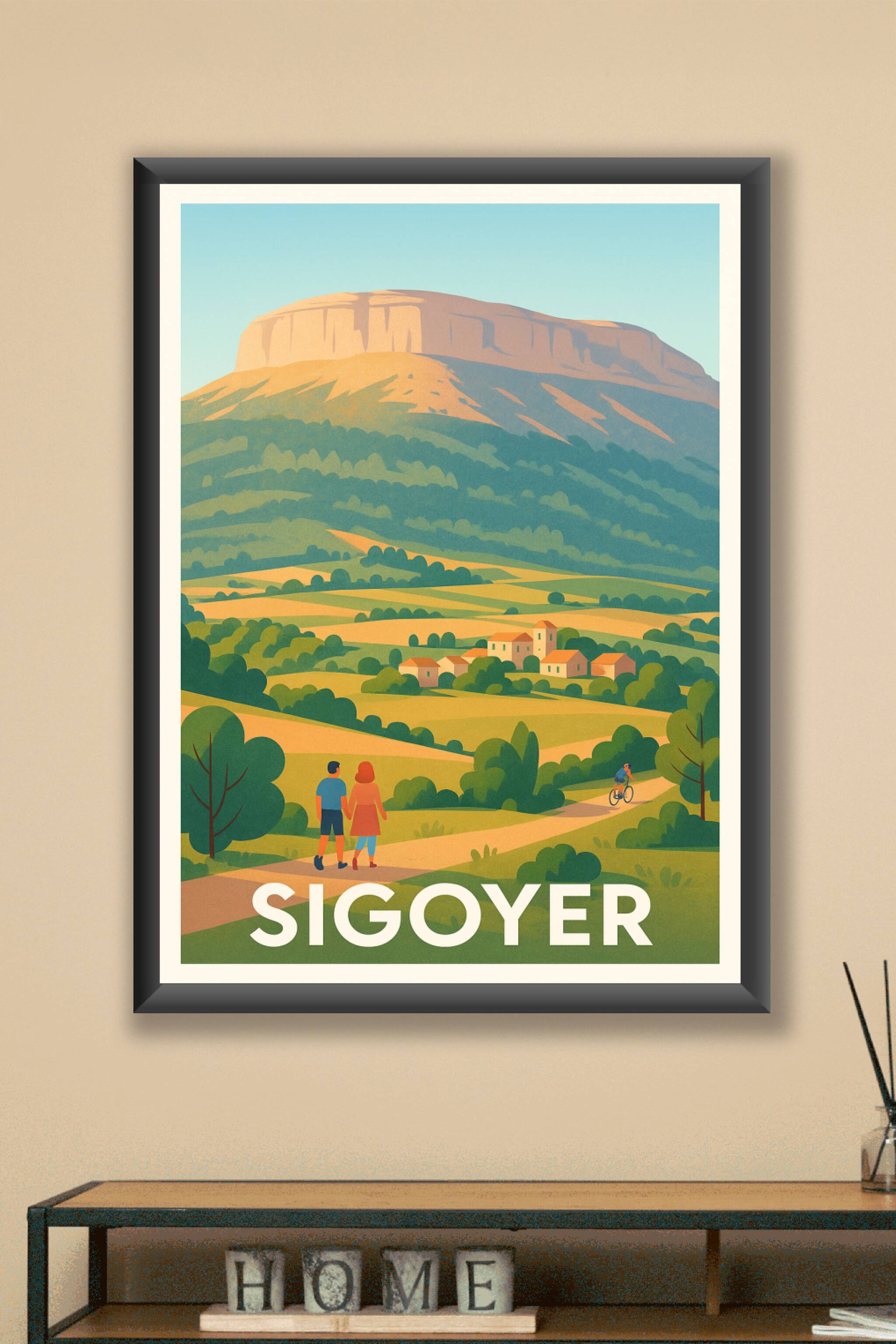 Découvrez la sérénité des paysages de Sigoyer à travers cette affiche au style vintage et chaleureux. L'illustration met en valeur les doux reliefs...