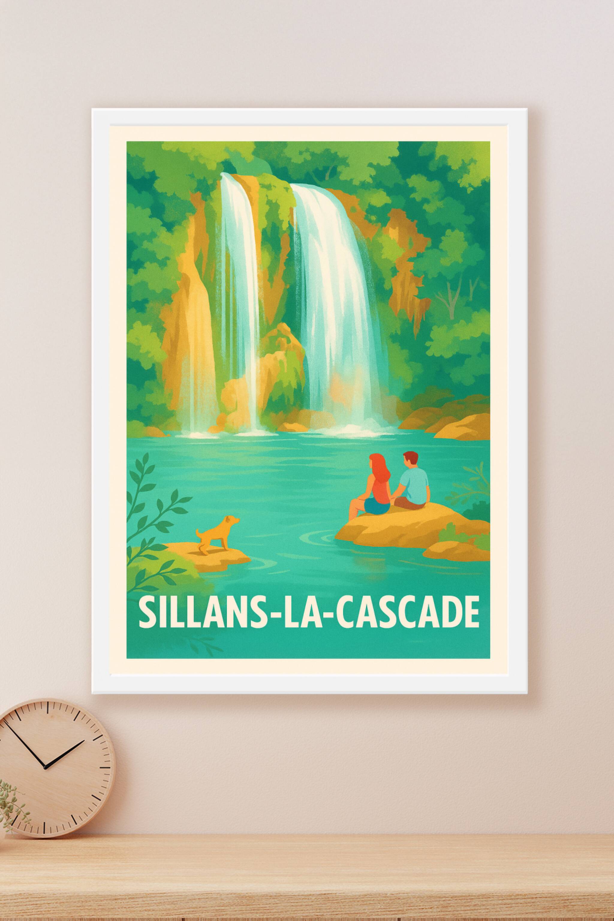 Découvrez la beauté sereine de Sillans-la-Cascade avec cette affiche illustrée, qui capture la majesté de ses cascades et la quiétude de son bassin...