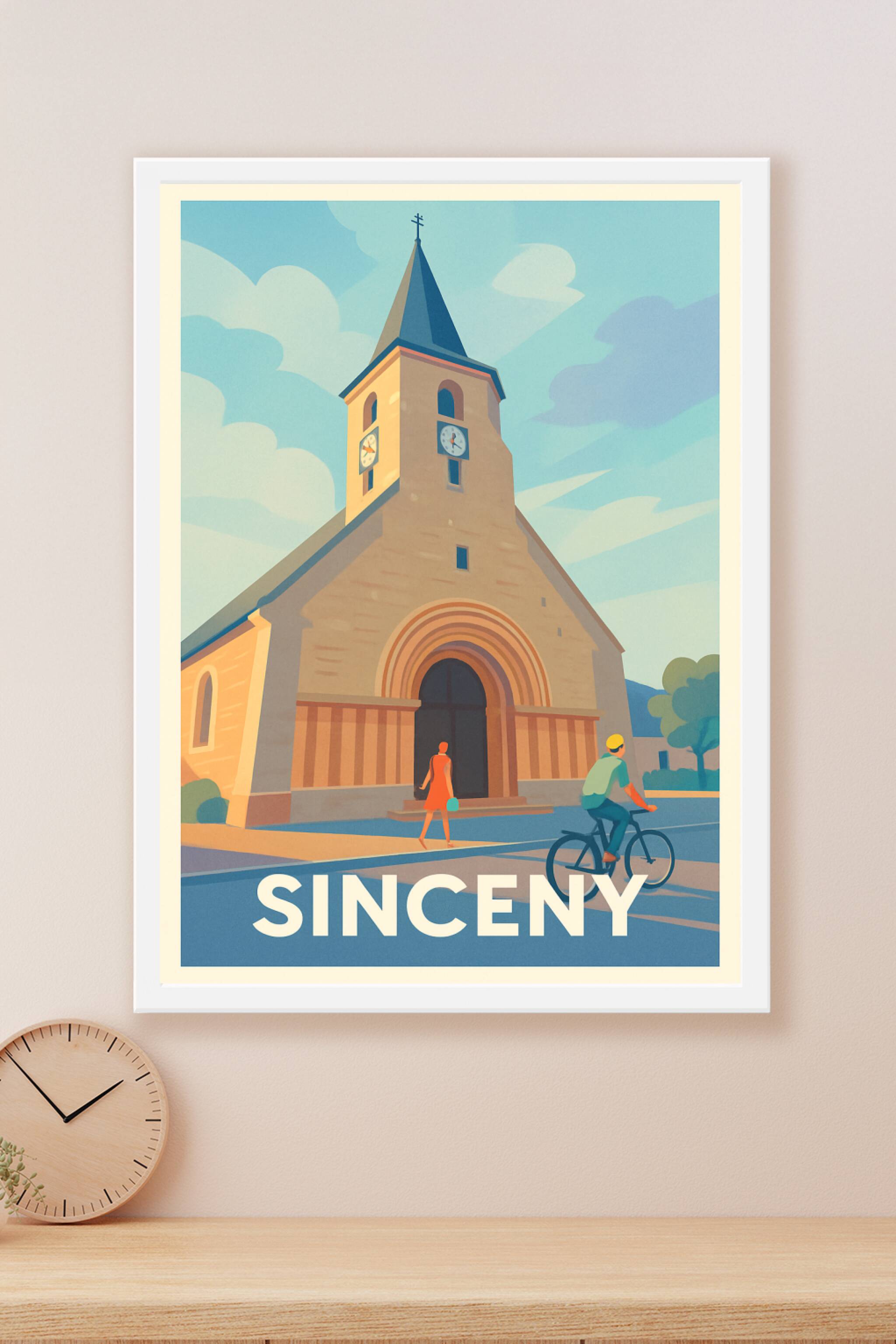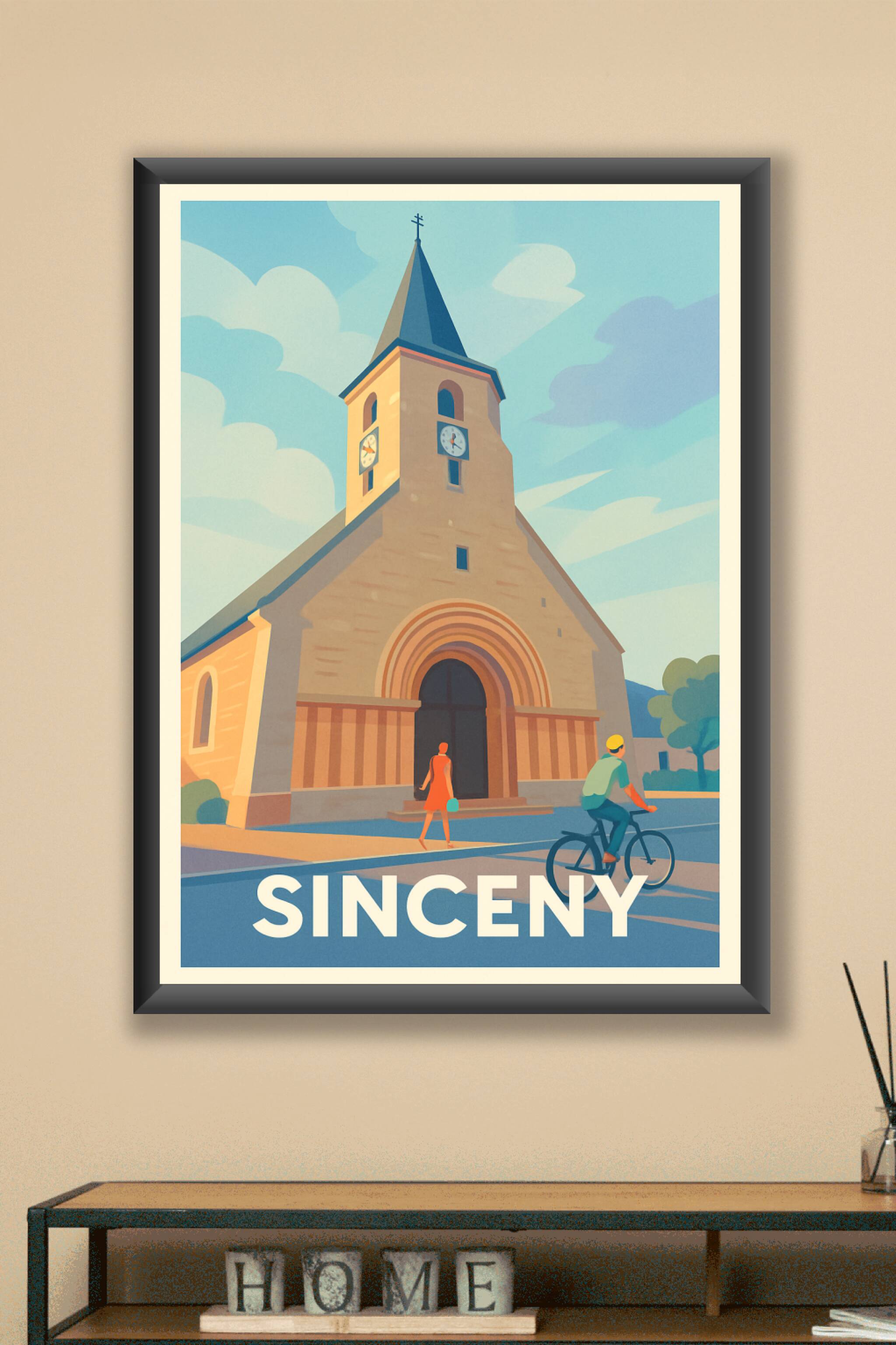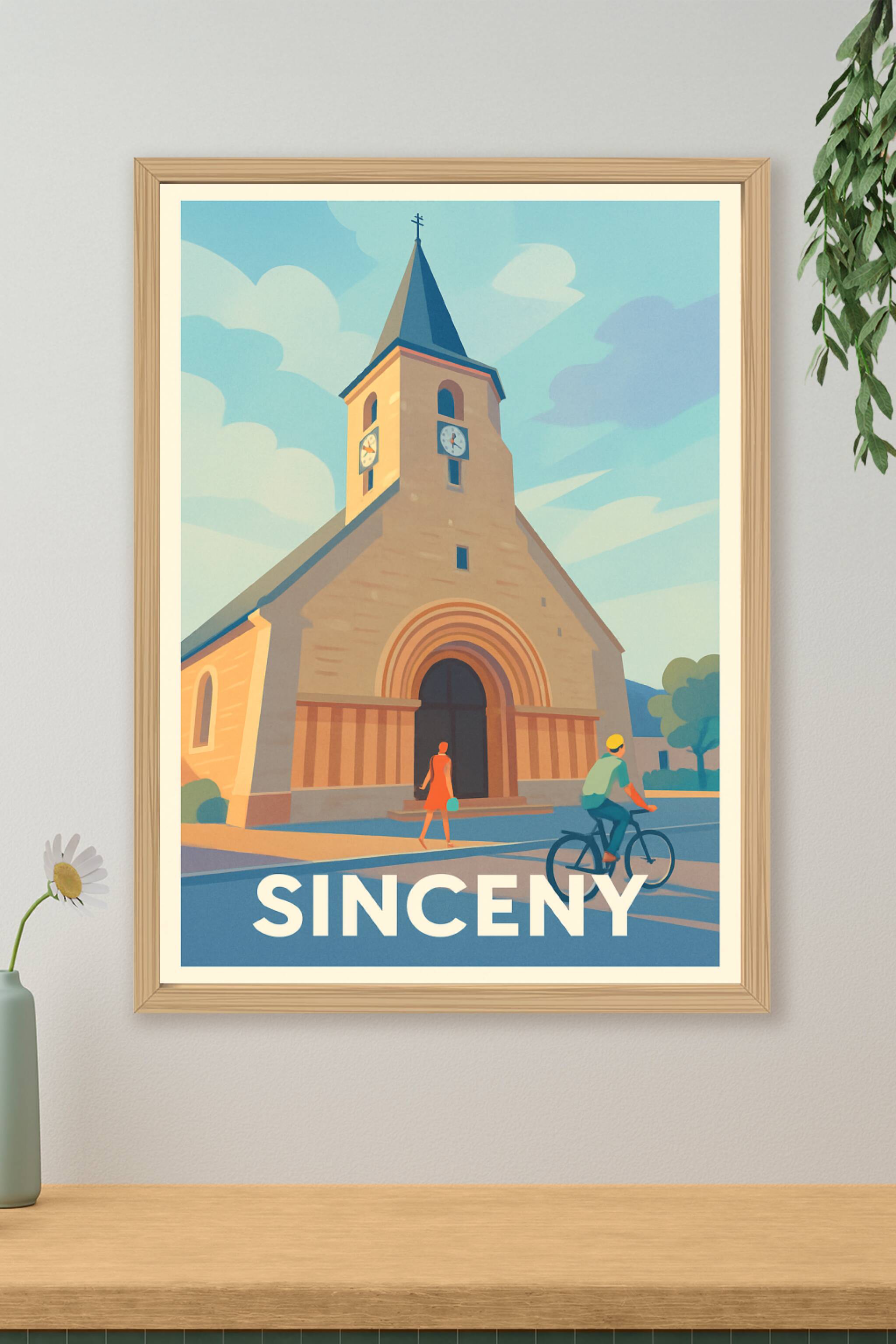 Découvrez la tranquillité et le charme intemporel de Sinceny à travers cette affiche au style graphique épuré. Le poster met en avant l’église embl...