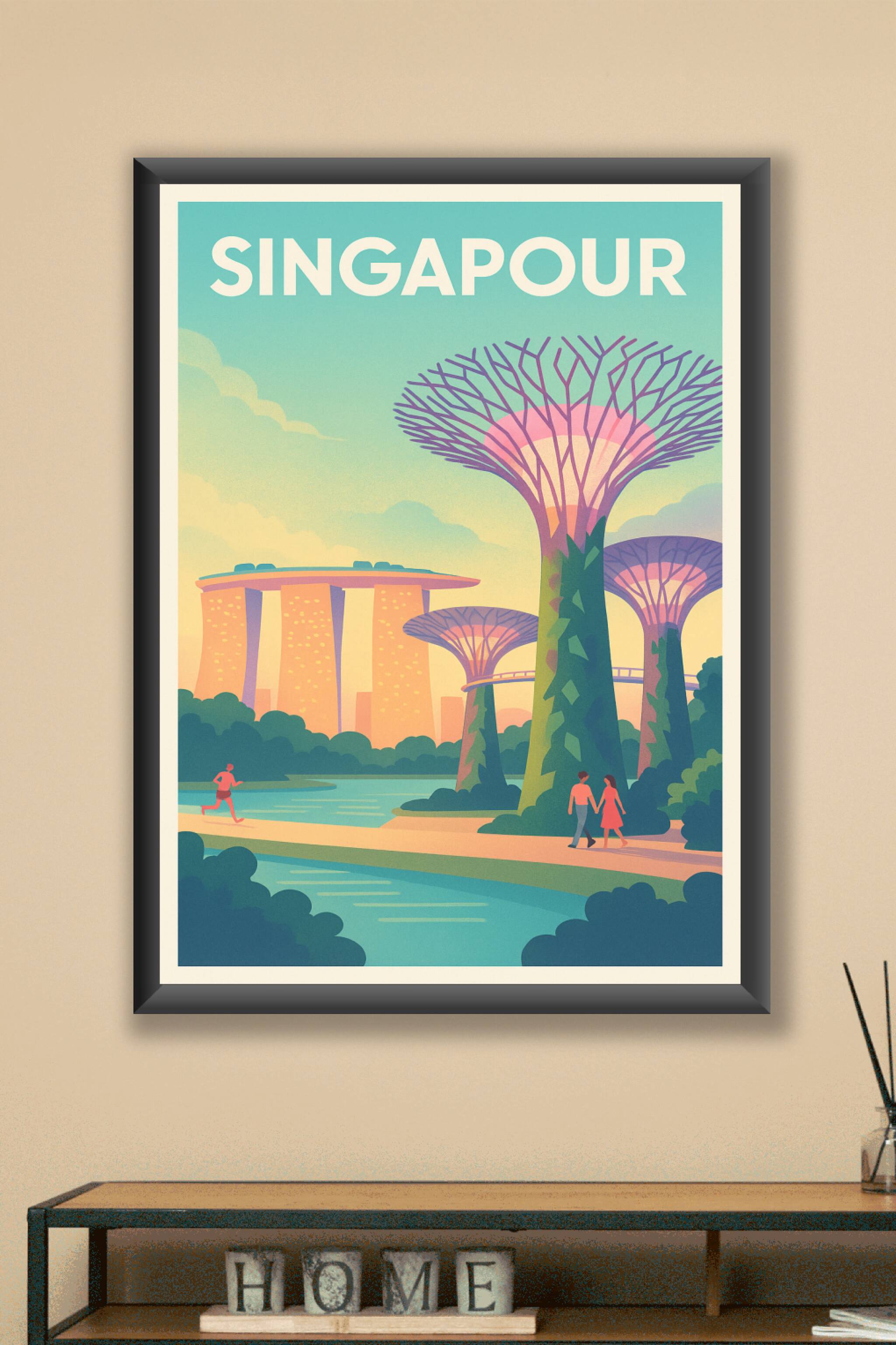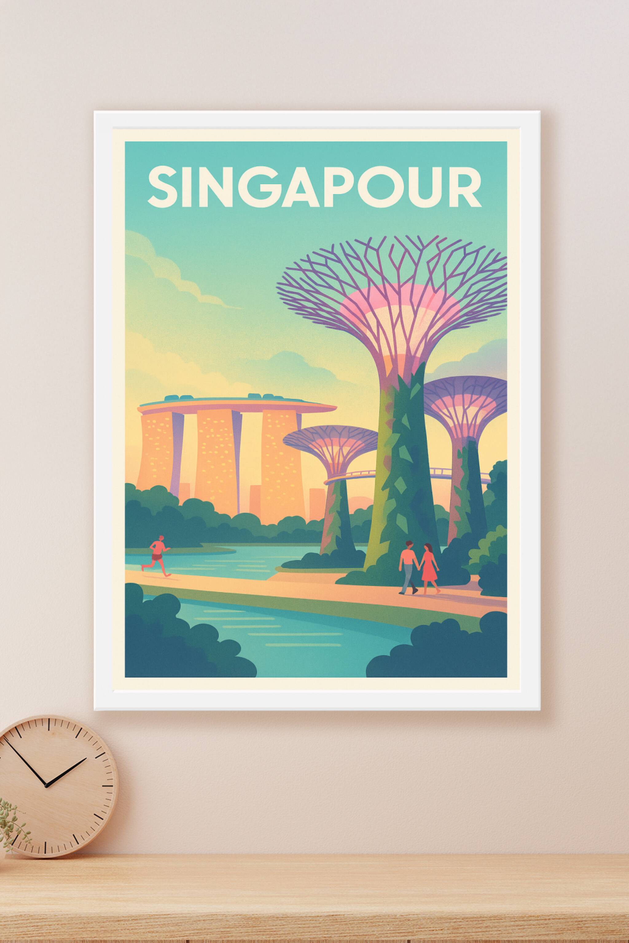 Découvrez l'équilibre parfait entre modernité et nature avec cette affiche illustrée de Singapour, mettant en scène les emblématiques Supertrees de...