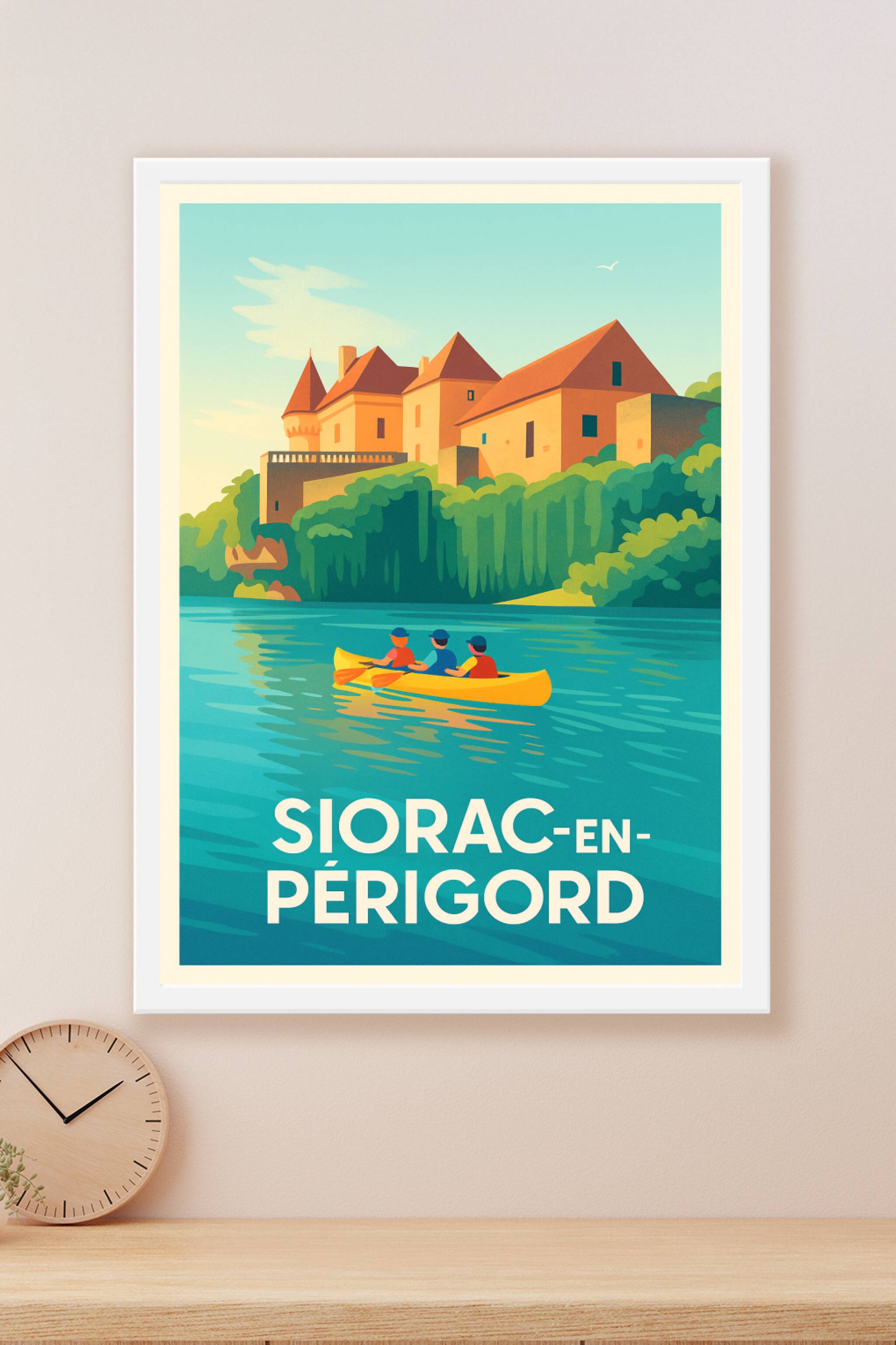 Découvrez la sérénité de Siorac-en-Périgord avec cette affiche illustrée mettant en scène un paysage emblématique où se mêlent histoire et nature. ...