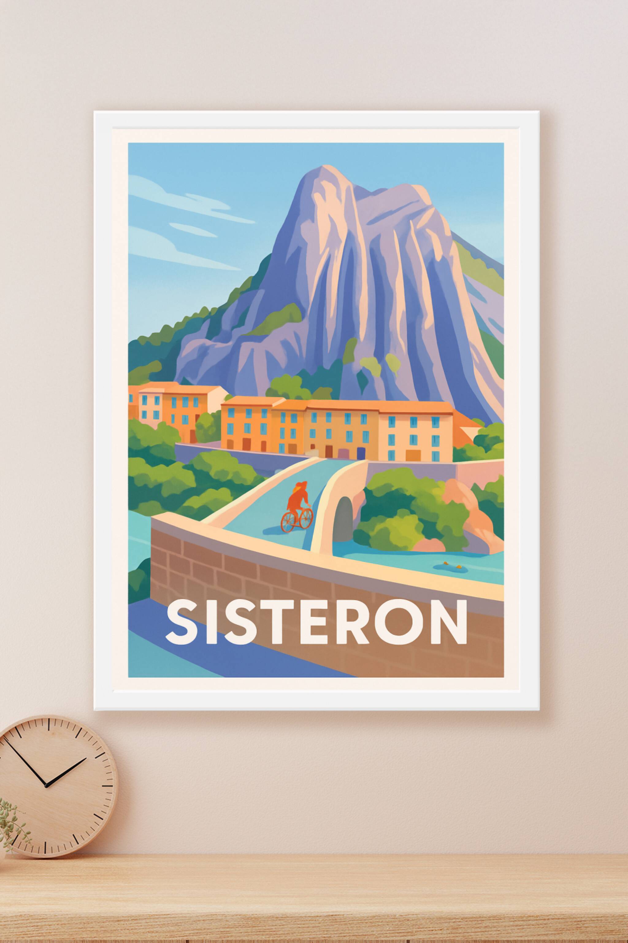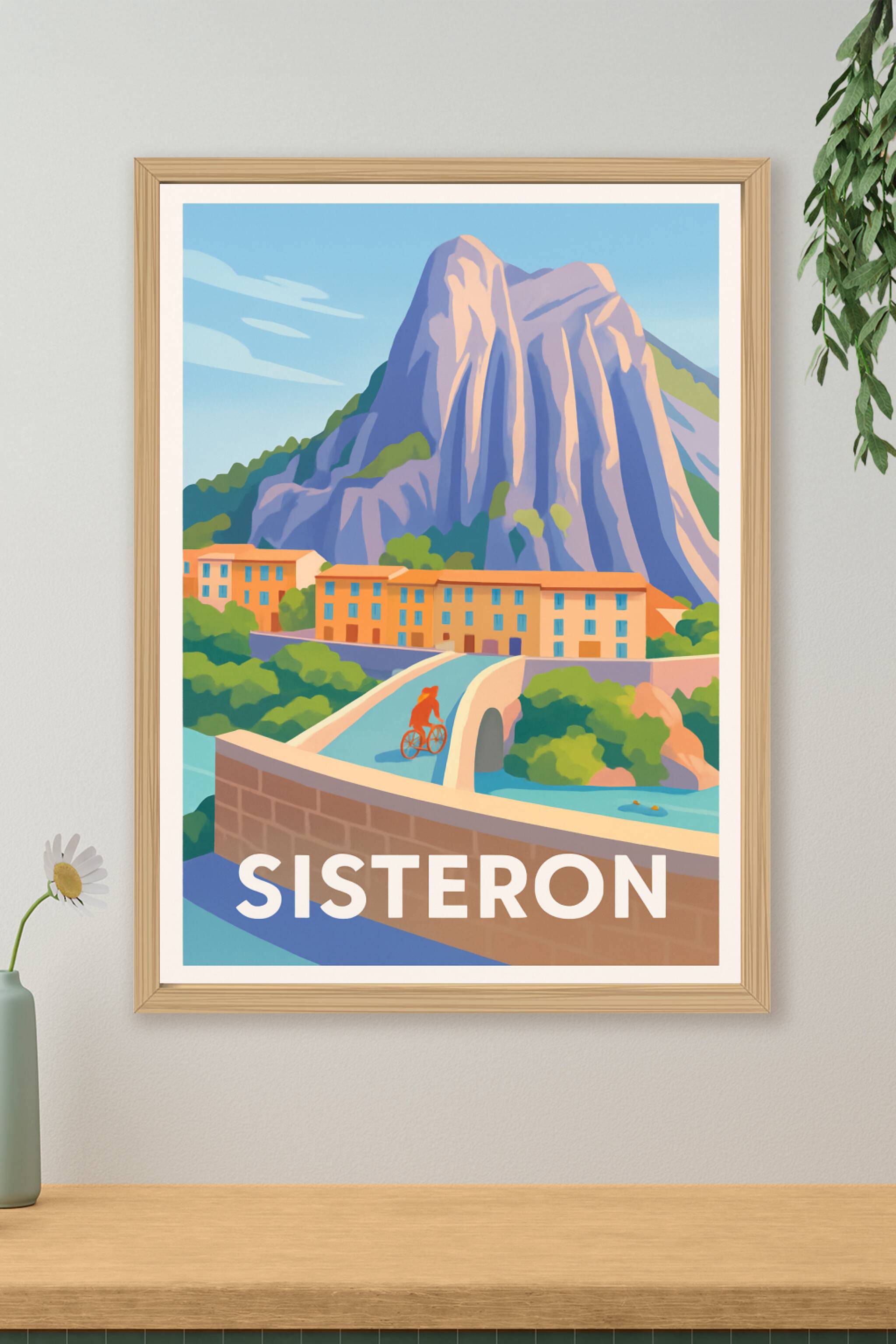 Découvrez la beauté naturelle et architecturale de Sisteron avec cette affiche illustrée aux couleurs douces et lumineuses, mettant en scène les célèbres falaises rocheuses et le pont emblématique de la ville. Ce poster est un hommage à cette destination unique surnommée la 'porte des Alpes', idéale pour apporter une touche de fraîcheur et de sérénité à votre décoration intérieure. Imprimée en tirage "Fine Art" sur papier 305g coton, cette affiche garantit une qualité d'impression exceptionnelle et une durabilité remarquable. Disponible en plusieurs formats A1 à A4, avec ou sans cadre, elle s'adapte parfaitement à tous les espaces et styles. Apportez à votre intérieur une ambiance provençale authentique grâce à ce poster premium, 100% fabriqué en France.