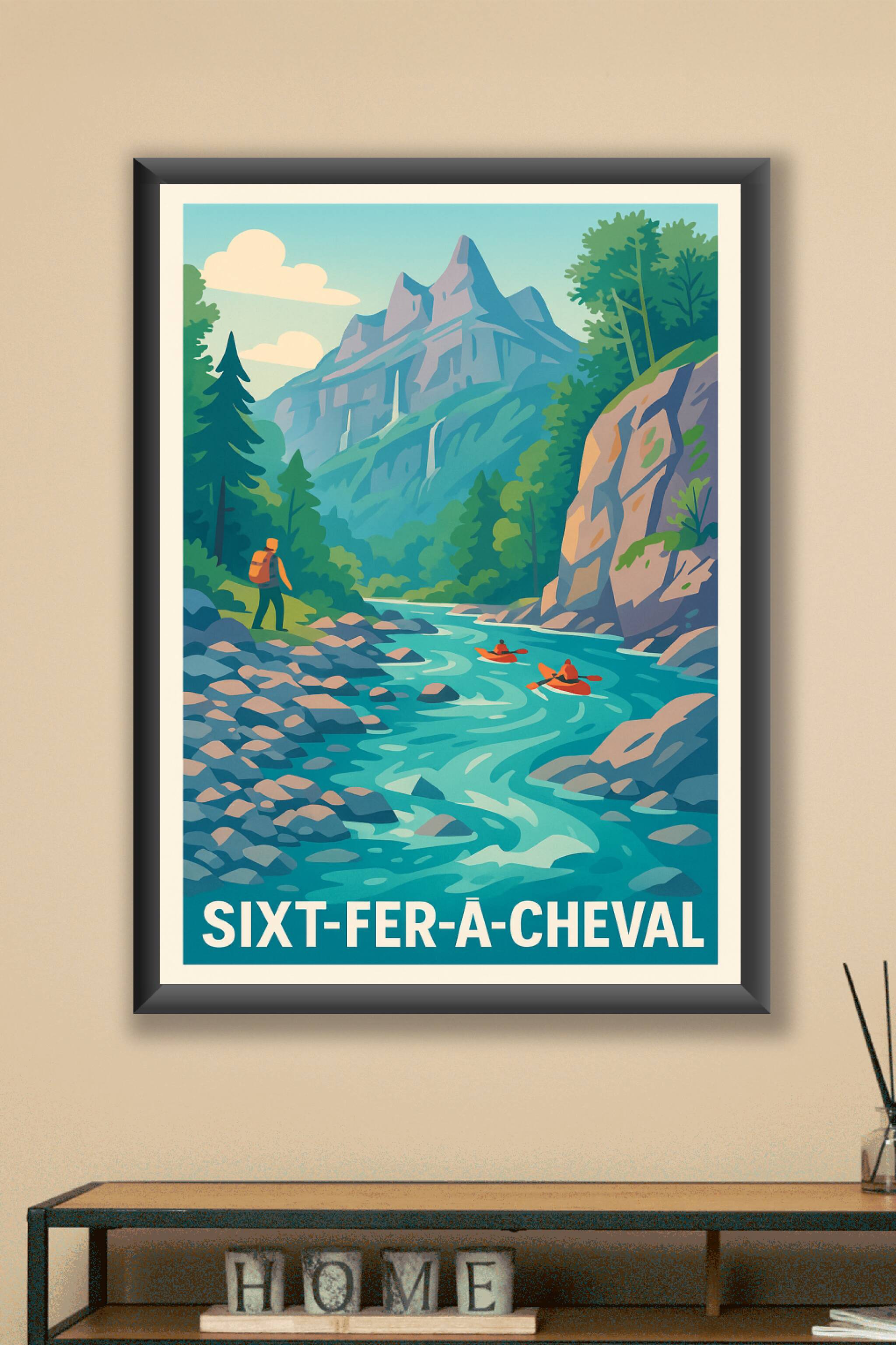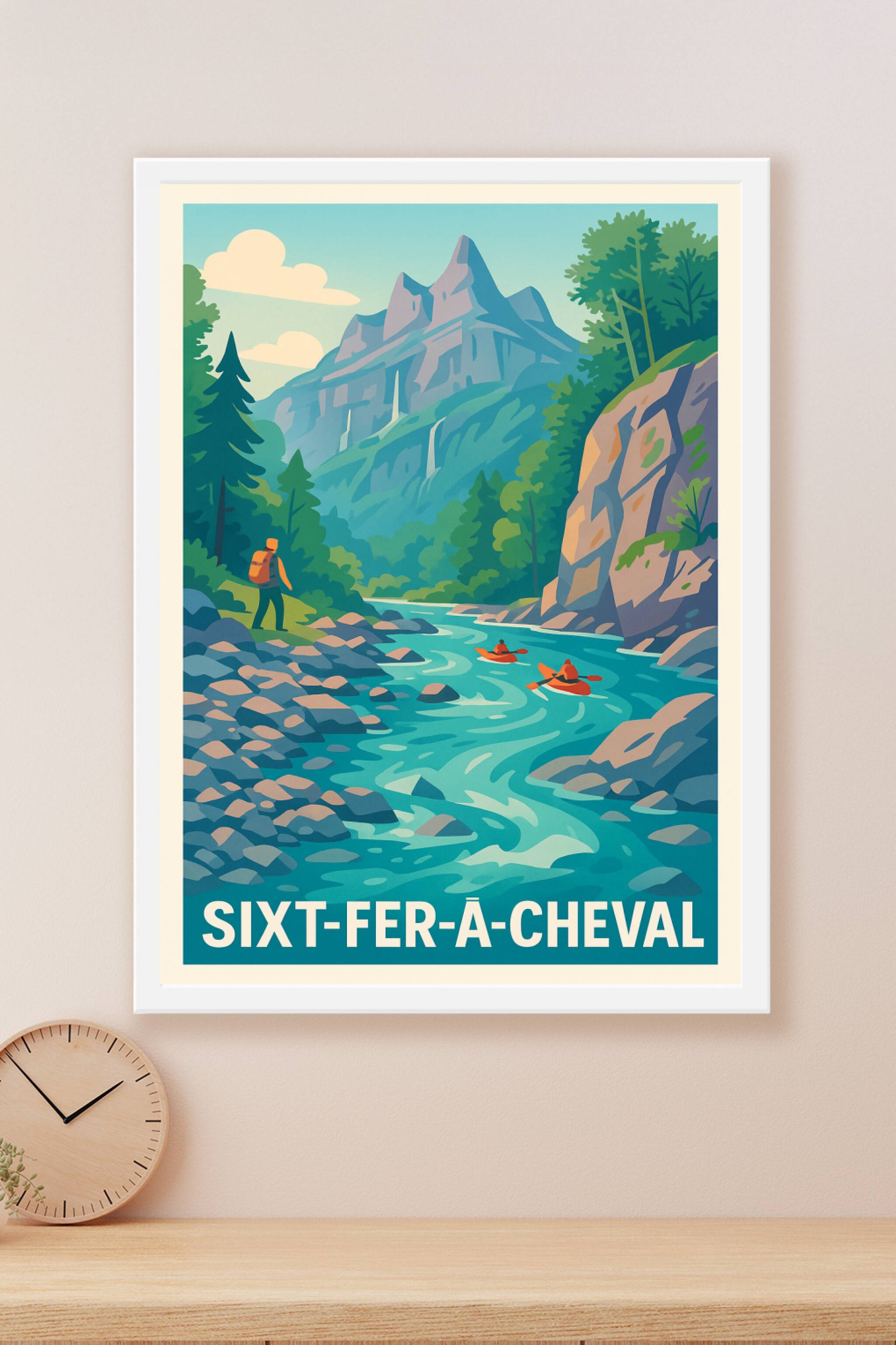 Découvrez la beauté spectaculaire de Sixt-Fer-à-Cheval à travers cette affiche vibrante qui capture la force de ses montagnes, la tranquillité de s...