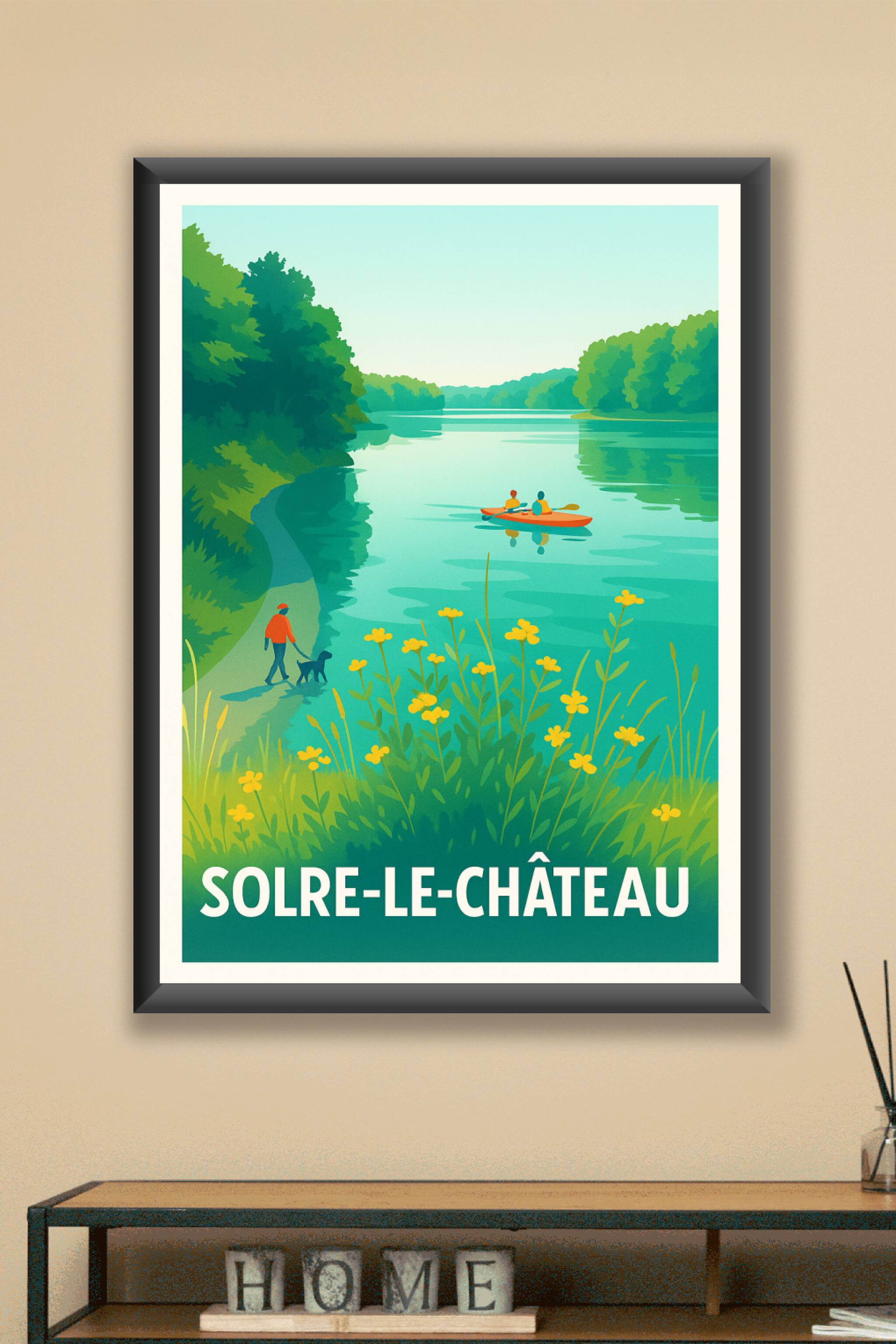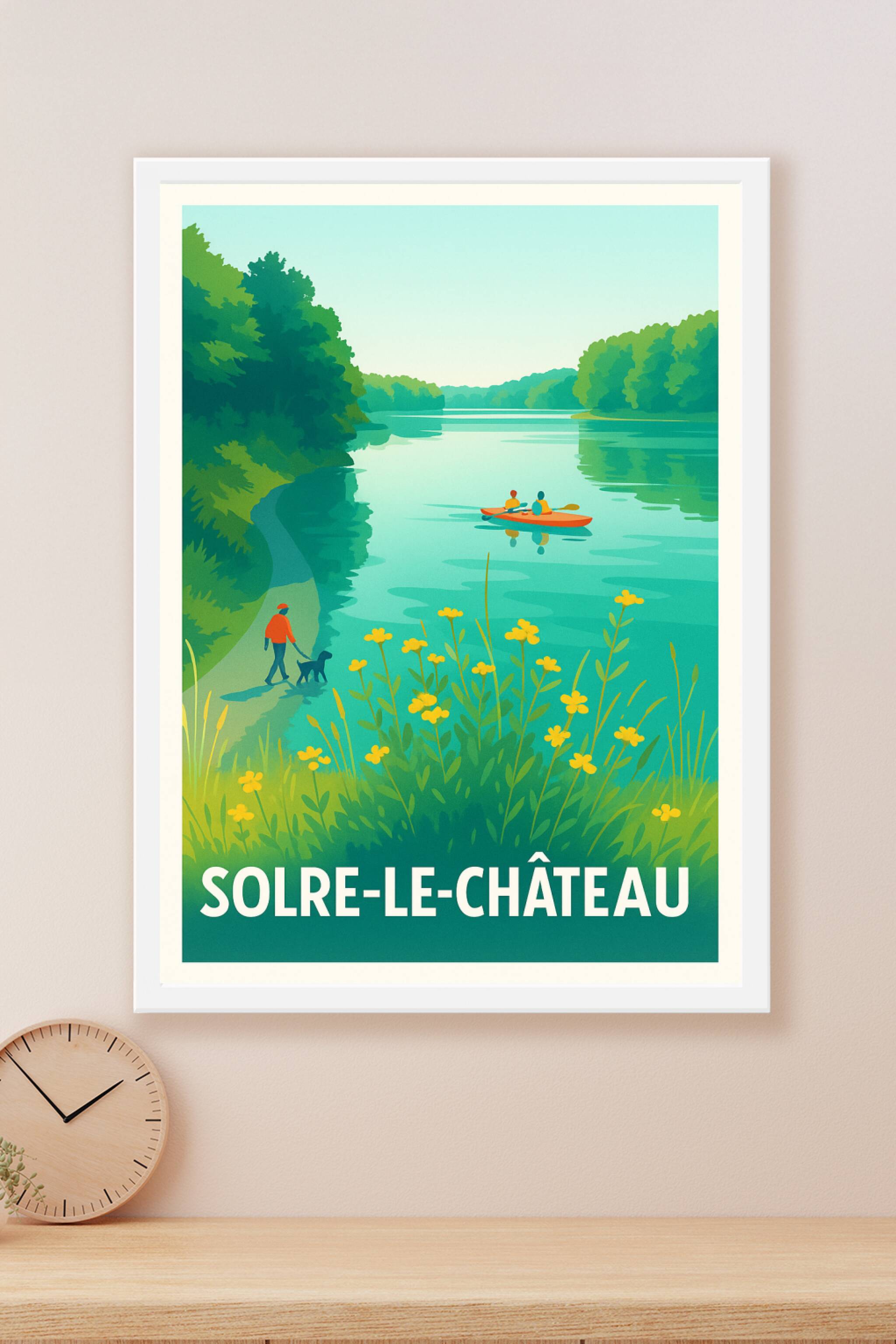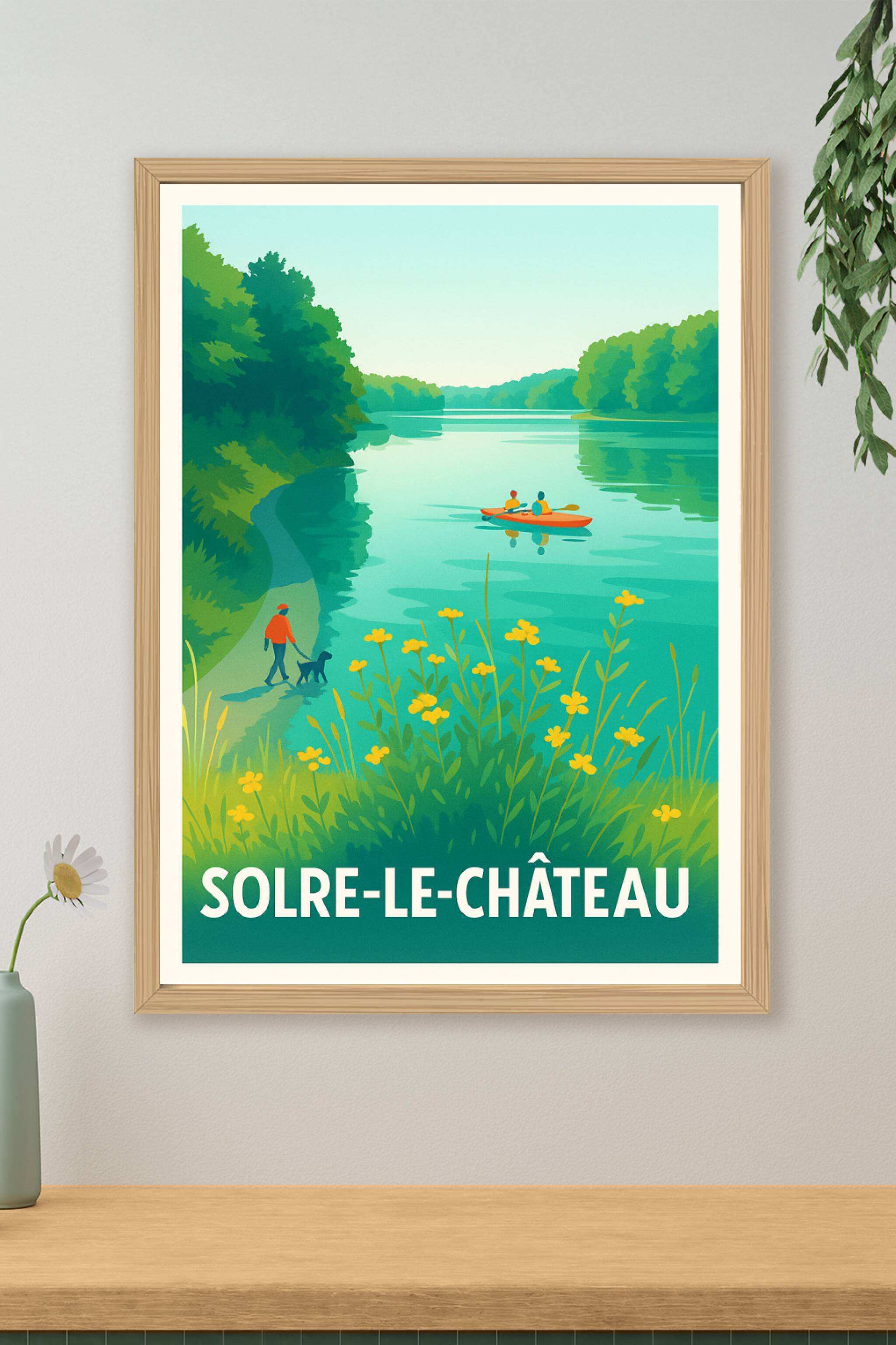 Découvrez la quiétude et la beauté naturelle de Solre-le-Château à travers cette affiche illustrée aux couleurs apaisantes. Ce poster invite à la détente en évoquant une balade au bord de l'eau, entre kayak et promenade ombragée entourée de végétation luxuriante.Ce tirage "Fine Art" est imprimé sur un papier coton 305g de haute qualité, garantissant des couleurs éclatantes et une durabilité optimale. Disponible en formats A1 à A4, avec ou sans cadre, cette affiche apportera une touche fraîche et vivifiante à votre décoration intérieure. Offrez-vous ou à vos proches un souvenir élégant et naturel avec ce poster 100% fabriqué en France.
