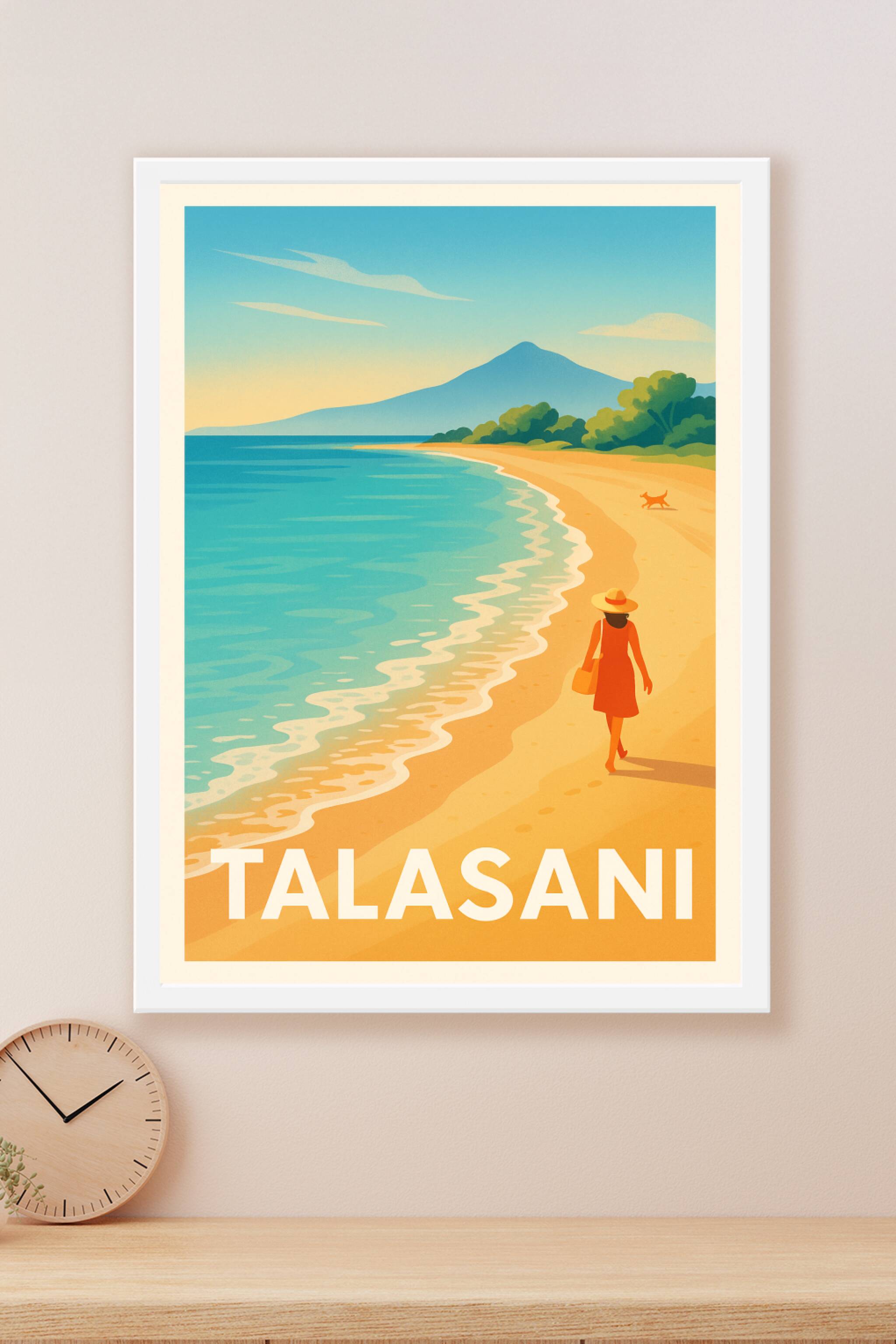 Découvrez le charme apaisant de Talasani avec cette affiche vintage qui capture la beauté dorée de ses plages corses. Cette illustration met en scène une balade tranquille au bord de l'eau, sous un ciel aux douces nuances pastel. Ce poster est imprimé en tirage "Fine Art" sur papier coton 305g, garantissant une qualité d'impression irréprochable et des couleurs vibrantes. Disponible en formats A1 à A4, avec ou sans cadre, cette affiche apportera une touche méditerranéenne et une atmosphère relaxante à votre décoration intérieure. Faites entrer la magie de Talasani dans votre maison grâce à ce tirage premium 100% fabriqué en France, idéal pour embellir votre espace ou offrir un cadeau unique.