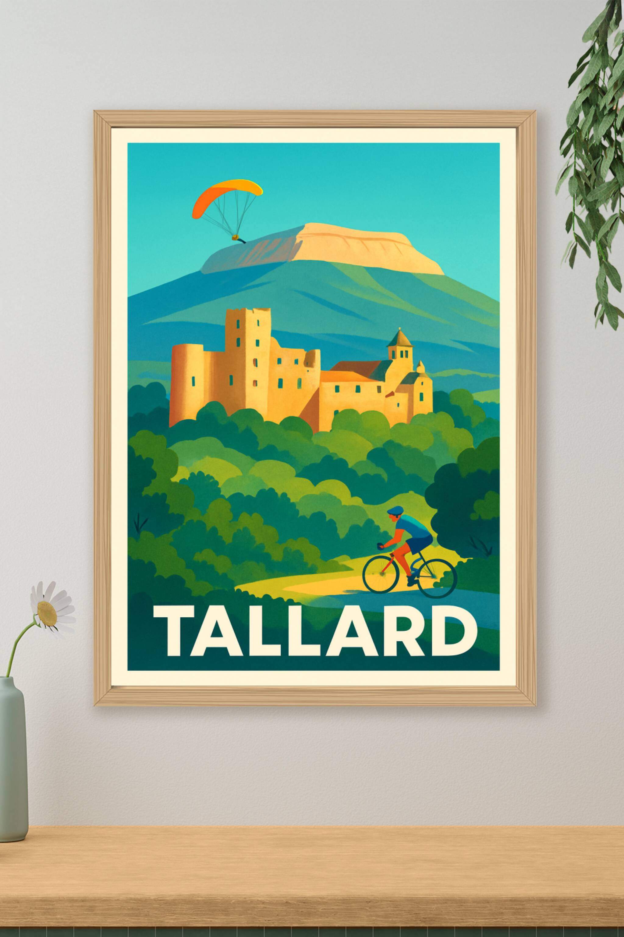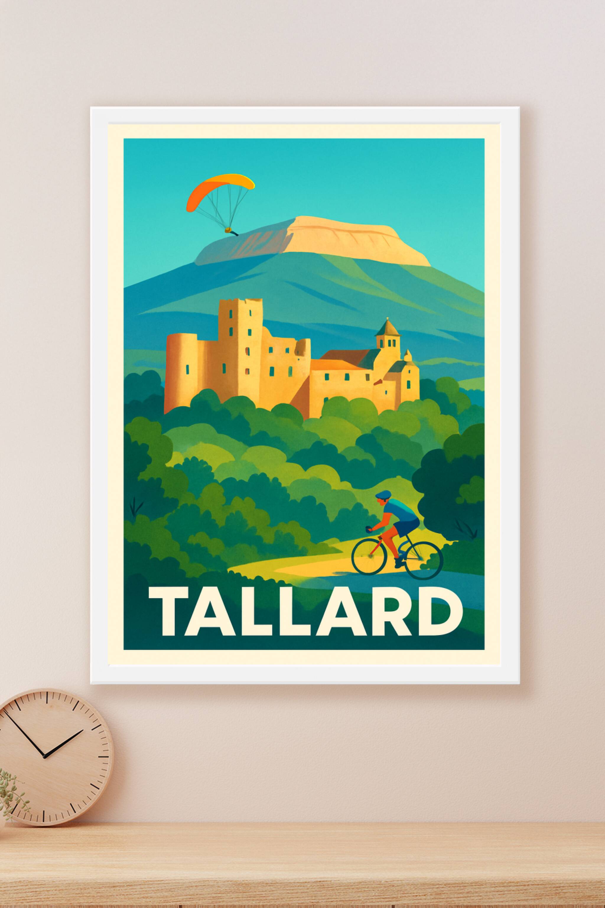 Découvrez Tallard à travers cette affiche aux couleurs éclatantes qui met en lumière son château emblématique et les activités de plein air, avec u...