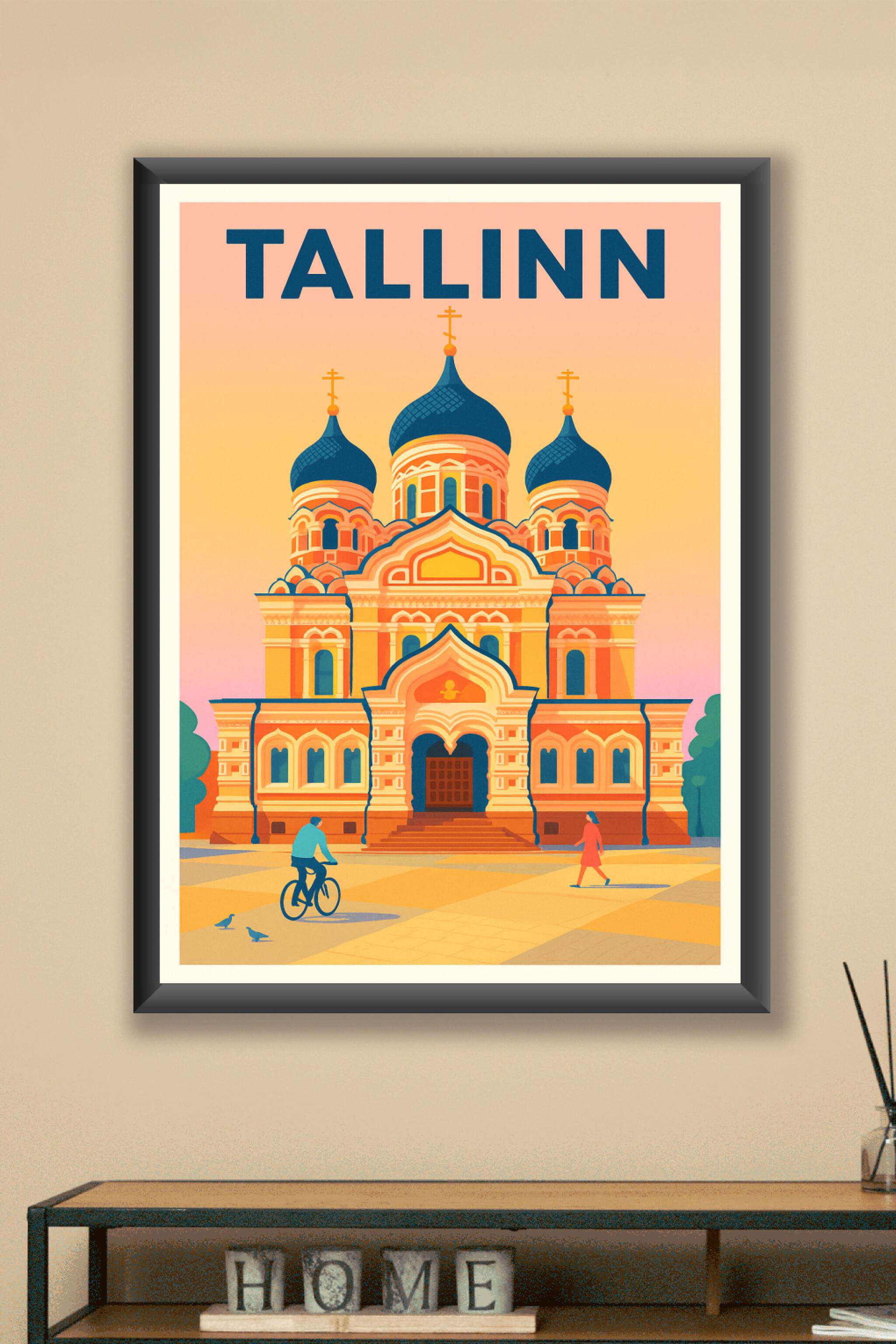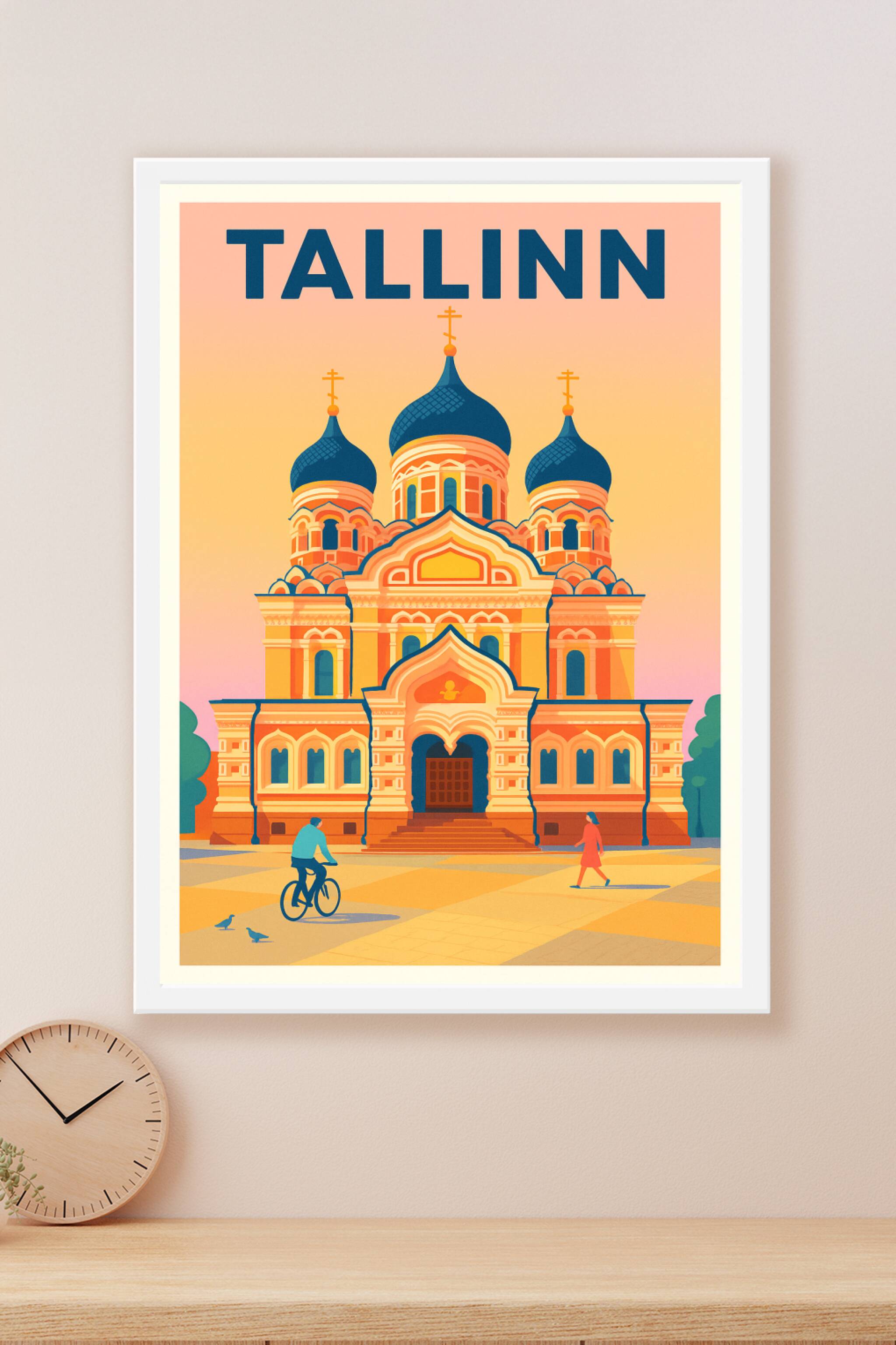 Découvrez la beauté emblématique de Tallinn à travers cette affiche illustrée mettant en avant l'architecture distinctive et chaleureuse de la capi...