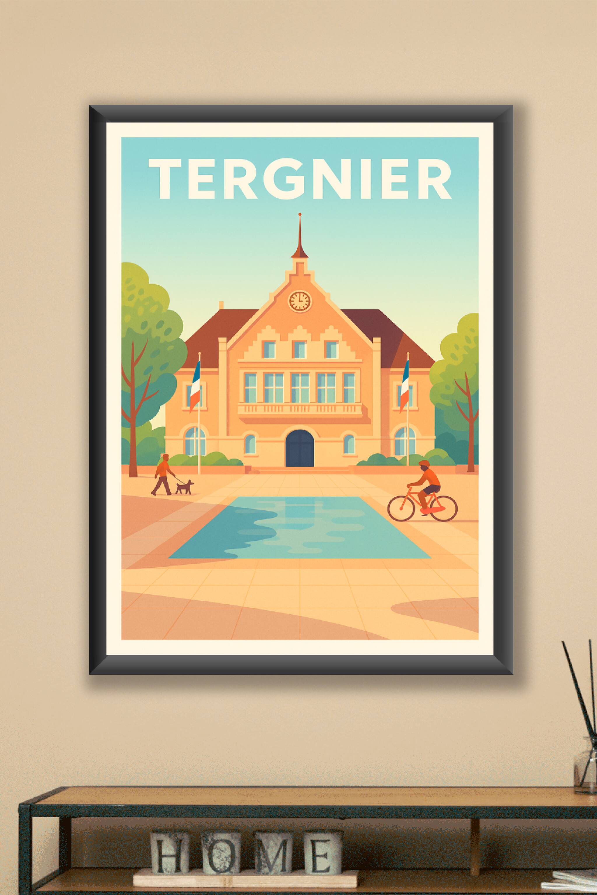 Découvrez cette magnifique affiche illustrant un bâtiment emblématique de Tergnier, baigné d'une lumière douce au petit matin. Ce poster capture l'atmosphère paisible de la ville avec ses détails soignés, la présence d'un petit bassin et la vie locale avec un cycliste et un promeneur. Imprimé en tirage "Fine Art" sur papier 305g coton, ce poster garantit une qualité d'impression exceptionnelle qui ravira les amateurs d'art comme les passionnés de décoration.Une affiche idéale pour habiller vos murs, disponible en formats A1 à A4, avec ou sans cadre, pour s'adapter parfaitement à votre intérieur. Apportez une touche unique et élégante à votre décoration avec ce tirage premium, 100% fabriqué en France, pour un souvenir durable de Tergnier.