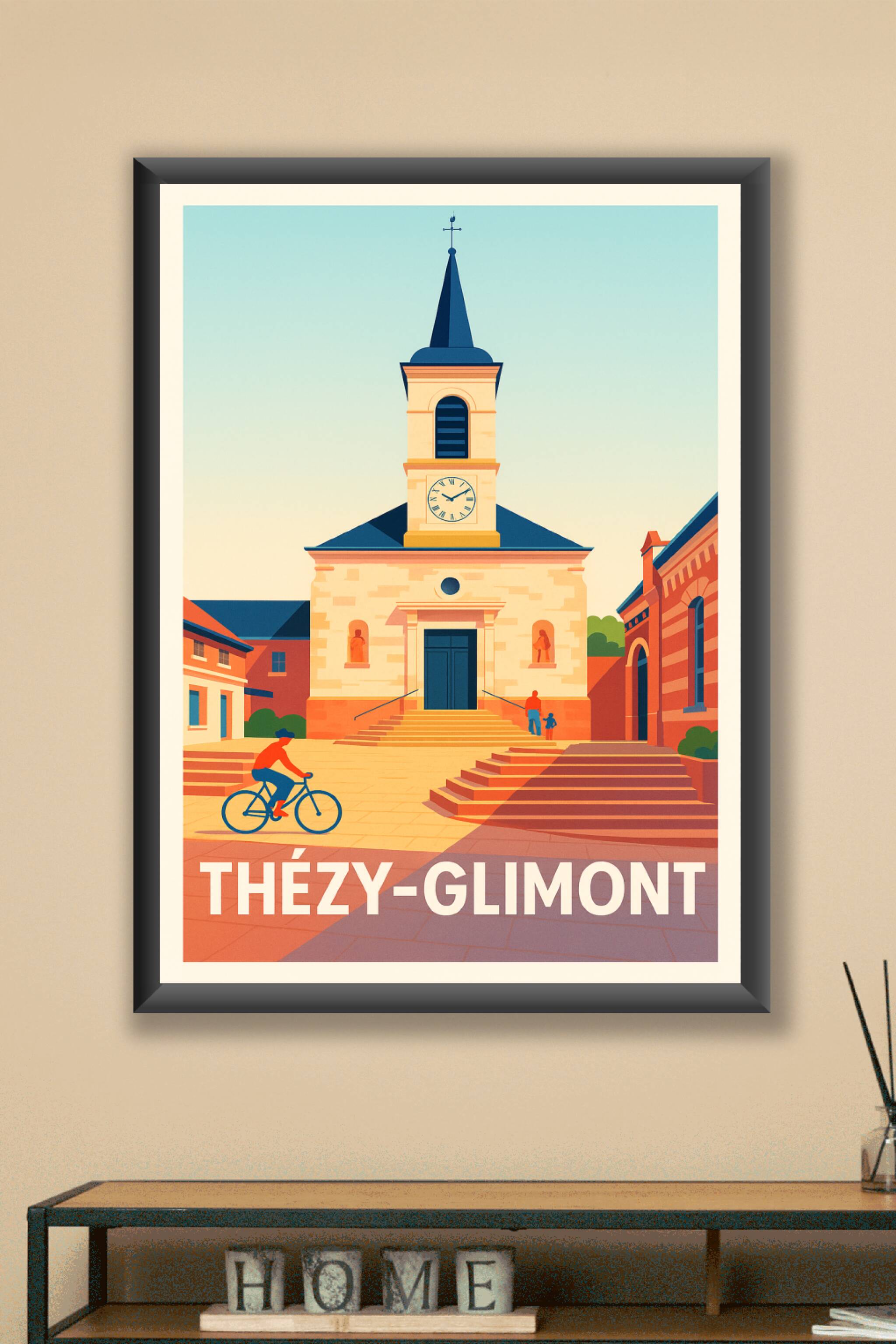 Découvrez l'élégance paisible de Thézy-Glimont avec cette affiche illustrée présentant un monument central baignant dans une lumière douce et chaleureuse. Ce poster capture l'âme de ce village grâce à son style graphique épuré et ses couleurs harmonieuses, parfait pour apporter une ambiance apaisante à votre intérieur. Disponible en tirage Fine Art sur papier 305g coton, cette affiche offre une qualité d'impression exceptionnelle qui sublime chaque détail. Choisissez parmi les formats A1 à A4, avec ou sans cadre, pour décorer votre maison ou offrir un souvenir unique et raffiné de Thézy-Glimont.