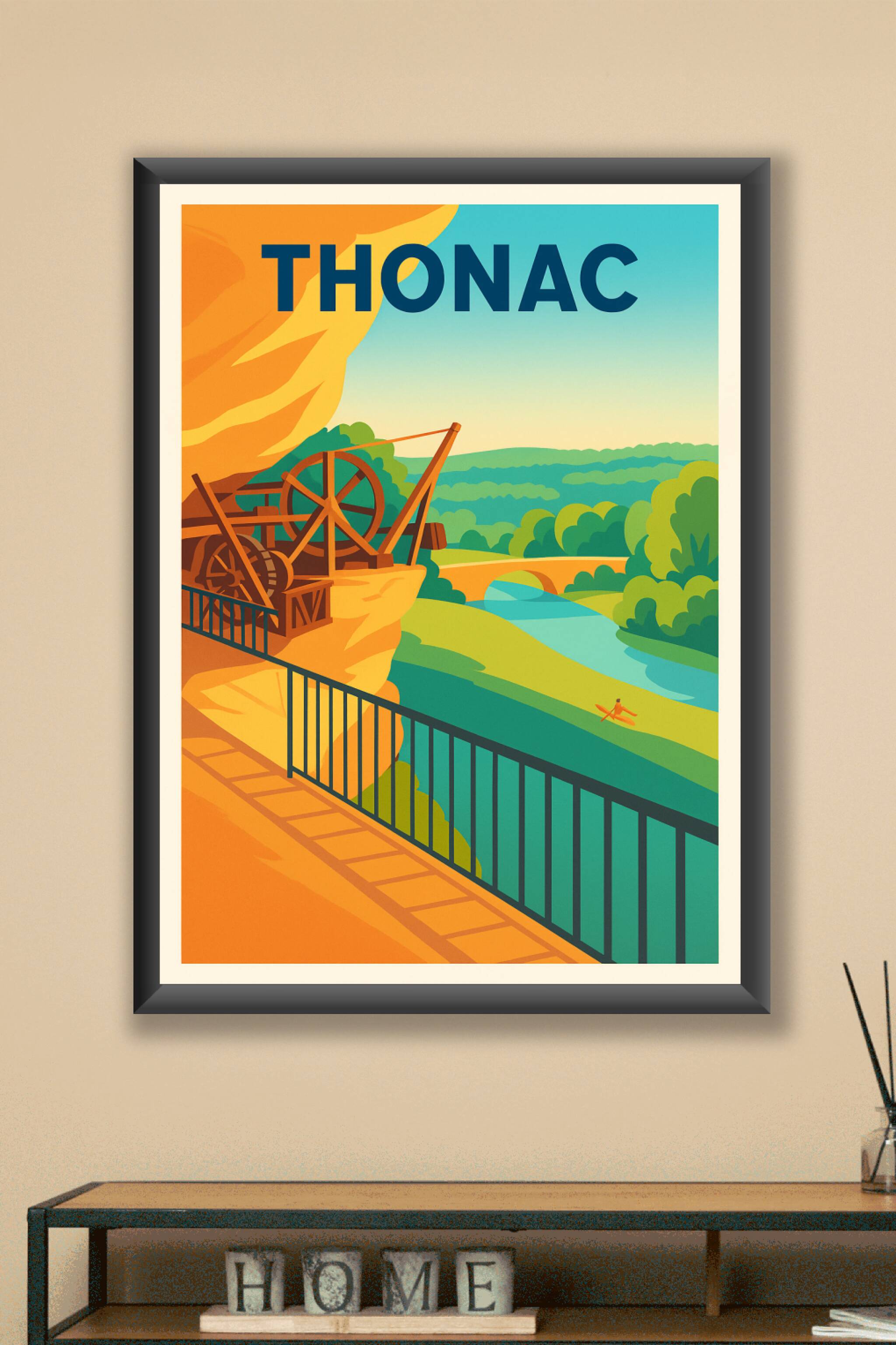 Découvrez l'affiche qui capture la beauté paisible de Thonac, avec ses paysages verdoyants et son architecture traditionnelle en harmonie avec la n...