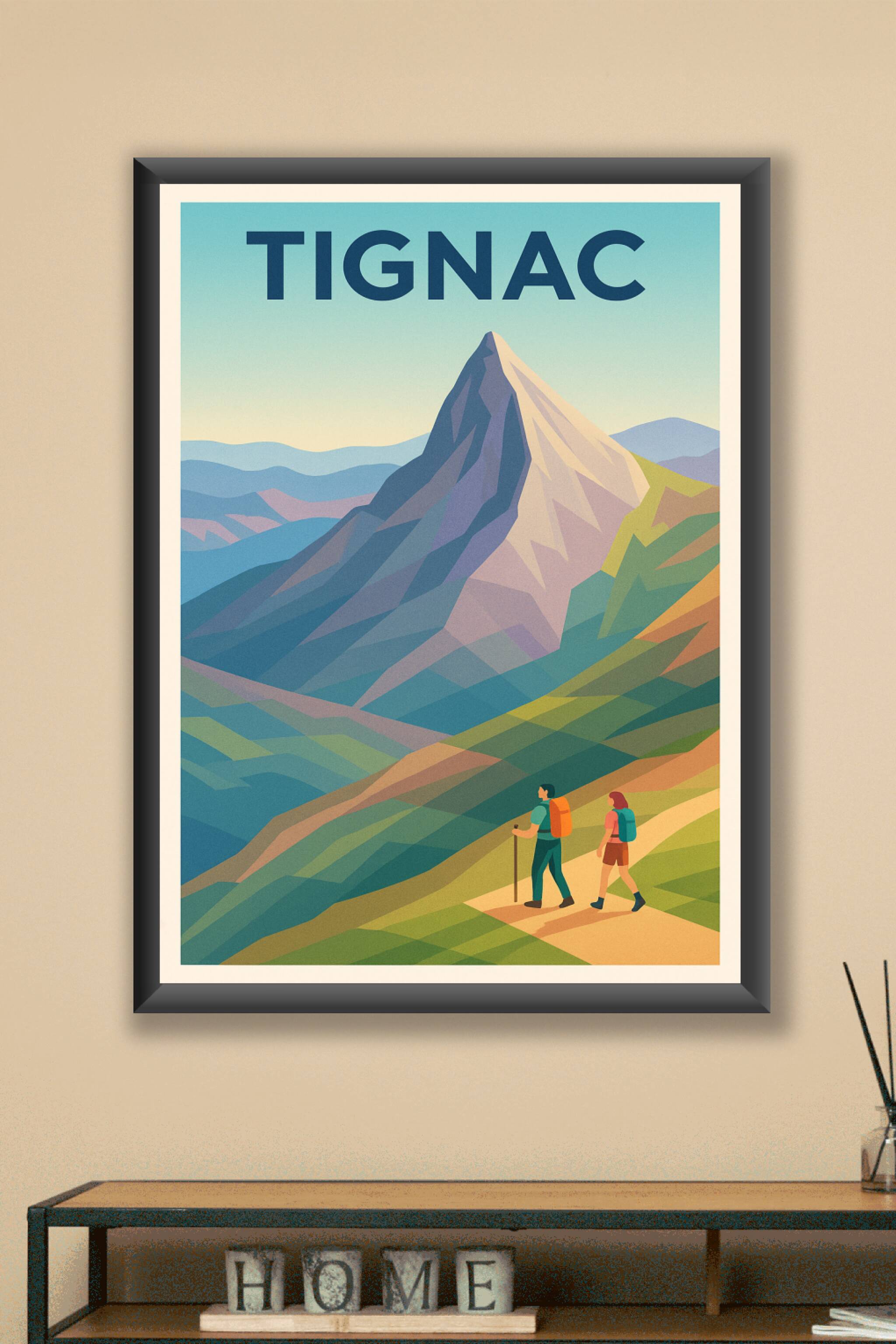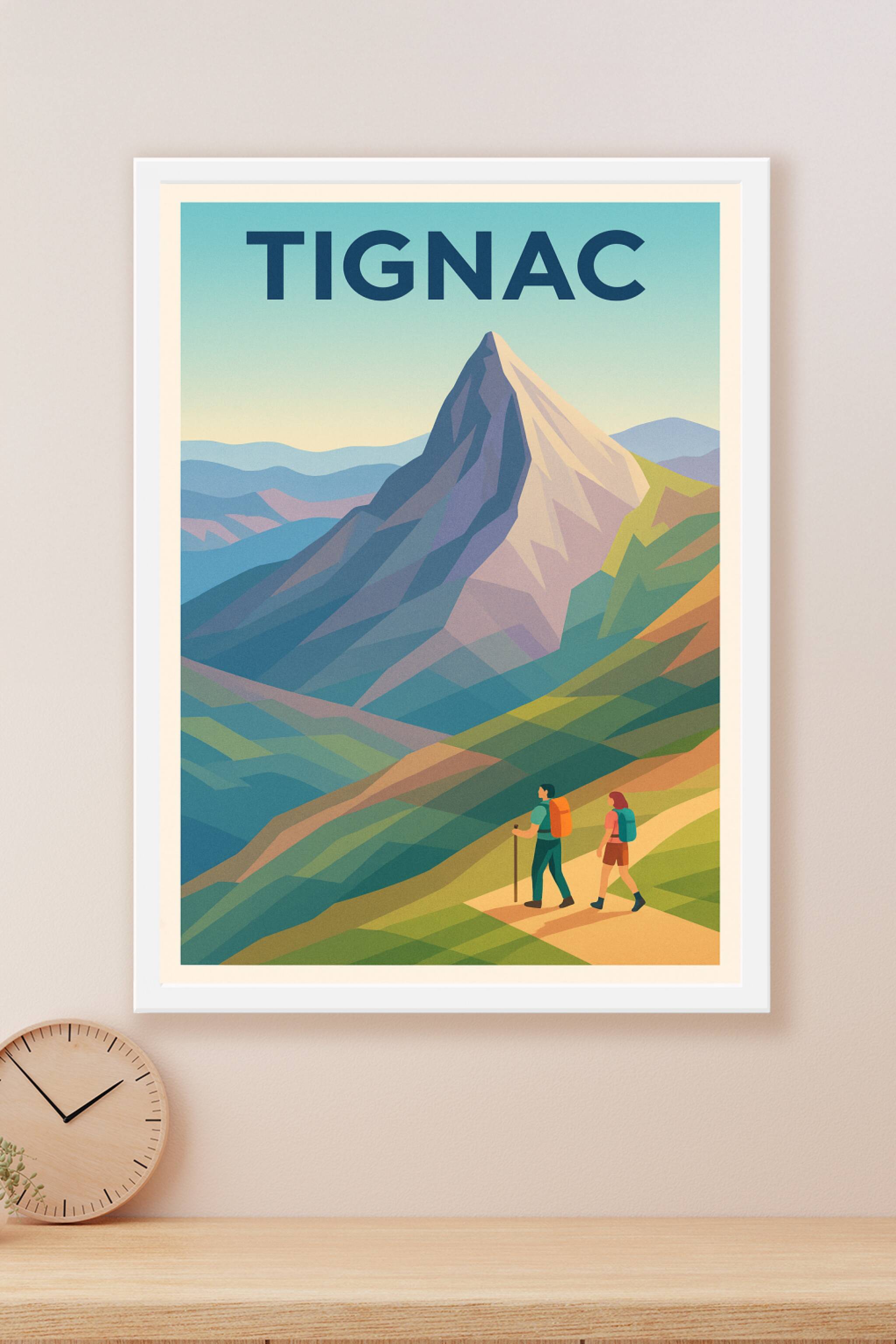 Découvrez la beauté sauvage des montagnes de Tignac avec cette affiche au style graphique et épuré qui invite à l'évasion et à l'aventure. Ce poste...