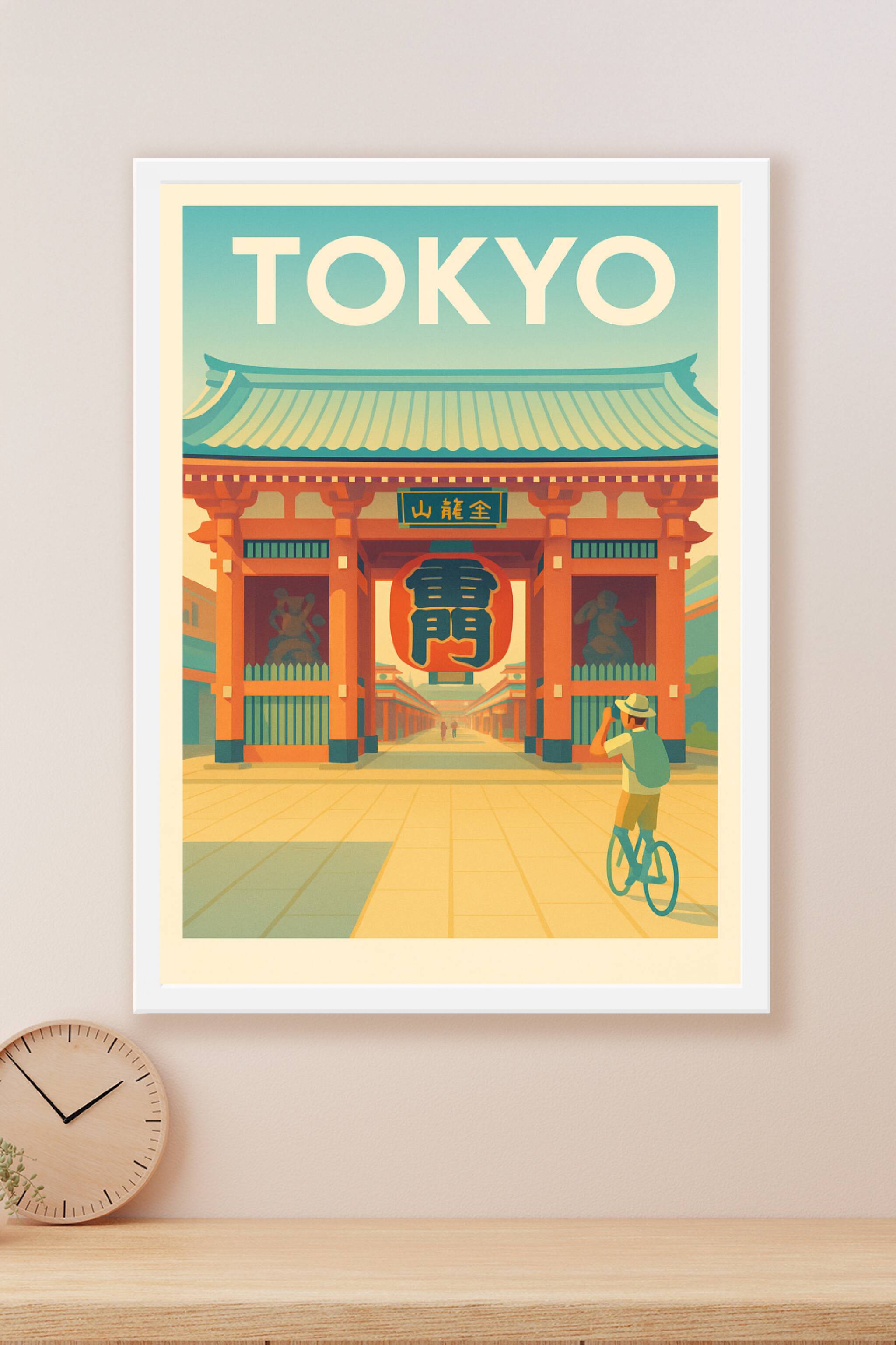 Plongez dans l'atmosphère unique de Tokyo avec cette affiche illustrée représentant la célèbre porte Kaminarimon, emblème du quartier d'Asakusa. Ce...