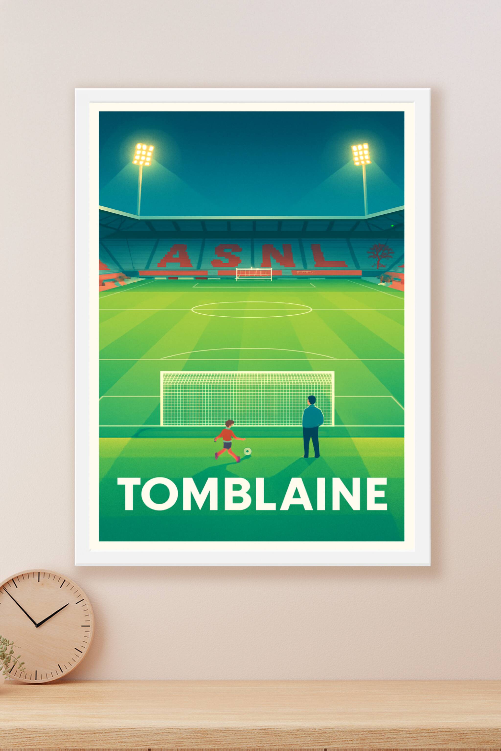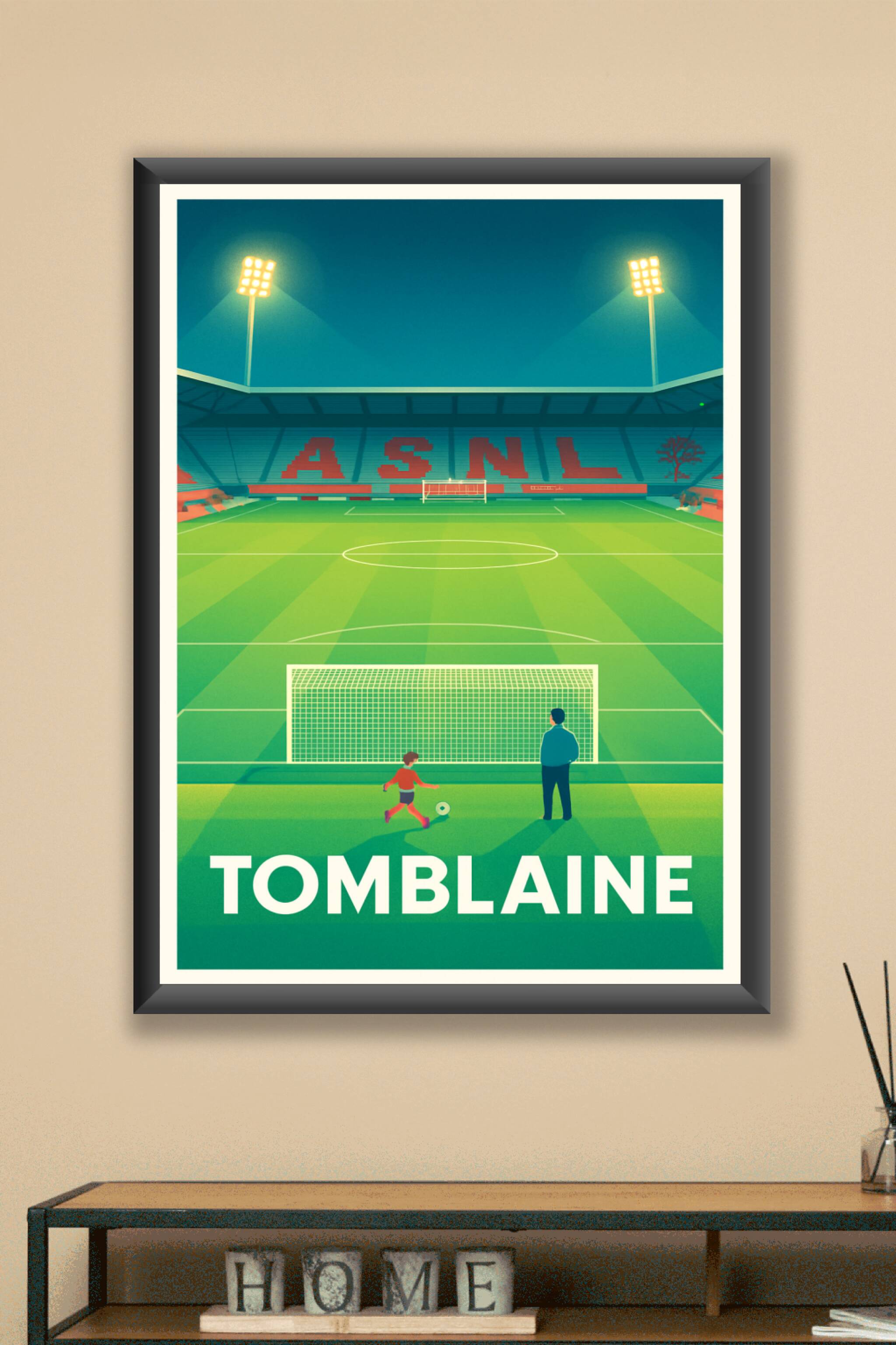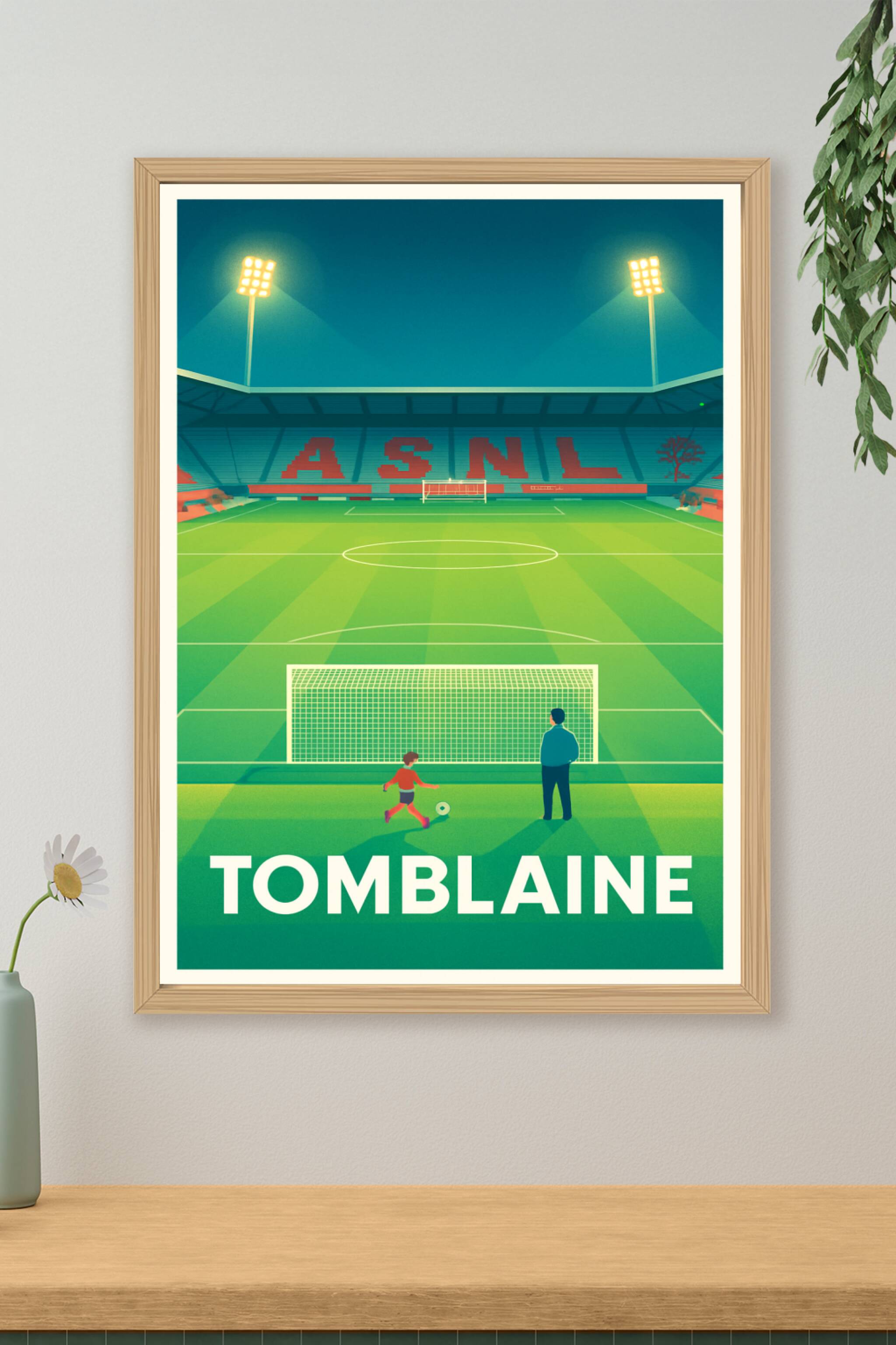 Revivez la passion du football à Tomblaine avec cette affiche illustrée qui met en lumière le stade emblématique de l'AS Nancy Lorraine (ASNL). La ...