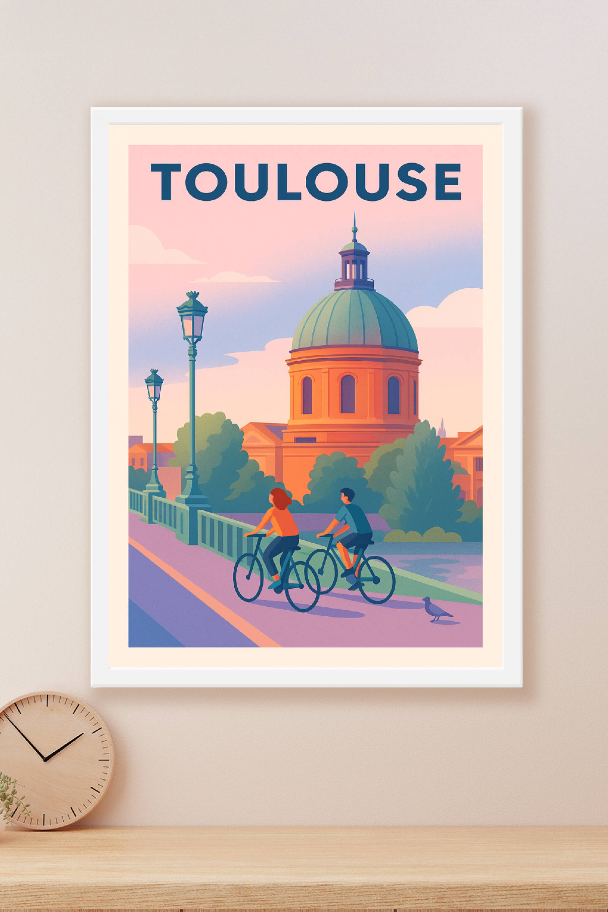 Affiche de Toulouse - Balade à vélo sous le dôme emblématique