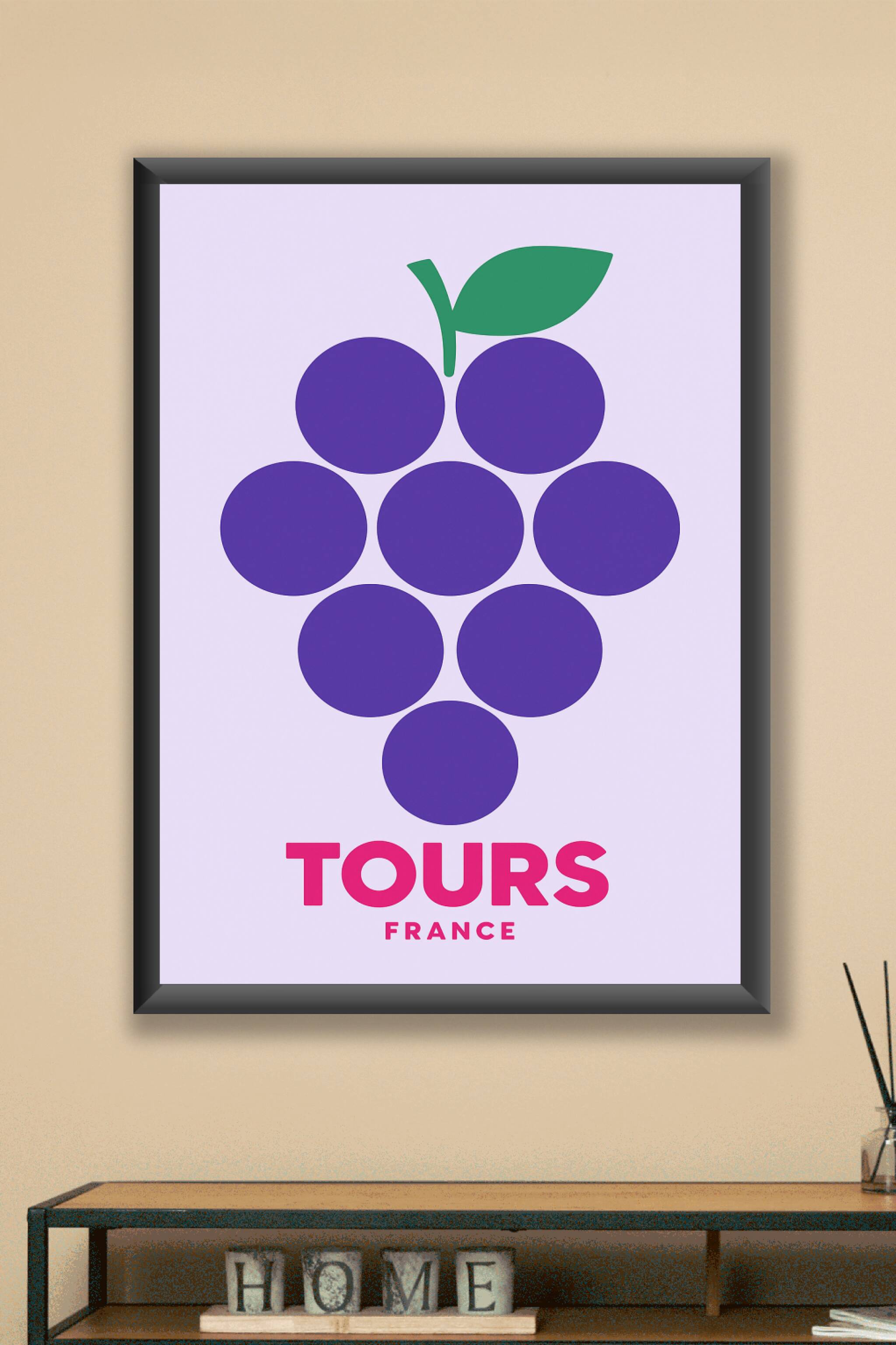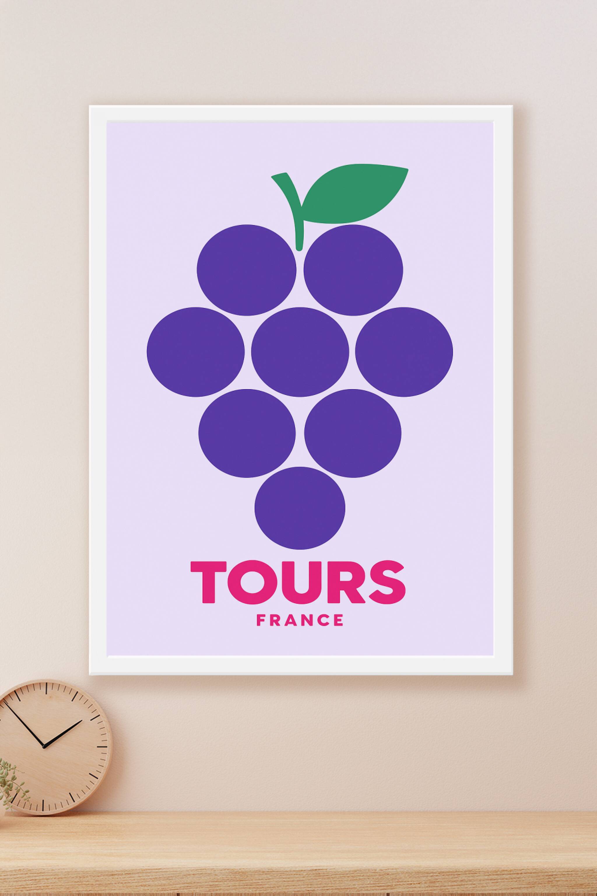 Découvrez la douceur et la richesse de la région de Tours à travers cette affiche moderne et stylisée représentant une grappe de raisin emblématiqu...