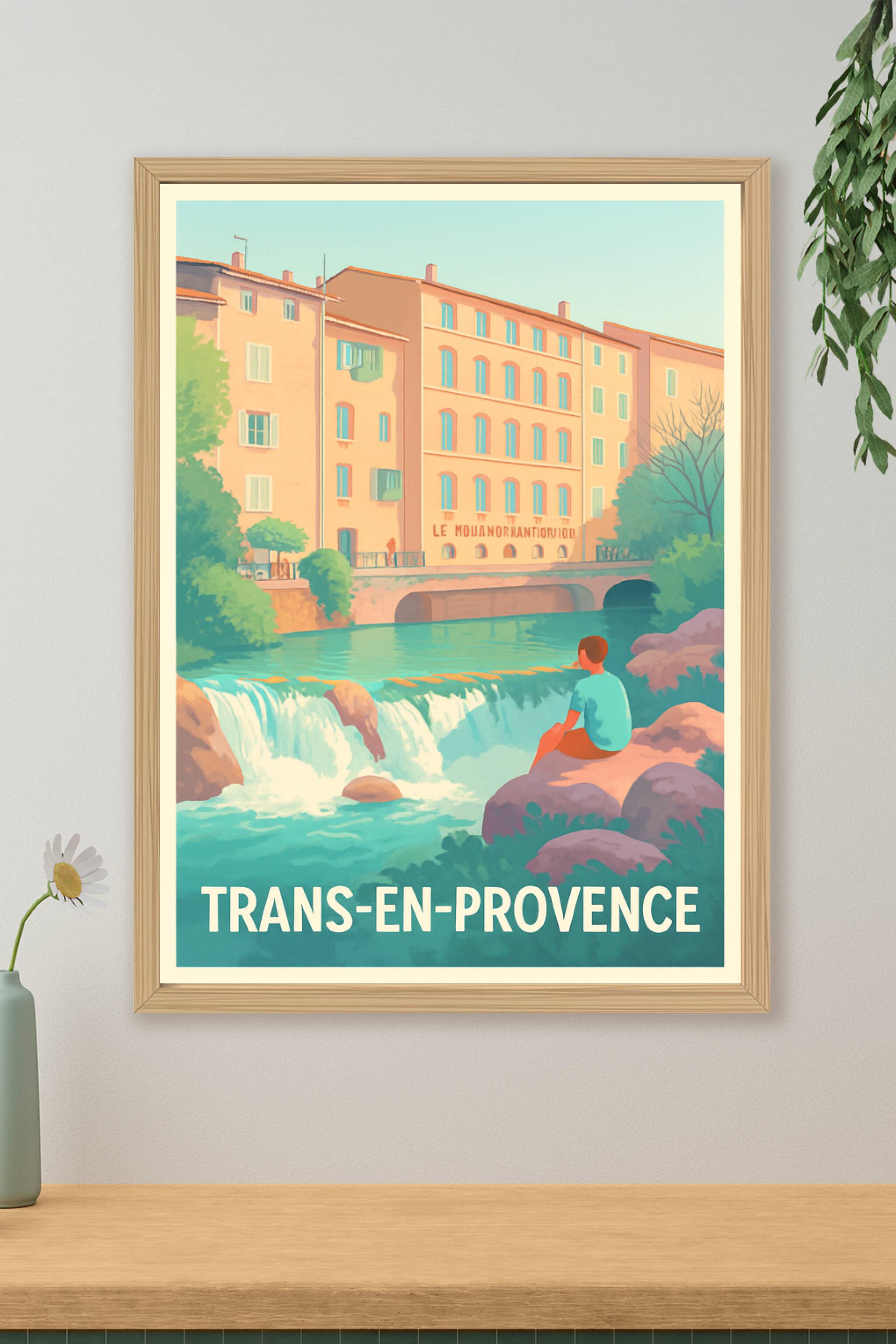 Découvrez la douceur de vivre provençale avec cette affiche illustrée mettant en scène la rivière et ses cascades paisibles à Trans-en-Provence. Ce...