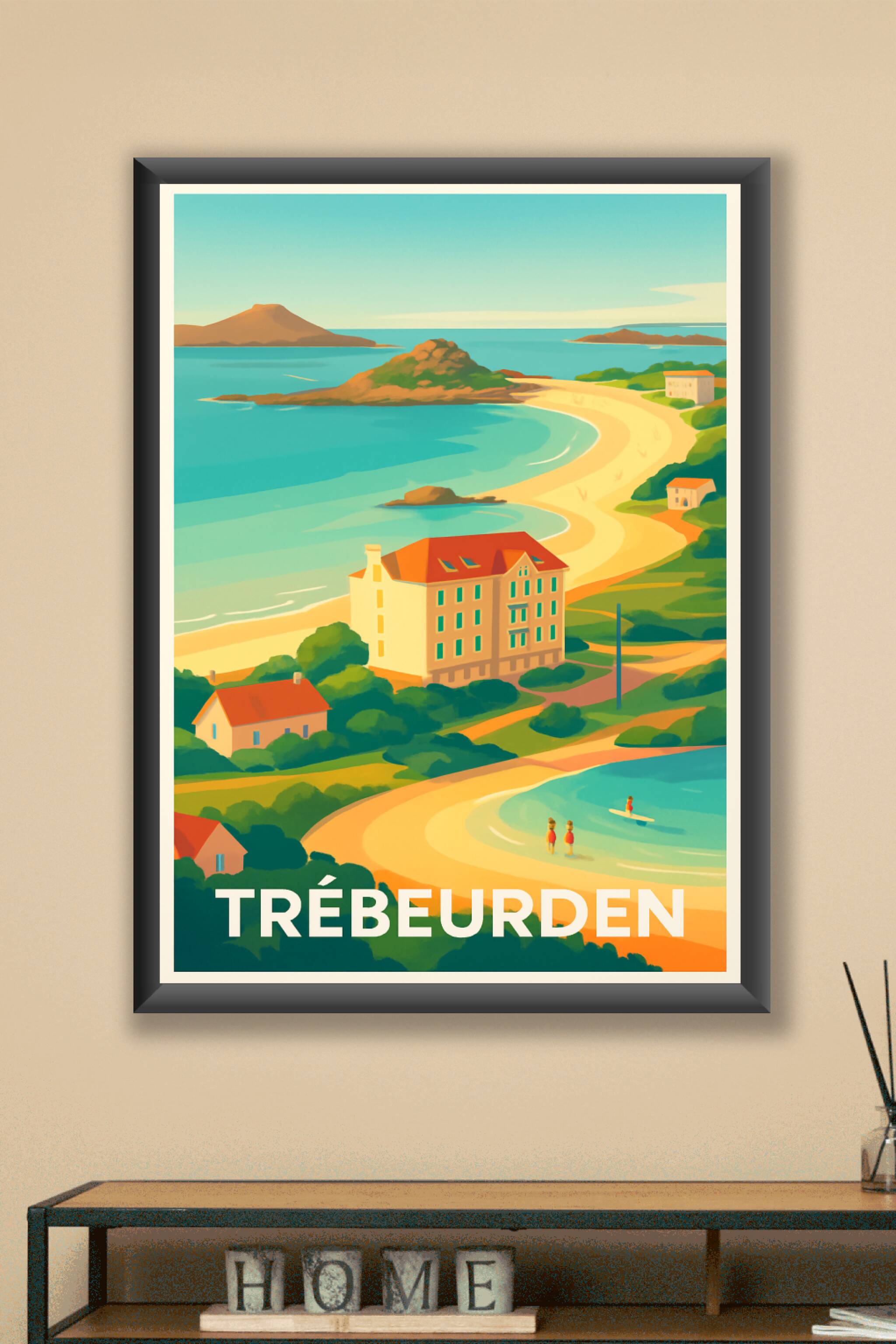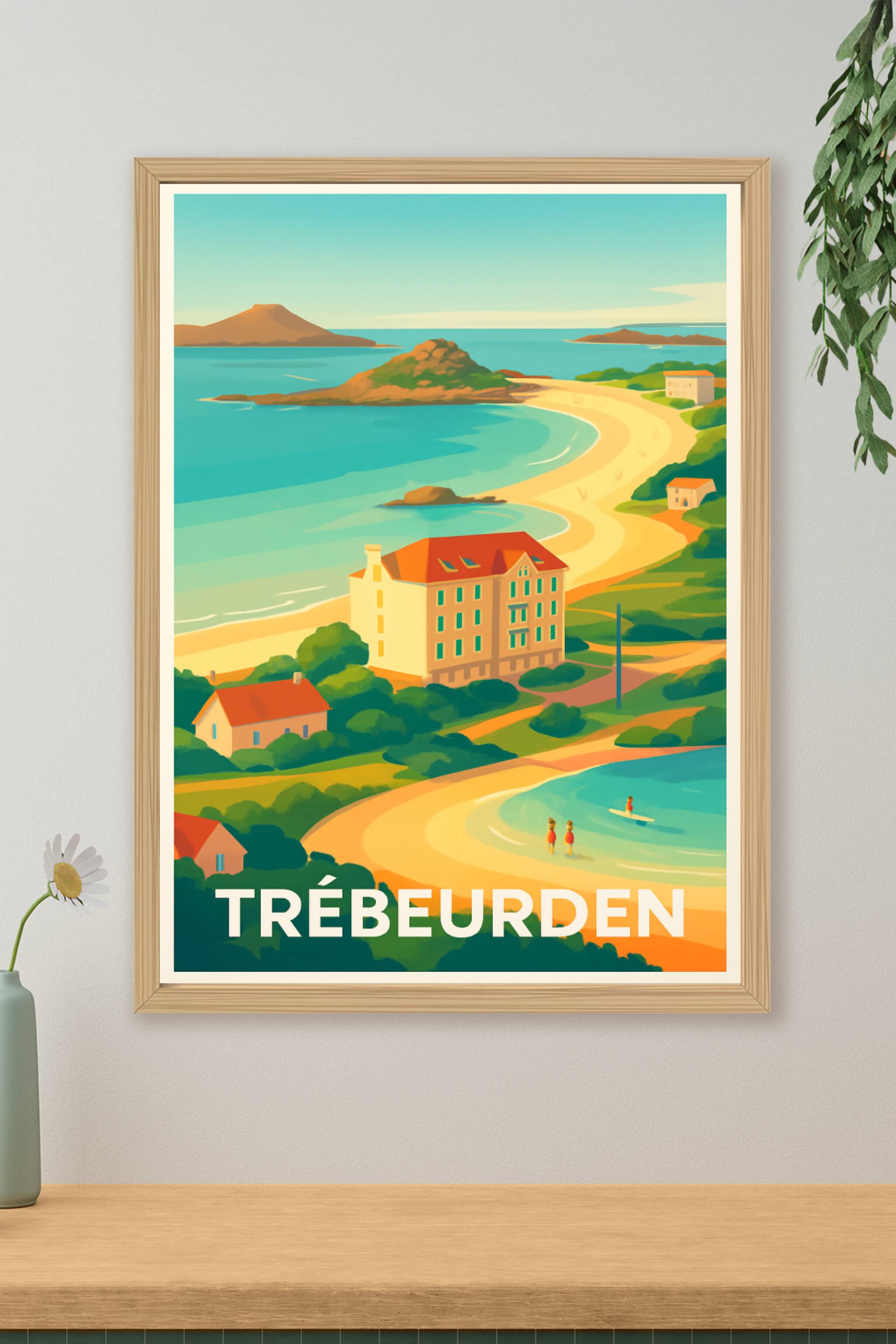 Découvrez la douceur de vivre bretonne avec cette affiche représentant la plage idyllique et les paysages enchanteurs de Trébeurden. Le poster capt...